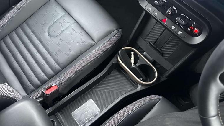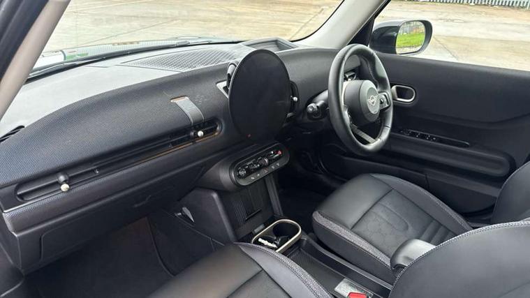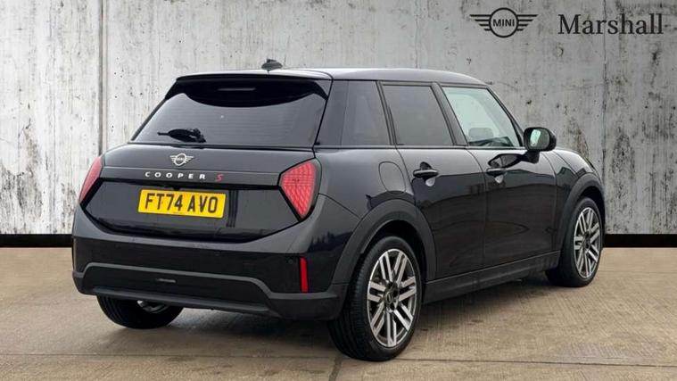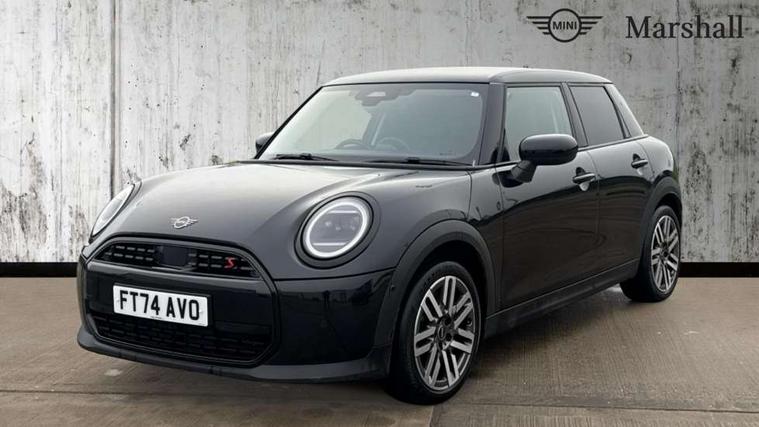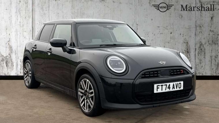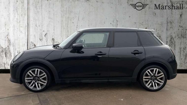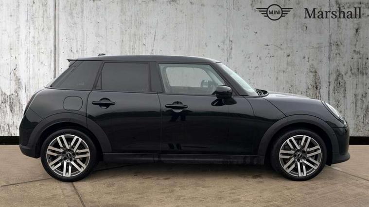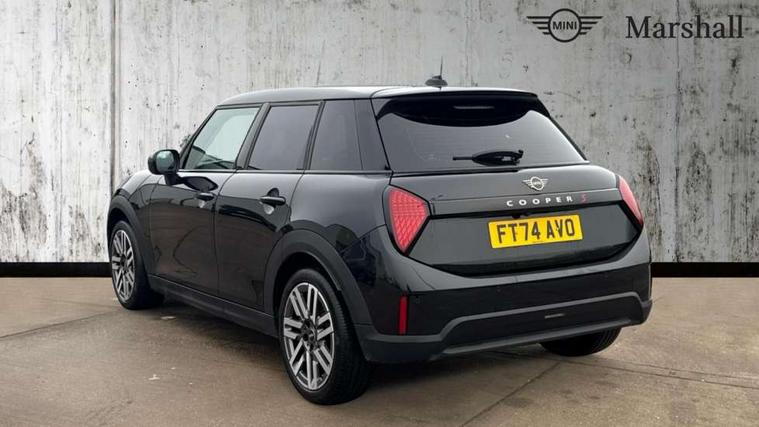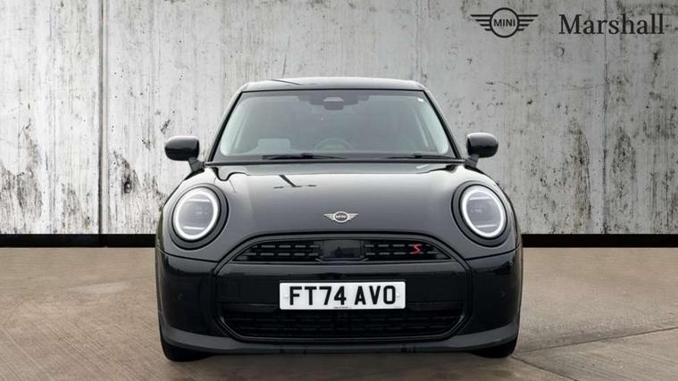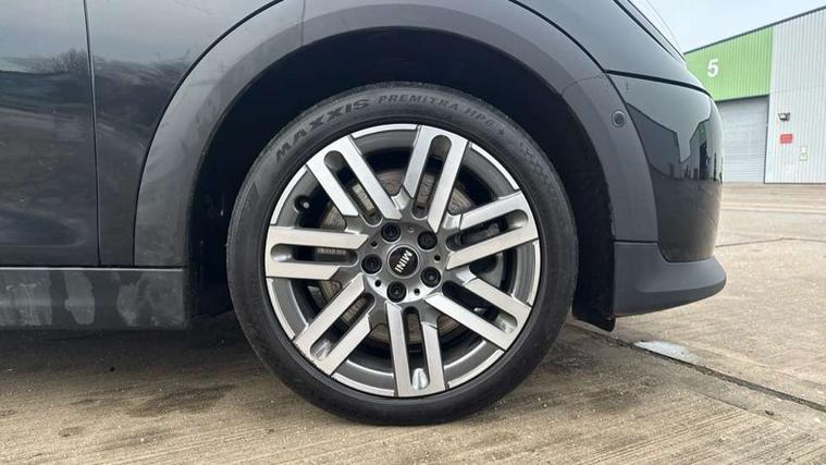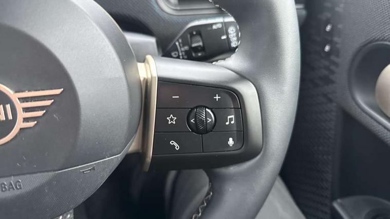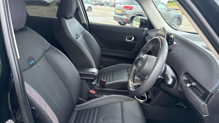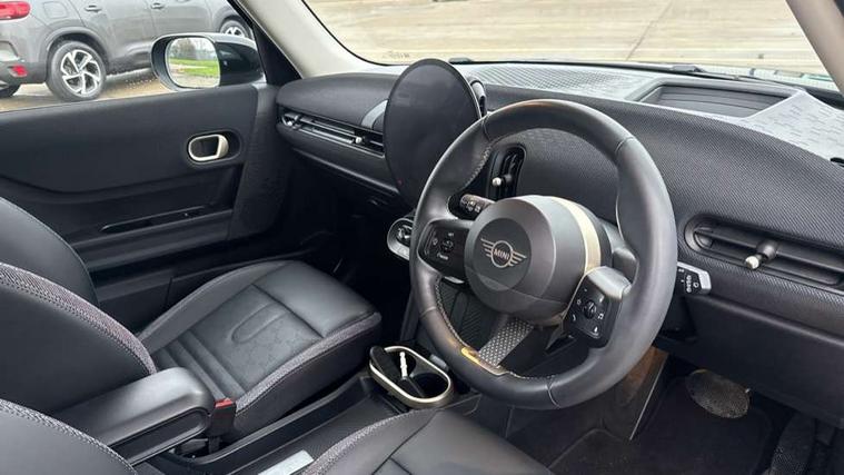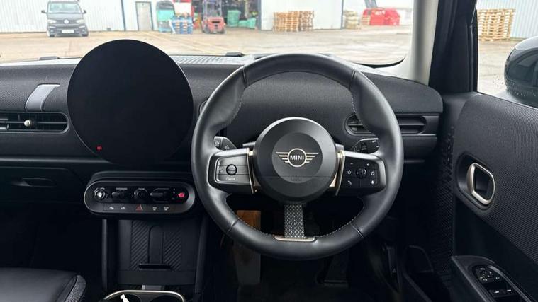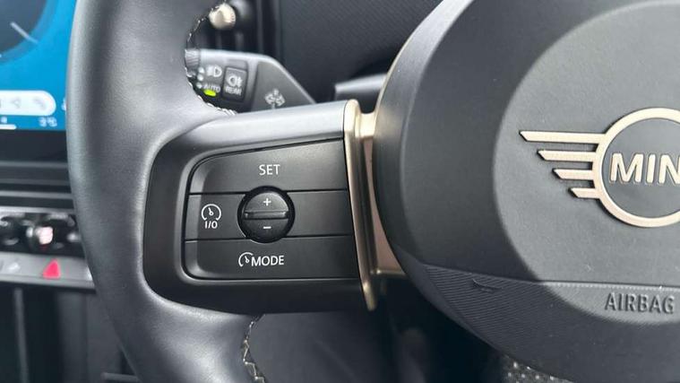 Central toggle bar, Circular OLED Screen, Compatible mobile phone bluetooth with audio streaming, Cruise control, Digital instrument cluster, Electro-mechanical speed dependant steering assistance, Emergency call service, MINI Experience Modes, Mini navigation system, On board computer, Service interval indicator, 7 speed steptronic transmission with double clutch, DAB Digital radio, Personal eSim, Adaptable light signatures, Auto headlights, Electric adjustable heated door mirrors, Electric front+rear windows, Heated rear window, Heated windscreen washer jets, LED daytime running lights, LED indicator lights, LED rear lights, Rain sensor window wipers, Rear fog lights, Rear side wing doors, Rear window wiper, 2 zone automatic air conditioning, 3 seat bench in 2nd row, 60/40 rear seat bench, Ambient lighting, Cupholders, Floor mats, Front and rear head restraints, Front compact armrest, Heated steering wheel, Height adjustable passenger seat, Light headliner, Luggage compartment lighting, Single front passenger seat, Sport Vescin Steering Wheel black with vibrant silver accents, Sunvisors with vanity mirrors, Vescin/Cloth upholstery, Driving assistant pack - Cooper Hatchback, Level 1 pack - Mini Hatchback, Park assistant pack - Cooper Hatchback, 3 point seatbelts on all five seats, 6 Airbags - front, side, head and seat belt tensioners, Acoustic pedestrian protection, Anti-lock braking system (ABS), Child locks on rear doors, DSC - Dynamic Stability Control, Electronic parking brake, Front and rear disc brakes, Front ISOFIX (iSize), Front passenger airbag deactivation, Traction control, Tyre pressure monitoring system, Alarm, Immobiliser, Remote central locking, Black/Blue dashboard knit, Tyre repair kit,