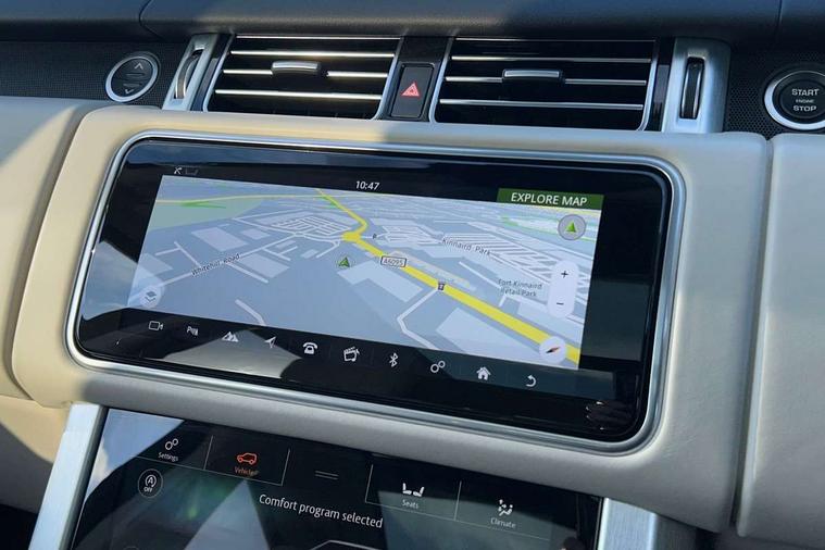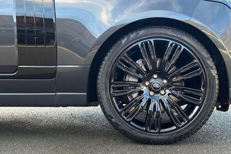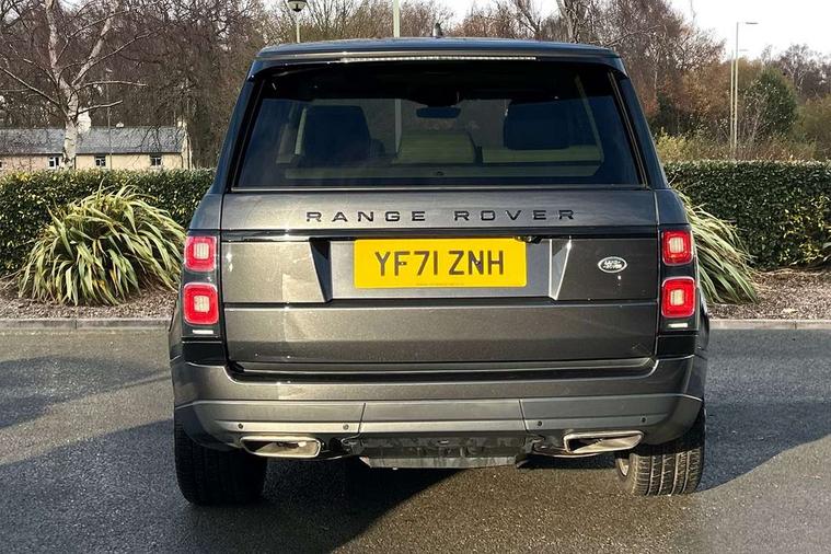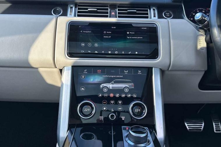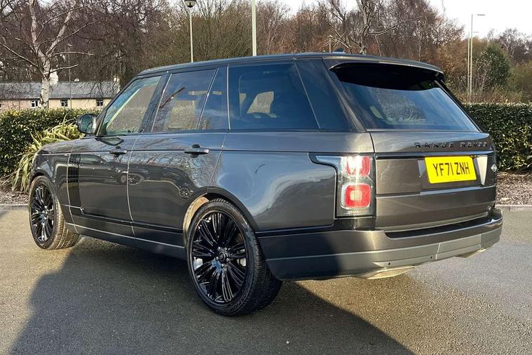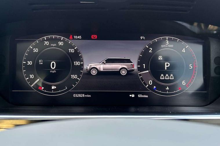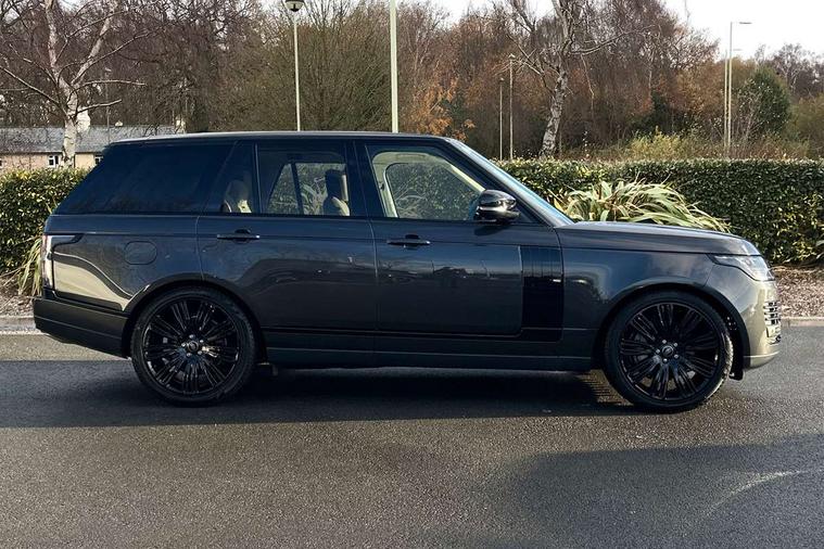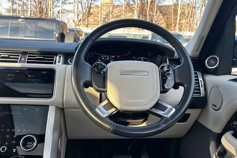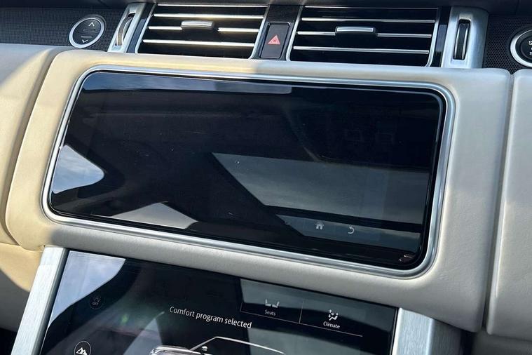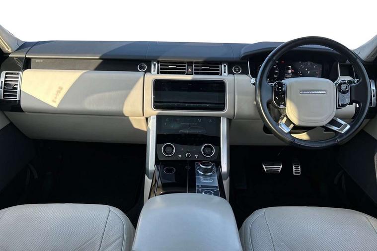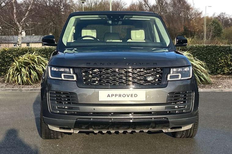 Android Auto, Apple car play, Bluetooth mobile phone connection, Dynamic route guidance, Electric power assisted steering (EPAS), Interactive Driver display instrument cluster, Lane departure warning system, Navigation pro system with 10" touch screen, app interface and media storage, Powered gesture tailgate/boot lid, Push button starter, Rear camera wash, Rotary shifter, Service interval indicator, Touch pro duo system, Trip computer, Voice control system, 8 speed automatic transmission, Adaptive dynamics, All Wheel Drive (AWD), Automatic access height, Diesel particulate filter, Electronic air suspension, Twin speed transfer box, Digital Audio Broadcast radio-DAB, Digital TV, InControl app, USB socket, Acoustic windscreen, Auto dimming interior rear view mirror, Auto self levelling headlights, Automatic headlights, Body coloured bumpers, Centre high mounted stop light, Door/quarter lights in toughened plate glass, Electric windows with one touch open/close and anti trap, Electrical towing preparation, Follow me home headlights, Front and rear recovery eyes, Front fog lights, Headlamp power wash, Heated rear window, Heated windscreen includes heated washer jets, Illuminated metal tread plates with brand name script, Integrated twin tailpipes, LED rear lamps, LED tail lights, No badges, Power fold, auto-dimming, heated door mirrors with memory and approach lights, Power front/rear windows with global close, Privacy glass, Rain sensing windscreen wipers, Rear fog lights, Rear wash/wipe, Side repeater indicators in mirror, Sliding Panoramic roof includes gesture sunblind and auto sunblind, Trailer stability assist, 12V power point in luggage area, 12V power sockets, 3 rear headrests, Black gearshift paddles, Bright metal pedals, Carpet mats, Centre console with storage and armrest, Configurable Ambient interior lighting, Customer configurable single point entry, Driver and passenger front seat armrests, Easy boot loading, Electrically adjustable steering column, Folding rear seats, Front and rear cupholders, Front and rear grab handles, Front headrests, Front seat back map pockets, Heated steering wheel, Loadspace cover, Loadspace light, Lockable glovebox, Luggage compartment lighting, Luggage tie down in loadspace, Perforated Windsor leather upholstery, Rear centre armrest, Rear ISOFIX, Soft close doors, Suede cloth headlining, Through load facility, Twin blade sunvisors with Illuminated vanity mirrors, Black exterior pack - Range Rover, Smartphone pack - Range Rover, 3 rear 3 point seatbelts, Anti-lock braking system (ABS), Auto lock system when vehicle in motion, CBC - (Cornering brake control), Curtain airbags, Customer configurable autolock, Driver/front passenger head+thorax airbag, Drivers knee airbag, DSC - Dynamic Stability Control, Electronic brake force distribution, Electronic parking brake, Electronic traction control, Emergency braking, ESP, Front airbags with passenger seat occupant detector, Front seatbelt pretensioners with force limiters, Front side airbags, Grey anodised brake calipers, Height adjustable front seatbelts, Hill descent control, Hill launch assist, Low traction launch, Power operated child locks, Roll stability control, Tyre pressure monitoring system (TPMS), Immobiliser, Intrusion sensor and alarm, Keyless entry, Locking wheel nuts, Remote central locking,