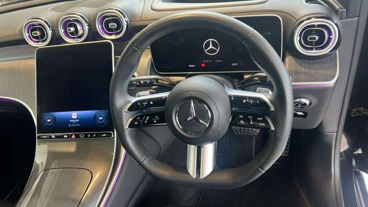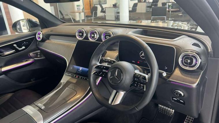11.9" high resolution multimedia colour display, 12.3" Digital individually configurable instrument display, Acoustic presence indicator, Active lane keeping assist, Attention assist, Blind spot assist, Bluetooth interface for hands free telephone, Collision prevention assist plus, Direct steer speed sensitive steering, DYNAMIC SELECT with a choice of driving modes (ECO, Comfort, Sport and Individual), eCall emergency call system, ECO start/stop function, Fingerprint scanner, Fluorescent jacket for driver, Hard disc navigation, Head up Display, Instrument display in miles with English lettering, MBUX augmented reality for navigation, MBUX navigation premium, MBUX voice control activated by keywords "Hey Mercedes", Mercedes me connect, Multi function trip computer, Outside temperature display, Remote boot release, Remote services plus, Road sign recognition system, Service indicator (ASSYST), Smartphone integration, Status display for rear seat belts in instrument cluster, Tailgate, Traffic sign assist, Wireless charging system for mobile devices in the front, 48V Mild hybrid technology, 4MATIC permanent four wheel drive, 62 litre fuel tank, 9G TRONIC plus automatic transmission, Diesel particulate filter, Residual engine heat utilisation, Burmester 3D surround sound system, DAB digital radio tuner, MBUX extended functions, Pre installation for Mercedes Benz Link, Sound personalisation, Adaptive brake lights, Adaptive high beam assist plus, Aluminium look running boards with rubber studs, AMG bodystyling front apron, rear apron and side skirts, AMG Line exterior, Auto headlights, Black roof rails, Body colour bumpers, Body colour door mirrors, Digital light LED headlights, Electric panoramic glass sunroof, Electrically adjustable door mirrors, Front and rear electric windows, Headlight washers, Heat and noise insulating acoustic glass, Heat insulating dark tinted glass, Heated rear window, High level LED brake light, Integrated LED daytime running lights, LED indicator lights, LED rear fog lights, LED tail lamp, Motor way mode function and locator lighting, Radiator grille with Mercedes Benz pattern and integreated Mercedes star and louvre in dark grey matt with chrome inlay and black frame, Rain sensor windscreen wipers, Range adjustable headlights, Rear side wing doors, Rear wiper, Transparent Bonnet, Two chrome plated tailpipe trim elements, Variable front intermittent wipers, Welcome and follow-me home light functionality, Wheel arch liners in the vehicle colour, 3 seat bench in 2nd row, 40:20:40 split folding rear seats, Ambient lighting premium with projection of brand logo, AMG floor mats, AMG line interior, Artico man-made leather upholstery, Audio and onboard settings control on multifunction steering wheel, Automatic child seat recognition sensor, Black fabric roof lining, Comfort seats, Double cup holder in centre console, Easy-pack removable load compartment cover, Electrically height/reach adjustable steering column, Front centre armrest with stowage compartment, Front head restraints, Galvanised steering wheel gearshift paddles, Heated front seats, Heated steering wheel, Illuminated door sill panels with Mercedes Benz lettering, Illuminated glove compartment, Instrument panel and beltlines in ARTICO manmade leather in nappa look, Multicontour and climatised front seats, Multifunction sports steering wheel in nappa leather, Partition net, Rear centre headrest, Rear head restraints, Rear top tether child seat ISOFIX attachment, Single front passenger seat, Sports pedals with stainless steel surfaces and rubber studs, Sun visors, THERMATIC automatic climate control, Anti theft protection package - GLC, Boot comfort package - GLC, Easy tailgate pack - GLC, Exterior chrome package - GLC, Interior chrome package - GLC, Interior lighting pack - GLC, Keyless-Go comfort package - GLC, Memory pack - GLC, Mirror pack - GLC, Night package - GLC Urban Edition, Parking package with 360 degree camera - GLC, Stowage space package - GLC, USB Plus Pack - GLC, 3 rear 3 point seatbelts, Anti-lock braking system (ABS), ASR traction control, Automatic front passenger airbag deactivation, Black seat belts, Brake calipers with Mercedes-Benz lettering + perforated brake discs, Braking system with larger brake discs on the front axle, Child proof door locks, Dual-stage airbags - driver and front passenger, driver knee bag and window bags for driver, front passenger and rear passengers, Electronic parking brake, Electronic stability programme (ESP) with curve dynamic assist and cross wind assist, Front and rear seatbelt reminder, Front passenger seat occupancy sensor, Front seatbelt pretensioners, Hill start assist, Tyre pressure monitoring system, Warning triangle and first aid kit, Automatic door locking, Guard 360 degree vehicle protection plus, Interior protection/immobiliser, Remote central locking, Black open pore aluminium lines wood trim with centre console in black fine structure, 20" AMG multi spoke light alloy wheels in painted black with high sheen finish, Summer tyres, TIREFIT with tyre inflation compressor,