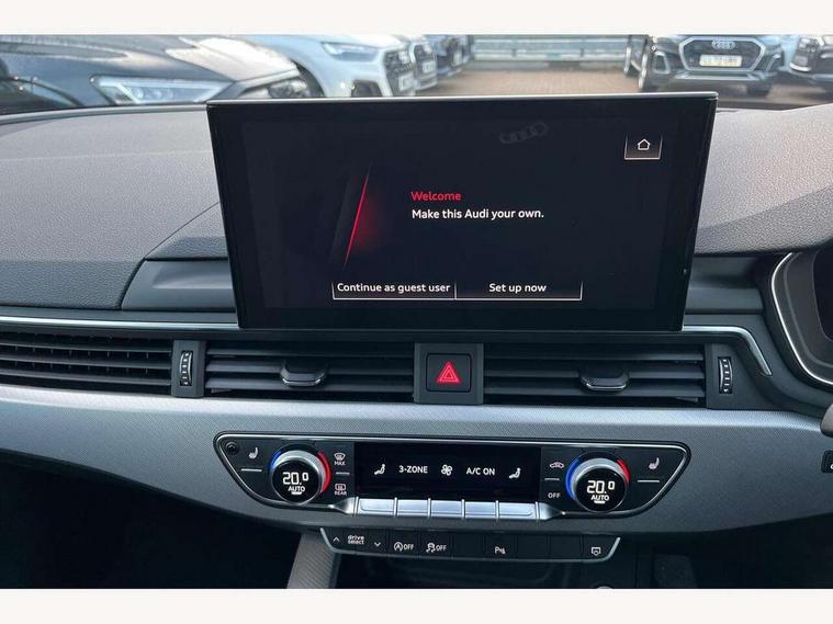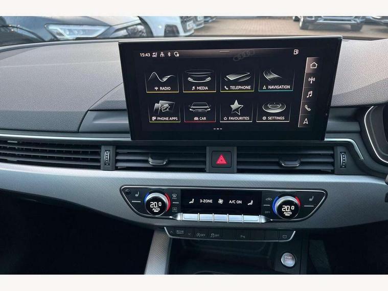 Audi connect safety and service (e-call), Audi connect with Amazon Alexa Integration, Audi drive select, Audi parking system plus with front and rear sensors, Audi smartphone interface, Audi virtual cockpit, Automatic start-stop system with coasting functionality and efficiency programme, Bluetooth interface, Cruise control system with speed limiter, Electric boot lid release, Electromechanical power steering, Email, calendar and text messages displayed via MMI, MMI Navigation plus with MMI touch includes 10.1" high resolution colour MMI display, 3D map, Rear view camera, Voice control system, 54 litre fuel tank, Comfort dynamic suspension, 2 USB charging ports, 8 passive loudspeakers, DAB digital radio reception, Auto dimming rear view mirror, Body coloured door mirrors, Electrically folding auto dimming/adjustable/heated door mirrors with LED side indicators and kerb view function for passenger side, LED headlights and rear lights with LED daytime running lights, LED third brake light, New design rear diffuser, Rain and light sensors, Rear boot, Rear side wing doors, Variable intermittent front wash/wipe, Windscreen with acoustic glazing, 3 spoke high multi-function leather sport steering wheel with paddle shift and height and reach adjustable, 4 way electric lumbar support for driver and front passenger, 40/20/40 split folding 3 rear seat bench in 3 parts with rear centre armrest, Deluxe 3 zone electronic climate control, Door sill trims with aluminium inlay, Front and rear head restraints, Front centre armrest, Heated front seats, Interior lighting, ISOFIX child seat mounting and top tether, Manual seat adjustment, Single front passenger seat, High gloss package - A4, 3 rear seatbelts, 6 airbags - Driver, front passenger, curtain and side windows, Electronic Stabilisation Control (ESC) including ABS, ASR and EDL, Hill hold assist, Multi collision brake assist, Pop-up bonnet for pedestrian protection, Pre sense city, Rear door child safety locks, Seatbelt monitoring, Warning triangle and first aid kit, Anti theft alarm, Anti theft wheel bolts, Central locking, Keyless Go, Tool kit, Tyre repair kit,