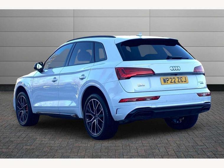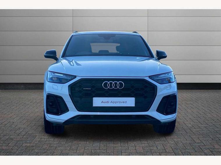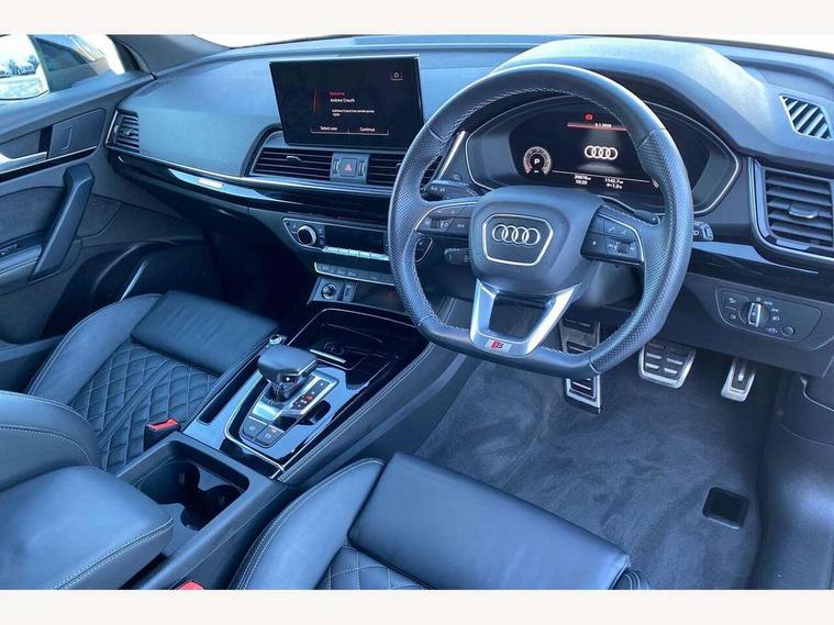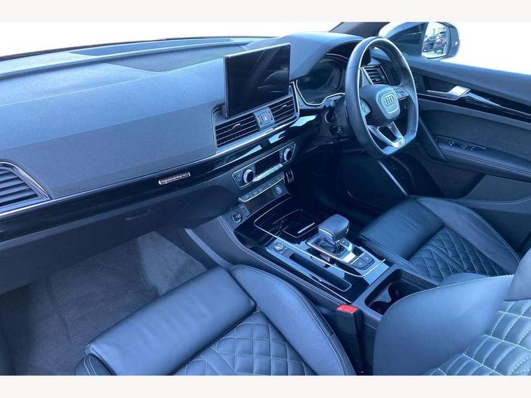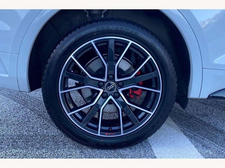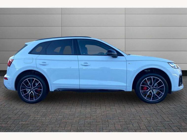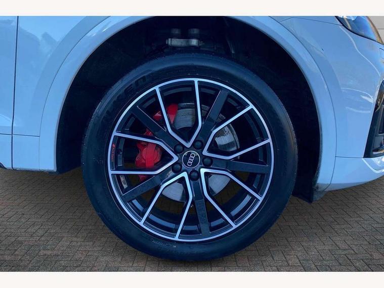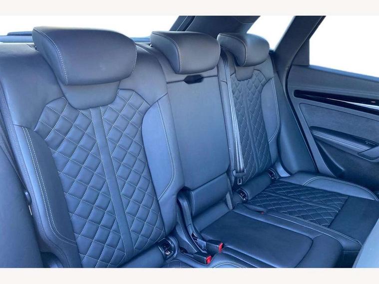 Audi connect safety and service (e-call), Audi connect with Amazon Alexa Integration, Audi drive select, Audi virtual cockpit plus with 12.3" screen and three different layout designs, Audi wireless smartphone interface, Automatic start-stop system with coasting functionality and efficiency programme, Bluetooth interface, Electro - mechanical power assisted steering, MMI navigation plus with 10.1" touch screen, Power tailgate, Reversing camera, Service interval indicator, Voice control system with Audi hotword activation "Hey Audi", Diesel particulate filter, Quattro on demand, S line sports suspension, 2 x USB charging port with aux input socket, DAB Digital radio, Acoustic windscreen, Audi matrix LED headlights with dynamic front and rear indicators, Audi rings at front and rear in black, Audi rings decal on rear doors, Auto dimming door mirrors, Auto dimming rear view mirror, Automatic headlights and windscreen wipers, Black door mirrors, Black roof rails, Body colour bumpers, Body colour underbody protection, Chrome plated exhaust trims, Daytime running lights, Door sills in Selenite silver, Electric adjustable/heated/folding door mirrors, Front air inlet surrounds in titanium black, Front and rear electric windows, Headlight washers, High gloss black B pillar trims and triangular rear door trim, High level LED brake light, Rear chrome trim strip below lights, Rear privacy glass and rear side windows, Rear side wing doors, Rear wiper, Roof bars, S Line rear spoiler, 3 rear headrests, 4 way electric lumbar support for driver and front passenger, 40:20:40 split folding 3 rear bench seat in 2nd row with rear centre armrest, Black cloth headlining, Comfort front centre armrest, Contrast stitching on seats, steering wheel and gear lever gaiter, Deluxe 3 zone electronic climate control, Electrically adjustable front seats, Fine Nappa leather upholstery with diamond pattern contrast stitching + front sport seats with S embossed logo, Front/rear floor mats, Gear lever in black leather, Heated front seats, Height adjustable front head restraints, Height/reach adjustable steering column, Illuminated door sill trims with S logo, ISOFIX child seat mounting and top tether, Rear seat bench plus, Removable luggage compartment floor, Single front passenger seat, Stainless steel pedals, Sunvisors with vanity mirrors, Black styling package - Q5 Edition 1, Extended interior upholstery pack - Q5, Extended LED Interior multi coloured Lighting Pack - Q5, 3 point seatbelts on all seats, 6 airbags - Driver, front passenger, curtain and side airbags, Electrically operated child locks on rear doors, Electromechanical parking brake, Electronic stabilisation control including ABS, ASR and EDL, Front and rear brake calipers painted in red, Front passenger airbag deactivation, Hill descent control, Hill hold assist, Multi collision brake assist, Pop-up bonnet for pedestrian protection, Pre sense city, Seat belt force limiter, Seatbelt monitoring, Tyre pressure warning, Warning triangle and first aid kit, Anti theft alarm, Anti-theft wheel bolts, Keyless Go access/ignition system, Remote central locking, Piano black finish inlay,