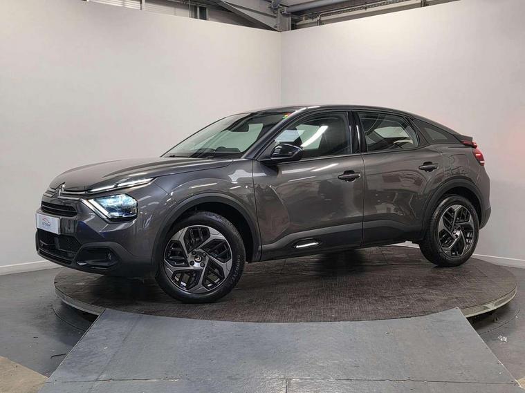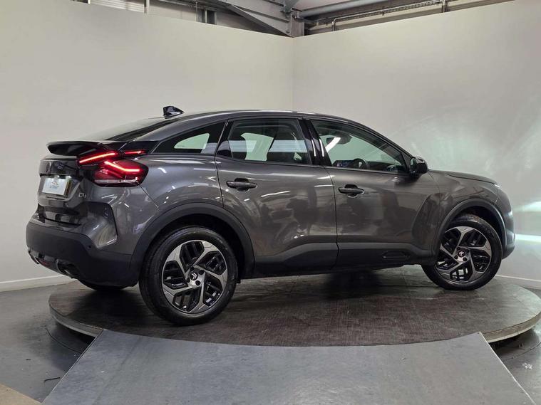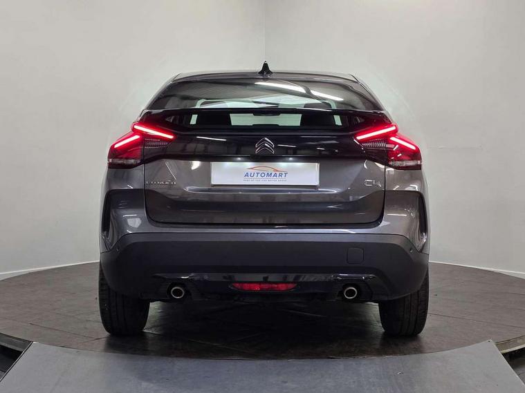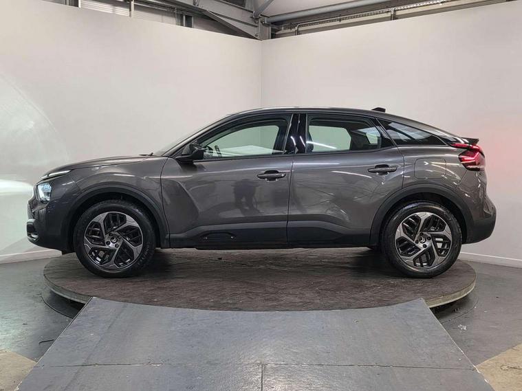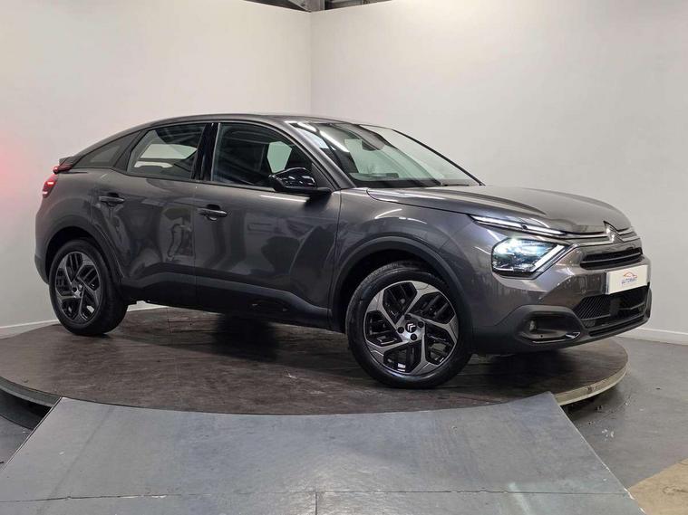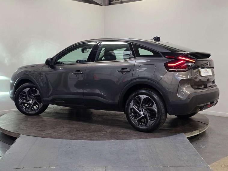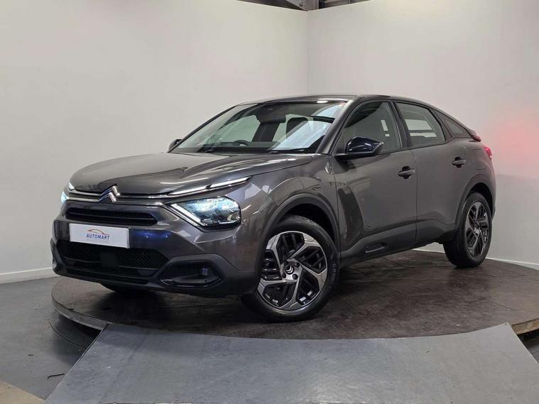 5.5 inch backlit full TFT driver's instrument cluster with LED ambient lighting, Apple car play and Android auto, Citroen connect box emergency and assistance system, Citroen Smart Pad Support - integrated support for attaching a tablet computer for front passenger, Cruise control + speed limiter, Driver's head-up display, Electronic Power Steering (EPS), In-crash braking, My Citroen Drive Plus: 10" high-resolution touchscreen user interface, controlling media, connectivity, vehicle settings + connected nav, Rear parking sensors, Tailgate, Top rear vision reversing camera, Voice commands, Advanced comfort suspension - double hydraulic stops on front and rear suspension, 6 speakers, Bluetooth telephone and audio streaming, DAB Digital radio, 3rd brake light, Automatic headlights, Body colour bumpers, Body colour door handles, Boot spoiler, Electrically heated, folding and adjustable external rear view mirrors, Front and rear electric windows, Gloss black rear skirt, LED daytime running lights in V signature, LED front fog lamps with static cornering function, LED front headlamps, Perla Nera black painted external rear view mirrors, Rain sensing automatic front windscreen wipers, Rear side wing doors, Rear wiper, Shark fin roof aerial, Standard interior rear-view mirror with manual day-night switching, Welcome and goodbye lighting, 12V power outlet, 1x USB Type-C socket charging & data connection and 1x USB Type-A socket in 1st row and 1x USB Type-A socket charging in 2nd row, 3 rear headrests, 3 seat bench in 2nd row, Boot light, Chevrons cloth and leather effect textile seat upholstery, Dashboard tray in front cabin, Driver and passenger sunvisors with illuminated vanity mirrors, Dual zone automatic air conditioning, Front and rear LED interior lighting, Front head restraints, Grained leather steering wheel with two command blocks, Height adjustable driver's seat with adjustable lumbar support, Height adjustable front passenger seat, Height and reach adjustable steering wheel, Map pockets in rear of front seats, Raised centre console with armrest and two cup holders, Single front passenger seat, Split folding rear seats, Two position boot floor, XXL storage in front cabin, High level acoustic insulation pack - C4/C4 X/e-C4 X, 3x3 point rear seatbelts, ABS, Driver and front passenger airbags, Electric parking brake, ESP, Front seatbelt pretensioners, Hill start assist, Manual child lock in second row, Manual deactivation of front passenger airbag, Row 1 and 2 curtain airbags, Row 1 side thorax airbags, Seatbelt unfastened on the move warning, Tyre underinflation detection, Anti-theft alarm (volumetric protection), Immobiliser, Remote locking with deadlocks, Two remote keys, 18" Bi-tone painted aeroblade alloy wheels with anti-theft locking wheel nuts, Puncture repair kit with compressor,