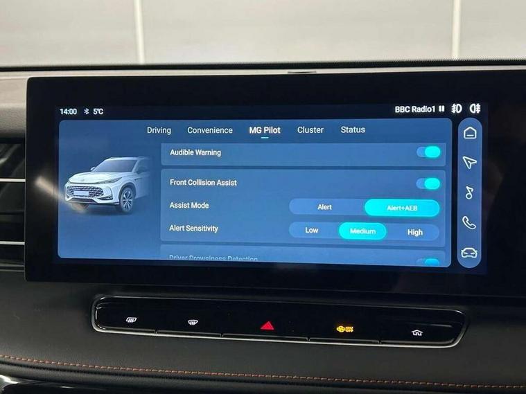 Driver attention alert, 12.3" colour touchscreen, 12.3" Virtual driver information display, Adaptive cruise control, Android Auto, Apple CarPlay, Blind spot detection, Bluetooth connectivity, Emergency call service, Forward collision warning, Intelligent speed limit assist, Lane change assist, Lane keep assist system (LAS) with Lane departure warning system (LDWS), PAS, Rear cross traffic alert, Rear parking camera, Rear parking sensors, Satellite navigation system, Traffic jam assist, Trip computer, USB mobile phone charging function, 4 USB ports 2 front and 2 rear, 6 speaker audio system, DAB audio, Auto dimming rear view mirror, Automatic headlights, Electric adjustable heated door mirrors, Follow me home headlights, Front and rear aero wiper, Front and rear electric windows with driver's one-touch up/down, Front fog lights, Intelligent high beam, LED 3rd brake light, LED daytime running lights, LED Headlights, LED rear lights, Rain sensing wipers, Rear privacy glass, Rear side wing doors, Silver roof rails, Vehicle to Load, 12V power sockets, 2nd row 60/40 split fold seat, 3 rear headrests, 3 seat bench in 2nd row, 4 way manually adjustable passenger seat, 6 way electric adjustable drivers seat, Air conditioning, Cloth upholstery, Front and rear reading lights, Front centre sliding armrest with storage compartment, Front headrests, Height and reach adjustable steering wheel, ISOFIX restraints on outer rear seats x2, Multi function steering wheel, Single passenger seat, 3x3 point rear seatbelts, ABS/EBD, Active emergency braking with pedestrian/Bicycle detection, Anti rolling protection, Door open warning, Drivers seatbelt reminder, Dual front airbags, Electric parking brake with auto hold function, ESP, Front and rear passenger seat belt reminder, Front centre airbag, Front passenger airbag deactivation switch, Front seat belt height adjuster, Front seatbelts (3-point + pretensioner + load limiter), Front side airbags, Hill descent control, Hill launch assist, Manual rear child locks, Rear outer seatbelt pretensioner and load limiter, Side curtain airbags, Tyre pressure monitoring system, Alarm system and engine immobiliser, Keyless entry and push button start system, Remote central locking, Speed sensing door locks, 19" Blade diamond cut alloy wheels, Tyre repair kit,