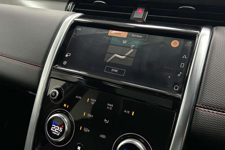10" touch screen, Adaptive cruise control, Android Auto, Apple CarPlay, Blind spot assist, Clear exit monitor, Driver condition monitor, eCall emergency call system, Front and rear parking aid, InControl remote premium, Lane keep assist, Locking fuel flap, PAS, Pivi Pro connected navigation system with upgraded Infotainment, Powered tailgate/boot lid, Push button start, Rear collision monitor, Rear traffic monitor, Service interval indicator, Traffic sign recognition with adaptive speed limiter, Trip computer, Wade Sensing, All terrain progress control, Coil suspension system, Dynamic stability control, Terrain Response 2, Bluetooth connectivity including audio streaming, Digital Audio Broadcast radio-DAB, Steering wheel mounted audio controls, 3rd brake light, Automatic headlight levelling, Automatic headlights, Electric front/rear windows, Electric heated/power fold door mirrors with approach lights and auto dimming driver side, Fixed panoramic sunroof with powered sunblind, Front and rear recovery eyes, Heated rear window, Heated windscreen including heated washer jets, No badges, Privacy glass, R Dynamic badge, Rain sensing windscreen wipers, Rear fog lights, Rear side wing doors, Rear wing door, Rear wiper, 2 seat bench in 3rd row, 3 seat bench in 2nd row, Bright metal pedals, Centre console with armrest, Footwell lights, Front and rear grab handles, Front passenger isofix child seat attachment, Front passenger seat, Loadspace cover, Loadspace light, Manual third row seats, Overhead lighting console, Overhead stowage for sunglasses, Rear headrests, Satin chrome gearshift paddles, Sunvisors with illuminated vanity mirrors, Tilt/reach adjustable steering wheel, Black exterior pack - Discovery sport R-Dynamic SE/HSE, Online pack with data plan - Discovery, 3 point seatbelts on all seats, ABS, Brake hold function, Child locks on rear doors, Collision mitigation braking system, Cornering brake control (CBC), Driver/Front Passenger airbags, Drivers knee airbag, Electronic brake force distribution, Electronic parking brake, Emergency brake assist, ESP + traction control, Hill descent control, Hill launch assist, Pedestrian airbag system, Rear seat ISOFIX, Roll stability control, Side and curtain airbags for front and 2nd row seats, Trailer stability control, Tyre pressure monitoring system, Battery Back Up System (BBUS) with tilt sensor, Global lock and unlock switch on driver door, Intrusion sensor, Keyless entry, Locking wheel nuts, Centre stack rails in noble chrome,