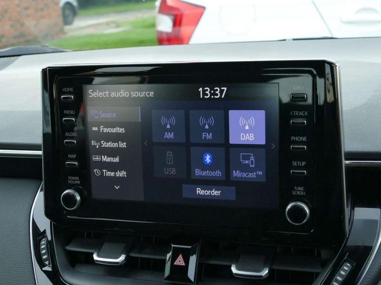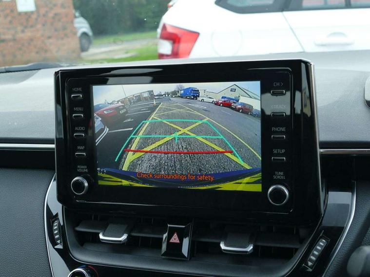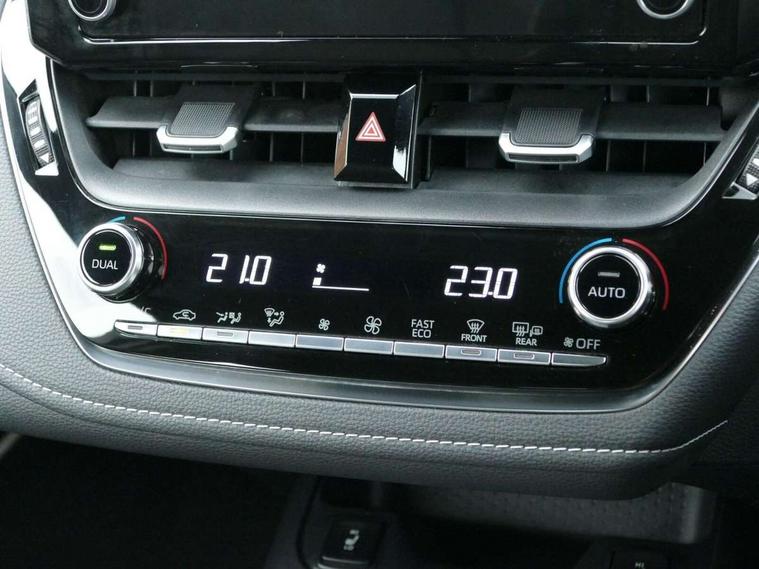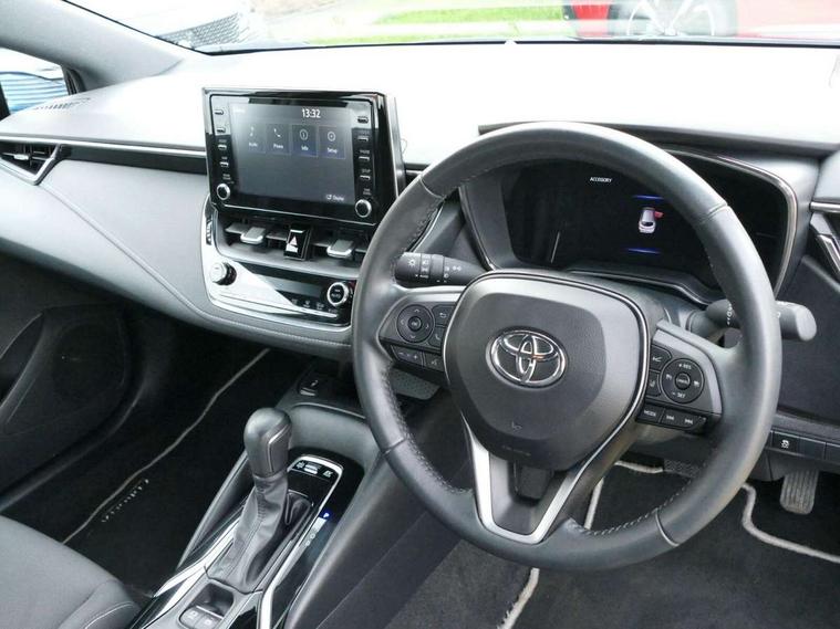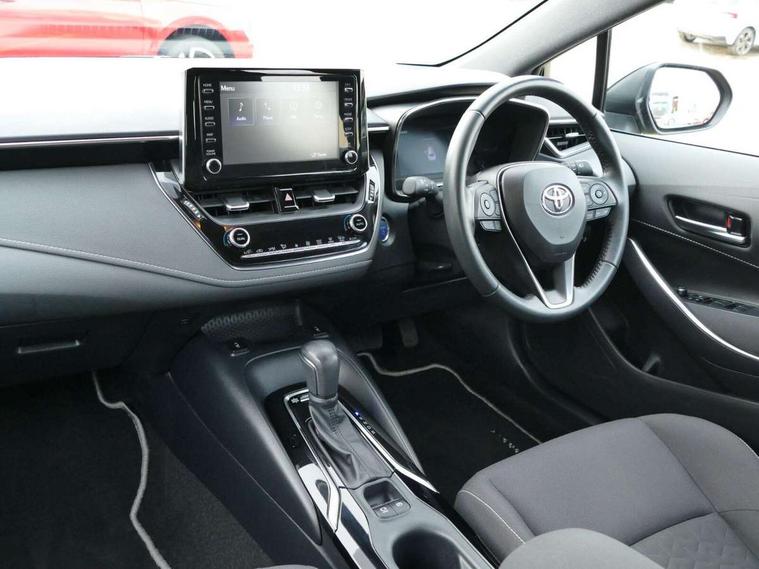 7" Multi information display screen, Bluetooth telephone connectivity, Connected car functionality upgrade, tracker, remote status and e-care, Dynamic radar cruise control (with RSA) including switch on steering wheel, E-call, Electrically assisted power steering, EV drive indicator, Lane Departure Alert (LDA) switch on steering wheel, Memory on adjustable speed limiter, Push button start, Reversing camera, Smartphone integration with Apple CarPlay and Android auto, Gasoline particulate filter, Vehicle Stability Control (VSC), 6 speakers, 8" Touchscreen with MM19 Multimedia system and voice recognition, AM/FM radio, DAB Digital radio, USB and Aux in connectors + 12V front outlet, USB charging port in centre storage box, Aluminium roof rails, Anti-jam protection on power windows, Auto up and down function on all power windows, Automatic headlights with high beam assist, Black metallic surround on lower front grille, Black toyota logo in front, Body colour rear spoiler, Body coloured bumpers, Body coloured door mirrors, Body coloured outside door handles, Follow me home headlights, LED daytime running lights, LED front fog lights, LED Headlights, LED High mounted stop light, Manual day/night rear view mirror, Noise reduction layer on front windows, Power adjustable heated door mirrors, Power front windows, Power rear windows, Rain sensor, Rear side wing doors, Rear window defogger, Rear window wiper, Shark fin antenna, Time adjustment on intermittent wiper, Turning signal integrated indicators in door mirrors, Unique lower skirt, Unique side rocker with black insert, UV-filter on driver and passenger windows, 12v power outlet - luggage side, 3 rear headrests, 3 seat bench in 2nd row, 3 spoke leather steering wheel + gear knob, 60/40 split folding rear seat, Adjustable speed limiter switch on steering wheel, Audio, multimedia and telephone switches on steering wheel, Boot light, Boot underfloor storage, Clean air filter, Driver and front passenger personal light, Driver and passenger assist grip, Driver and passenger sun visor with mirror and light, Dual sided deck board in boot, Dual zone automatic air conditioning with ECO mode switch, Fabric armrests, Front and rear cup and bottle holders, Front and rear door pockets, Front head restraints, Front passenger seat, Heated driver and front passenger seats, Illuminated entry system in room lamp, ISOFIX seat fixing (2 fixings on rear outer seats), Leather gear shift with satin chrome on gear shift console, Manual height adjustable for driver and front passenger seat, Passenger seat back pocket, Pollen filter, Power adjustable lumbar support on driver seat, Power window switches with satin chrome inserts, Quilted fabric upholstery with grey stitches seats, Rear armrest with 2 cupholders, Rear passenger air vents, Rear passenger coat hooks (2), Rear passenger personal lights, Retractable tonneau cover with luggage partition net, Satin chrome inside door handles, Shopping bag hooks in luggage compartment, Side storage in boot, Sliding armrest on centre console box, Slow opening glovebox with lights, Tilt/telescopic steering column, Tonneau cover with under floor storage, Voice recognition switch on steering wheel, Whiplash Injury Lessening (WIL) feature (active headrest) for seats, Toyota safety sense 2 pack - Corolla, 3x3 point rear seatbelts, Adjustable driver and front passenger seat belt extender to top anchor point, Anti lock braking system + Electronic brake force distribution, Brake assist function, Child locks on rear doors, Downhill Assist Control (DAC), Electronic parking brake, Emergency brake light signal (EBS), Front passenger airbag on/off switch, Front seatbelt reminder, HAC - Hill start assist control, Rear seat belt reminder, Seatbelt pretensioners and force limiters, Supplemental restraint system (SRS) 7 airbags - dual driver, dual side curtain, side impact and driver knee airbags, Traction control, Tyre pressure warning system, Acoustic vehicle alert system (AVAS), Alarm with motion sensor and immobilizer, Remote central locking + deadlocks, Satin chrome dash trim, Soft touch texture on upper dashboard, Stitching on lower dashboard, Space saver spare wheel, Unique wheel finish with red wheel cap,