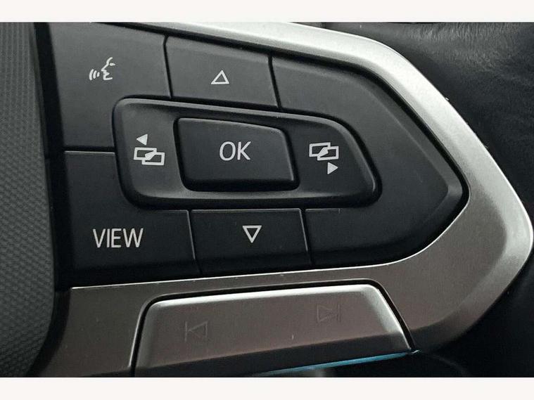 'Lights On' Reminder warning buzzer, Adaptive cruise control including front assist, forward collision warning, autonomous emergency braking, speed limiter, Blind spot monitoring, Bluetooth telephone and audio connection for compatible devices, Car information display, Digital cockpit, Driver alert system, eCall emergency call system, Lane assist, Low washer fluid warning light, Multifunction computer with visual gear change recommendation for fuel consumption, Operating permit alteration, Power assisted speed sensitive steering, Speedo, rev counter, electronic odometer, trip, service interval display, exterior temperature and fuel gauge, Stop/start system, Warning sound and light for doors and tailgate open, Warning sound and light for front seatbelts unfastened, We Connect Go Dongle, Wireless Car net app connect with Apple CarPlay, combined functionality of Apple CarPlay/Android Auto and MirrorLink, Battery regeneration during braking, Misfuel prevention device, 2x USB connection with USB charging sockets and in rear centre console, DAB Digital radio receiver, Diversity antenna for FM reception, Multi device interface (MDI) with USB connection, Music playback - MP3, WMA and AAC files, Premium USB cable for Apple or Android smartphone compatibility, Simultaneous pairing of 2 compatible mobile devices, Title and cover art display, Automatic hazard lights activation under emergency braking, Black door mirrors, Black roof rails, Body colour door handles, Body coloured bumpers, Dusk sensor + automatic driving lights, Electrically foldable, adjustable and heated door mirrors with reverse activated kerb view adjustment on passenger's side, Front and rear electric windows, Front fog lights with static cornering function, Galvanised body, Heated rear window, LED third brake light, Lower door sills and door pillars in black, Radiator grille with high gloss surface and chrome strip, Rear fog light on one side, reversing light on both sides, Rear lights incorporating LED technology, Rear side wing doors, Rear tinted glass 65% approx light absorbing from B pillar backwards, Rear window aerial, Rear windscreen washer and wiper with interval delay, Reflectors in all doors, Tailgate with integrated roof spoiler, Windscreen wipers/ intermittent wipe + 4 position delay, 12V Accessory socket in centre console, 3 rear head restraints and 3 rear three point seat belts with ECE label, 3 seat bench in 2nd row, 60/40 split folding rear seat backrest, Comfort front sport seats, Diag cloth upholstery, Drawer under drivers seat, Driver and front passenger sunvisor with vanity mirror, Driver's sunvisor with ticket holder, Dust and pollen filter, Front + rear carpet mats, Front and rear reading lights X 2, Front centre armrest with storage compartment, Front seat back storage pockets, Front seats with adjustable lumbar support, Glovebox, Heating and fresh air system with 4 stage blower, Height/reach adjust steering wheel, Instrument lighting white adjustable panel illumination, Interior light with delay, Isofix child seat preparation for 2 rear child seats, Luggage compartment cover, Luggage compartment lighting, Manual air conditioning, Moveable and foldable Rear bench seat, Storage compartment in drivers and front passengers door, Three spoke multi-function leather trimmed steering wheel and gearknob, Variable boot floor, Anti-lock Braking System (ABS) with Hydraulic Brake Assist (HBA), Automatic post collision braking system, Driver and front passenger safety-optimised head restraints, Drivers and Front Passengers airbags with front passengers airbag deactivation switch, ESC with EDL, ASR, EDTC and trailer stabilisation function, Front and rear curtain airbags, Front seat side impact airbags, Height-adjustable front three-point seat belts with tensioners, Hill start assist, Pre crash preventive occupant protection, Rear door child safety locks, Rigid safety cell with front and rear crumple zones, Single torn horn, Tyre pressure loss indicator, Volkswagen roadside assistance, Alarm with interior protection and deactivation via infotainment system, Child security locks in rear doors, Electronic engine immobiliser, Remote tailgate unlocking using key fob, Decorative inserts transition high gloss black/platnium grey, 17" Manila black diamond turned surface alloy wheels + anti theft wheel bolts, Breakdown kit,