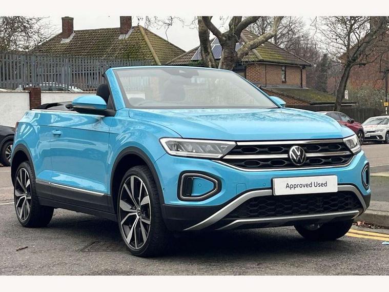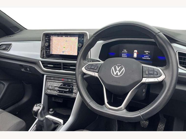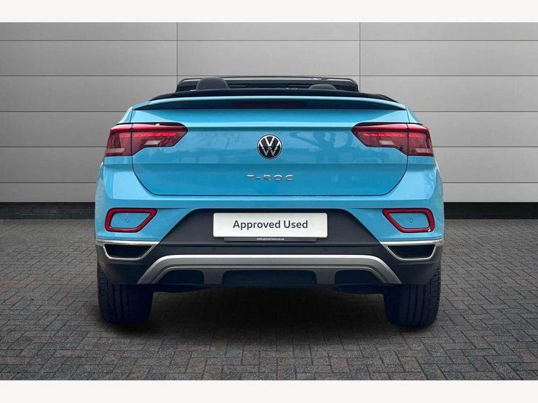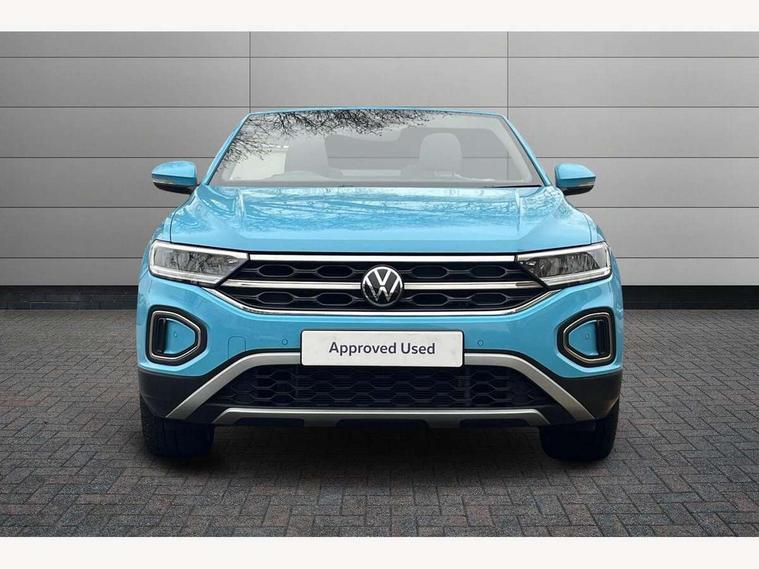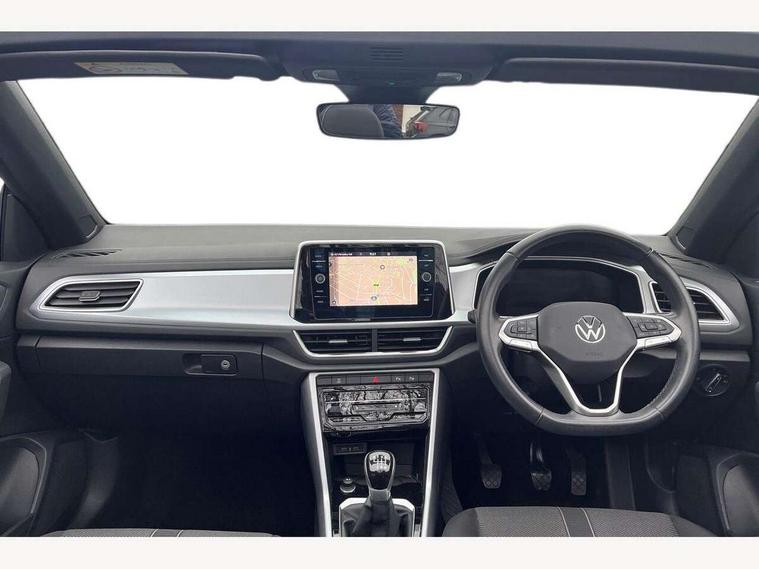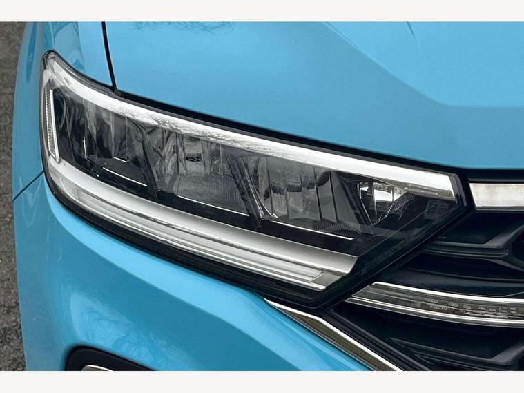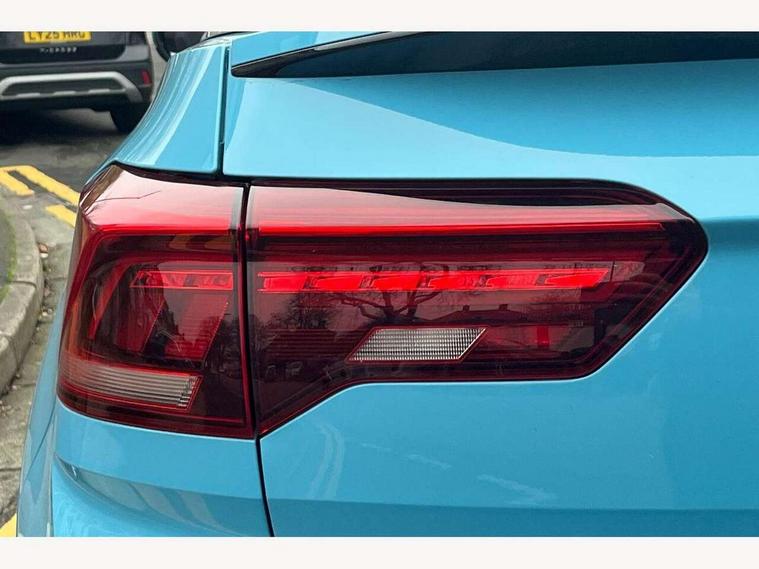 Adaptive cruise control and speed limiter, Bluetooth mobile phone interface, Brake pad wear indicator, Car information display, Driver alert system with fatigue detection, Driver tips and journey analysis, Dusk sensor, Emergency call service, Modified key software - reduce switch off time for key status change to Long no motion, Multifunction computer with visual gear change recommendation for fuel consumption, Multifunction front facing camera, Park assist including front and rear parking sensors, Speedo and rev counter, electronic odometer, trip, service interval display and exterior temperature gauge, Start/stop system with brake energy recovery, Tailgate/trunk lid release from outside, Warning sound and light for front seatbelts unfastened, Diversity antenna for FM reception, Music playback - MP3, WMA and AAC files, SMS functionality - read, compose and send SMS messages using touch-screen display, Title and cover art display, USB-C Interface and USB charging socket, We Connect and We Connect Plus functionality, Auto dimming interior rear view mirror, Automatic hazard lights activation under emergency braking, Automatic headlight control with LED separate daytime running lights with coming/leaving home function, Black roof, Body colour door handles, Body colour rear spoiler, Body coloured bumpers and radiator grille with chrome trim and front fog lamps with chrome bezel, Chrome effect left and right trapezoid exhaust tailpipe fascia surround, Dark red rear combination lamps in LED technology, Exterior mirrors aspherical on driver side, convex on front passenger side, Headlight range control, Heat insulating glass windscreen, High level 3rd brake light, LED Headlights, LED rear number plate lights, Power operated canvas convertible top, Power windows with comfort operation and circuit breaker, Rain sensor, Rear boot, Rear exhaust tailpipe, Rear fog light on one side and reversing lights on both sides, Remote electrically foldable door mirrors, puddle lights and reverse activated passenger door mirror, Volkswagen roundel, Windscreen wiper with intermittent wipe light, Without exterior ambient lighting, 12V socket in centre console storage area, 2 LED front reading lights, 2 seat bench in 2nd row, 50:50 Split folding rear seat backrests with fixed rear seat bench, Air care climatronic air conditoning system with active combination filter and 2-zone temperature control, Ambient lighting with logo projection, Black door lower parts with chrome trim, Chrome plated surround to light, mirror and window switch, Door and side trim panel with leatherette insert, Easy entry backrest release, Front and rear carpet mats with black stitching, Front centre armrest, Front cupholders x 2, Front door pockets, Front seat back storage pockets, Heated multi function steering wheel, Height/reach adjust steering wheel, Instrument lighting, white adjustable panel illumination, Interior light delay, Interior light in footwell, Interior lighting with switch off delay and contact switches on all doors, Interior white ambient lighting and surround lighting, Isofix child seat preparation, Lockable glove compartment with light, Luggage compartment lighting, Rear head restraints, Single front passenger seat, Sun visors with illuminated vanity mirrors, Driver assistance pack without proactive passenger protection - T-Roc cabriolet, 2 x 3-point seatbelts/outer rear seats with ECE label, Driver and front passenger airbag with front passenger airbag deactivation, Driver and front passenger safety-optimised head restraints, Drivers seatbelt reminder, Electronic parking brake, Electronic Stability Control (ESC) including ABS, ASR and EDL, Front and rear disc brakes, Front assist with autonomous emergency braking, Pedestrian monitoring, Predictive pedestrian protection, Rigid safety cell with front and rear crumple zones, Side airbag/thorax airbag system, for front passengers, Single tone horn, Three point height adjust front seatbelts + pretensioners, Tyre pressure loss indicator, Volkswagen roadside assistance, Anti-theft alarm system with interior protection and central locking system with SAFELOCK, radio remote control and 2 remote control folding keys, Electronic engine immobiliser, Trims for alloy wheels,