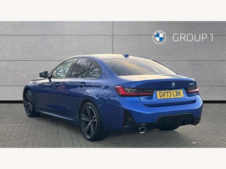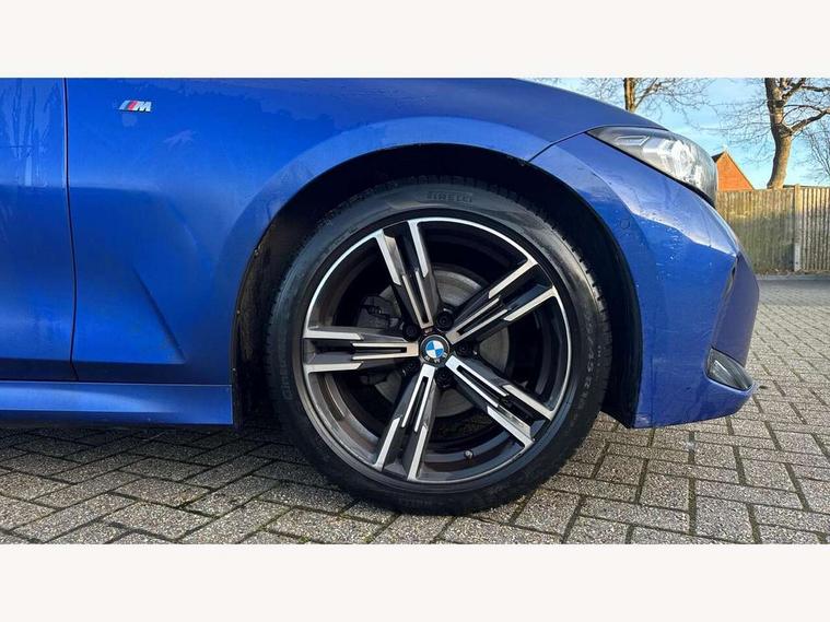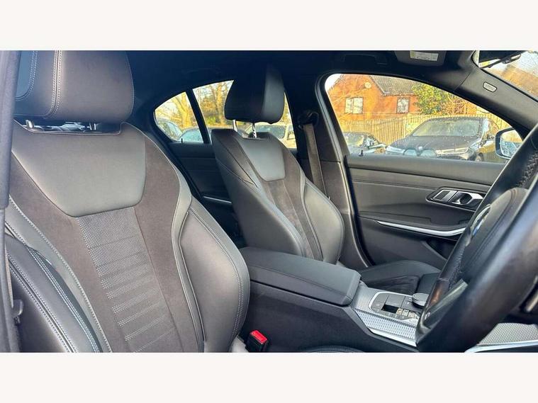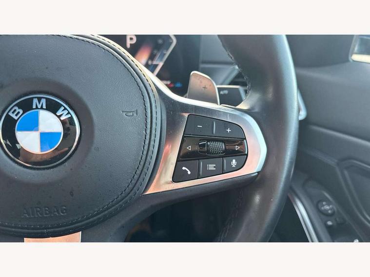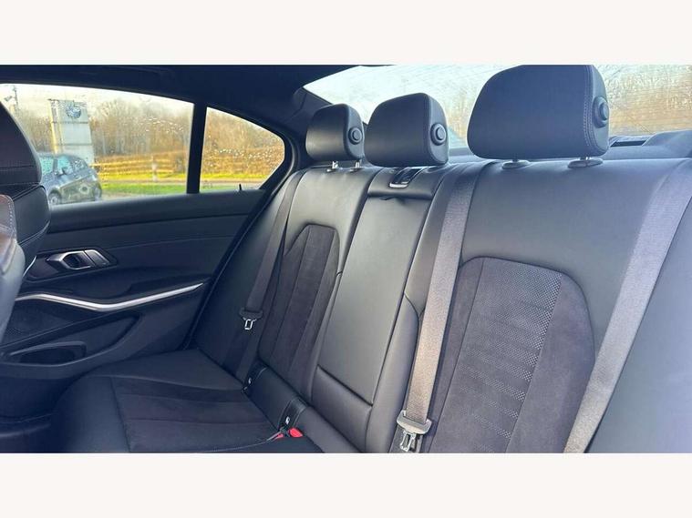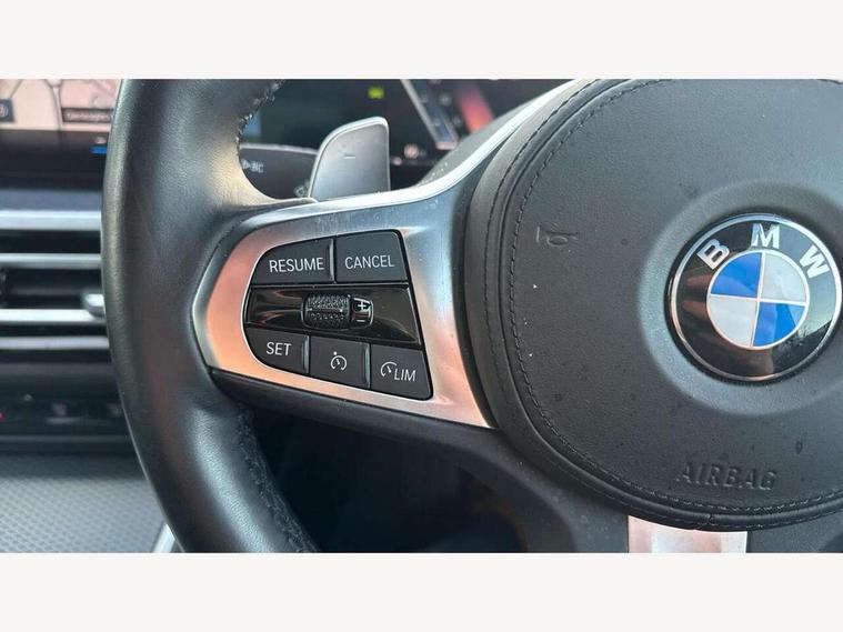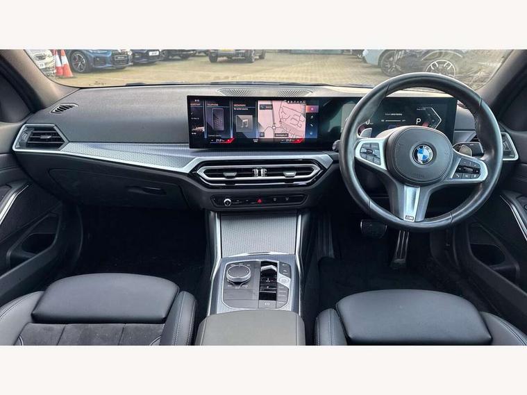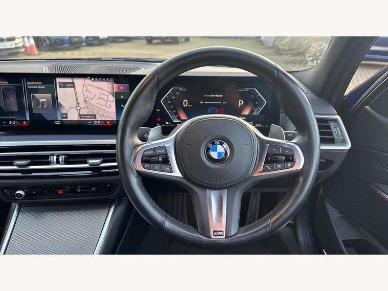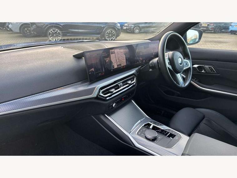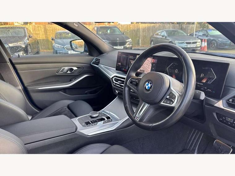 Active guard plus, Attentiveness assist, Automatic Start/stop button, BMW iDrive, BMW Teleservices, Condition based service, ConnectedDrive Services, Driving experience switch, Live cockpit plus with Navigation + 12.3" instrument display + 14.9" display, Intelligent voice assist, 2 USB, 4G LTE connect, Oil sensor for level and grade, Preparation for driver assistance, Shifting point display, Variable sport steering, Double joint spring strut front axle, Fuel tank breather system, M sport suspension, Sport automatic transmission with steering-wheel mounted gearshift paddles and launch control, DAB tuner, 3rd brake light, Acoustic glazing, Automatic headlight beam throw control with load dependent regulating reaction, dynamic compensation of braking dive and acceleration squat, BMW emblem, engine compartment lid and tailgate, Body colour roof fin, Door sill strips, Electric windows - front and rear, with open/close fingertip control, anti-trap facility and comfort closing, Follow me home headlight function, Front and rear bumper system with replaceable deformation elements, Front apron plastic in body colour, Fuel filler flap - right rear in body colour, Heated washer jets, High gloss shadow line exterior trim, Illuminated bow type door handles in body colour drivers side with door lock, Interior rear view electrochromatic mirror with automatic anti dazzle function, LED headlights with LED daytime running lights and LED turn indicator, LED rear lights, Licence plate panel integrated into front bumper and tailgate, Matt black B-pillar finsher, Matt black window recess cover, Model designation on right side of tailgate, One piece front bumper cover including towing eye cover in body colour, Rain sensor with automatic headlight activation, Rear boot, Rear side wing doors, Reversing lights, Side frame decorative moulding black matt, Visible exhaust tailpipe finisher, Welcome lights in interior and door handle area, 12V power socket in front storage compartment, 2 front cupholder in centre console with clamping elements and matt black inlay, 3 seat bench in 2nd row, 3 zone automatic air conditioning, 40:20:40 split folding rear seat with loading system, Ambient inside door handle light, Ambient light design projected onto the left and right entering and exiting area, Ambient lighting front and rear with 9 selectable colours, Ambient storage compartment lighting in the centre console, Anthracite headlining, Armrest integrated in front and rear door trim + front centre console armrest, BMW ID, Contour lighting in instrument panel and door trim panel, Cruise control operation in steering wheel, Driver backrest width adjustment, Folding rear centre armrest with 2 cupholders, Front and rear ambient footwell lighting, Front and rear door exit lighting (left / right), Front and rear headrests, Front and rear reading lights, Front and rear velour floor mats, Front sport seats, Heated front seats, Height adjustable mechanically and infinitely variable steering column, Illuminated armrest storage compartment, Illuminated glove compartment, Illuminated luggage compartment, Lashing eyelets in luggage compartment, M Sport multifunction leather steering wheel, Make-up mirror lights, Single front passenger seat, Standard seat for driver and passenger with manual adjustment, Sunvisors with vanity mirrors and ticket pocket, Toolkit located in luggage compartment, Connected pack professional - 3 Series Saloon/Touring, Interior and exterior mirror pack - 3 Series Touring/Saloon, M Aerodynamics package - 3 Series Saloon/Touring, M sport exterior styling pack - 3 Series Saloon/Touring, Storage compartment pack - 3 Series Saloon/Touring, 3x3 point rear seatbelts, BMW emergency call, Child locks on rear doors, Crash sensor activating of airbags, Unlocking doors, hazard warning lights, interior light, safety battery terminal, Driver and front passenger with seat occupancy detection for driver's and passenger side, Driver and passenger side airbags, body protection at side and airbags deploy from seat backrests, Dynamic brake control, Dynamic stability control + (DSC+) - Anti-lock Braking System (ABS) with brake assist and cornering brake control + Automatic Stability Control (ASC), Dynamic Traction Control - DTC, Electric parking brake including automatic hold function and automatic release of the parking brake when driving off, Electronic differential lock control (EDLC), Head airbags in 1st and 2nd row, head protection at side, curtain airbags open from headliner above 1st and 2nd row, Plastic fuel tank, Side impact protection, Tyre pressure monitoring with three level warning strategy, Ventilated front and rear disc brakes, Warning triangle and first aid kit, Alarm system, Centre lock switch, Closing system with central locking, Electronic vehicle immobiliser,