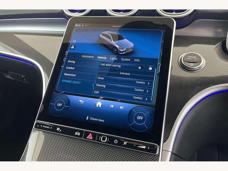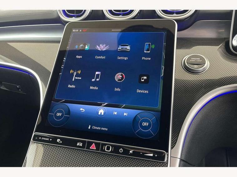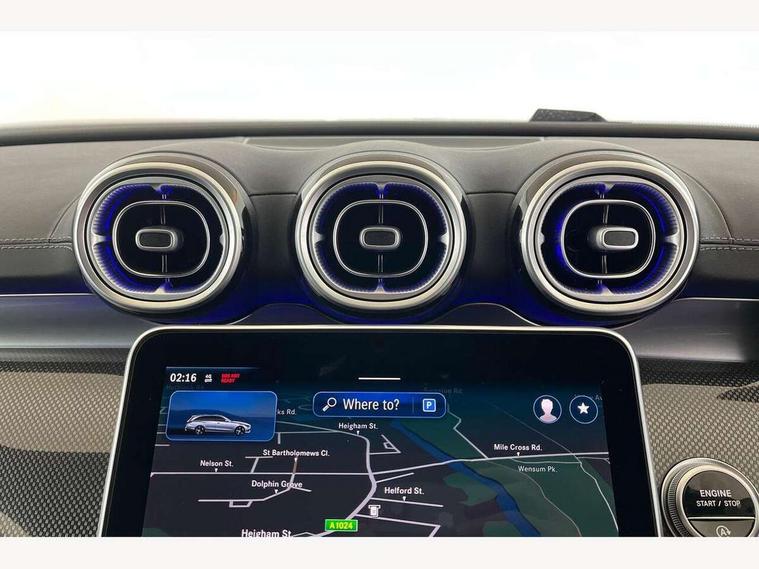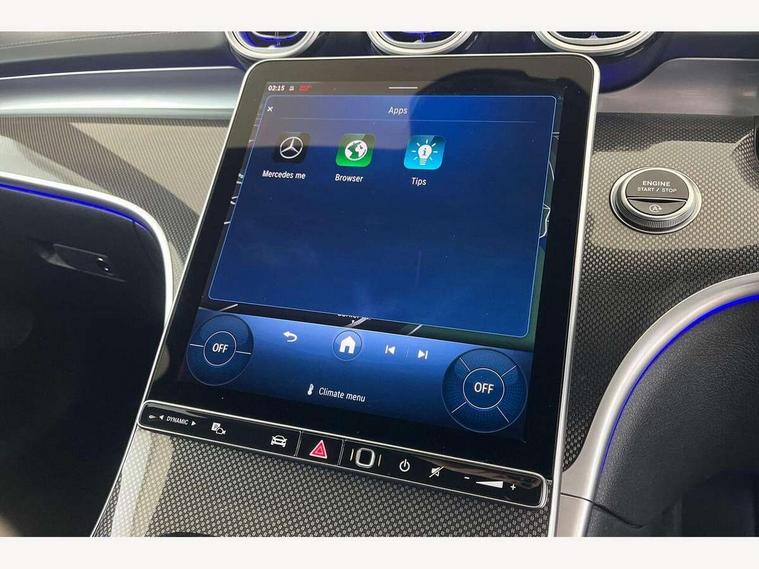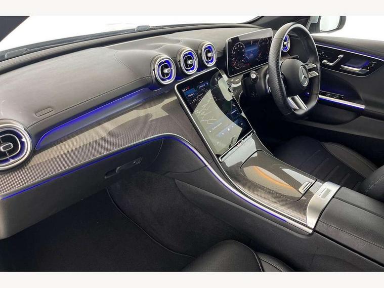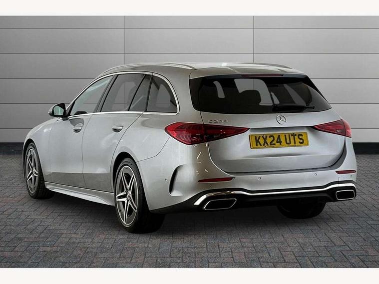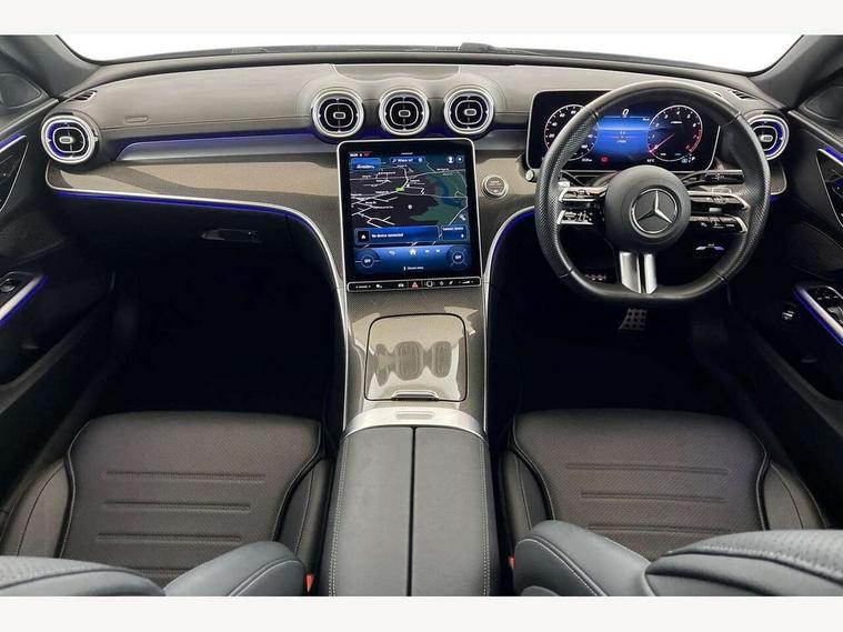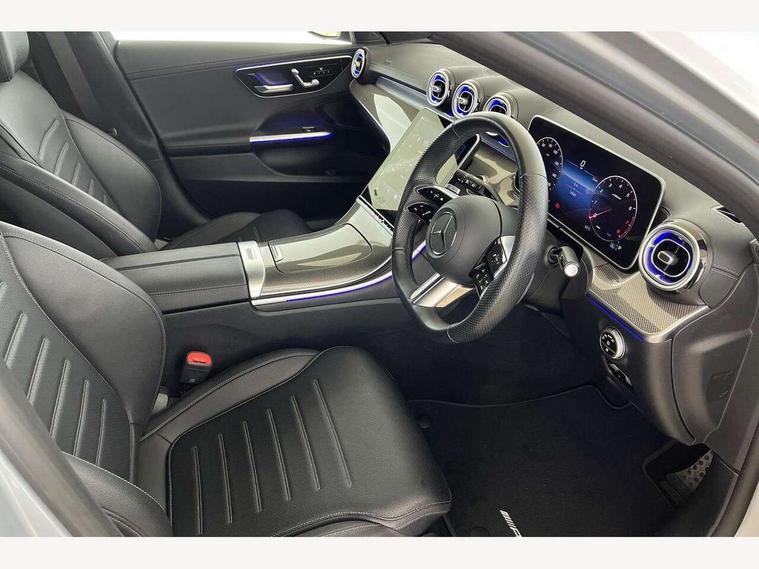 11.9" high resolution multimedia colour display, 12.3" digital instrument cluster display, Active lane keeping assist, Active parking assist with PARKTRONIC, Attention assist, Blind spot assist, Cruise control with speedtronic variable speed limiter, DYNAMIC SELECT with a choice of driving modes (Comfort, ECO, Sport, Sport+, Individual), E-call, Extended MBUX functions, Finger print sensor, Fluorescent jacket for driver, Hard disc navigation, MBUX navigation premium, Mercedes me remote services, Outside temperature gauge, Service indicator (ASSYST), Smartphone integration, Sports direct steer speed sensitive steering, Status display for rear seat belts in instrument cluster, Tailgate, Traffic sign assist, Wireless charging system for mobile devices, 9G TRONIC 9 speed automatic transmission, Petrol Particulate Filter, Sport suspension, DAB Digital radio, MBUX multimedia system, Adaptive brake lights, Adaptive high beam assist, Aluminium roof rails, AMG body styling front apron, rear apron and side skirts, AMG Line exterior, Body coloured bumpers, Body coloured door mirrors, Electric windows with one touch opening/closing and obstruction sensors, Electrically adjustable and heated door mirrors, Heat insulating dark tinted glass, LED daytime running lights, LED high performance headlamps, LED Indicators, LED tail lights, LED third brake light, Radiator diamond grille with integrated Mercedes Benz star and louvre silver with chrome pins, Rain sensor with automatic windscreen wiper activation, Rear side wing doors, Rear wiper, Two visible exhaust pipes integrated into rear bumper, 3 seat bench in 2nd row, 40:20:40 split folding rear bench seat, Ambient lighting premium, Ambient lighting with projection of brand logo, AMG floor mats, AMG line interior, Artico man-made leather upholstery, Auto Mercedes-Benz child seat recognition sensor, Black roof liner, Double cupholder in centre console, Electrically height/reach adjustable steering column, Folding rear seat backrest, Front and rear head restraints, Gearshift paddles on steering wheel, Heated front seats, Illuminated door sills with Mercedes Benz lettering, Illuminated glove compartment stowage, Load compartment cover, Multifunction sports steering wheel in nappa leather, Rear top tether child seat ISOFIX attachment, Single front passenger seat, Sports seats, Sunvisors with illuminated vanity mirrors, THERMATIC 2 zone automatic climate control, Boot comfort package - C Class, Easy pack tailgate - C Class, Interior light package - C Class, Memory package - C Class, Mirror package - C Class, Parking package with reversing camera - C Class, Stowage space pack - C Class, USB package plus - C Class, 3 rear 3 point seatbelts, Active bonnet pedestrian safety measure which detects an impact and raises bonnet, Active brake assist, Adaptive brake system with HOLD function and brake drying in the wet, Anti-lock braking system (ABS), Black seat belts, Brake calipers with Mercedes-Benz lettering + perforated front brake discs, Child proof door locks, Drivers knee airbag, Drivers pelvis airbag, Dual stage driver/passenger airbags, Electric parking brake, Electronic Stability Programme (ESP), Front centre airbag between driver and front passenger seats, Front side airbags, Tyre pressure monitoring system, Warning triangle and first aid kit, Window airbags for driver, front passenger and rear passenger, Antitheft alarm system, Interior monitoring system and Increased antitheft protection, Central locking with interior switch, automatic locking and crash sensor with emergency opening function, Chrome surround in electric key, Keyless Go, Urban guard vehicle protection plus, Dashboard, instrument panel and beltlines in ARTICO man made leather in nappa look, Metal structure trim element with centre console in metal structure finish, 18" AMG 5 spoke design aerodynamically optimised alloy wheels painted in tantalite grey with high sheen finish, TIREFIT with tyre inflation compressor,