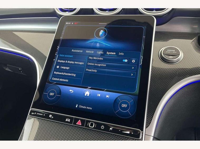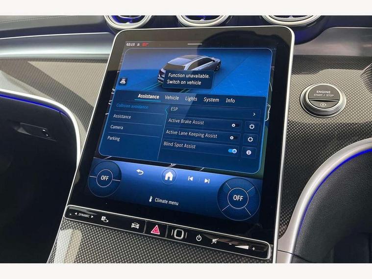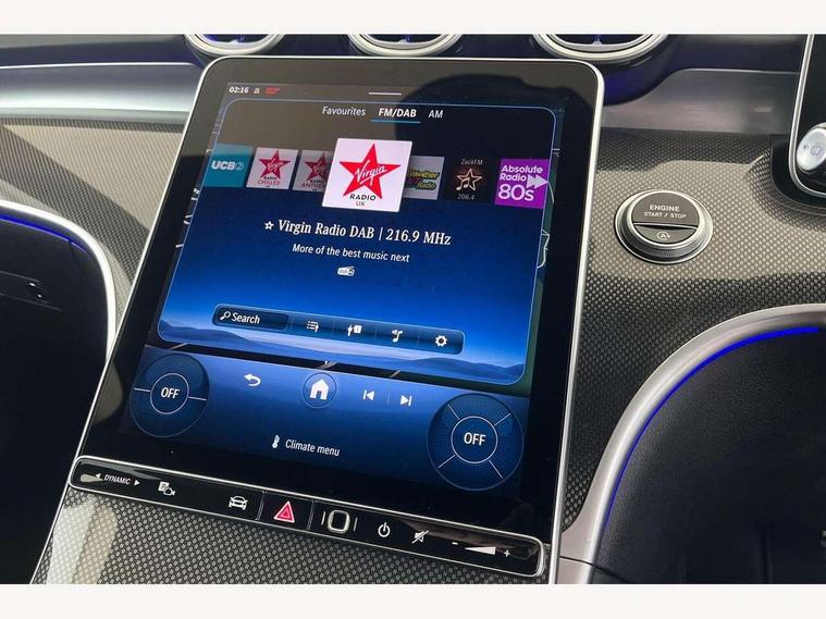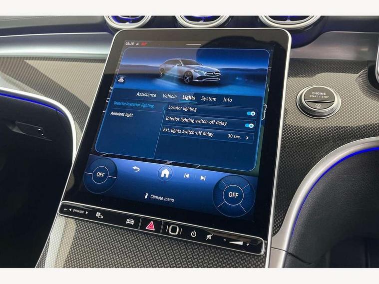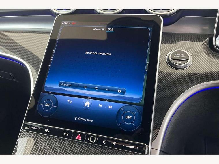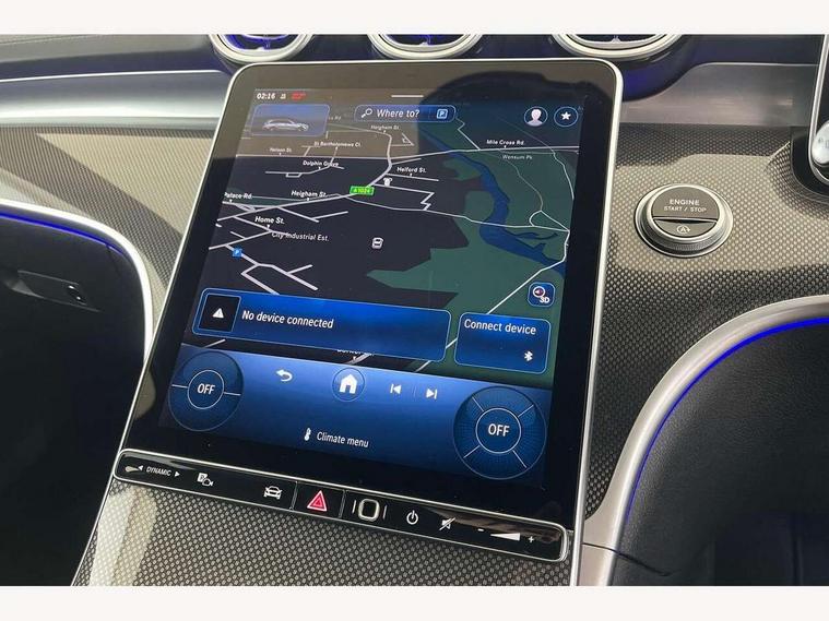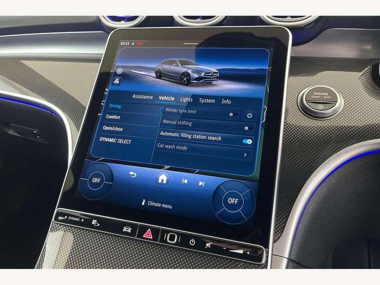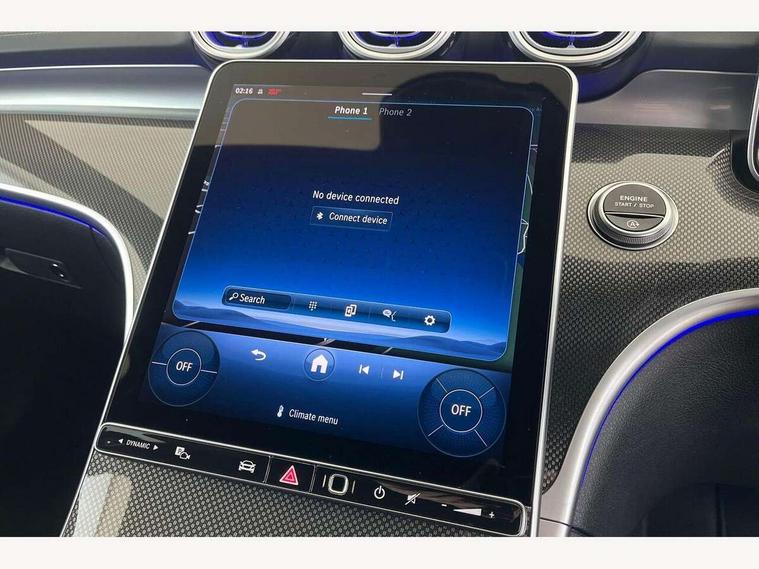11.9" high resolution multimedia colour display, 12.3" digital instrument cluster display, Active lane keeping assist, Active parking assist with PARKTRONIC, Attention assist, Blind spot assist, Cruise control with speedtronic variable speed limiter, DYNAMIC SELECT with a choice of driving modes (Comfort, ECO, Sport, Sport+, Individual), E-call, Extended MBUX functions, Finger print sensor, Fluorescent jacket for driver, Hard disc navigation, MBUX navigation premium, Mercedes me remote services, Outside temperature gauge, Service indicator (ASSYST), Smartphone integration, Sports direct steer speed sensitive steering, Status display for rear seat belts in instrument cluster, Tailgate, Traffic sign assist, Wireless charging system for mobile devices, 9G TRONIC 9 speed automatic transmission, Petrol Particulate Filter, Sport suspension, DAB Digital radio, MBUX multimedia system, Adaptive brake lights, Adaptive high beam assist, Aluminium roof rails, AMG body styling front apron, rear apron and side skirts, AMG Line exterior, Body coloured bumpers, Body coloured door mirrors, Electric windows with one touch opening/closing and obstruction sensors, Electrically adjustable and heated door mirrors, Heat insulating dark tinted glass, LED daytime running lights, LED high performance headlamps, LED Indicators, LED tail lights, LED third brake light, Radiator diamond grille with integrated Mercedes Benz star and louvre silver with chrome pins, Rain sensor with automatic windscreen wiper activation, Rear side wing doors, Rear wiper, Two visible exhaust pipes integrated into rear bumper, 3 seat bench in 2nd row, 40:20:40 split folding rear bench seat, Ambient lighting premium, Ambient lighting with projection of brand logo, AMG floor mats, AMG line interior, Artico man-made leather upholstery, Auto Mercedes-Benz child seat recognition sensor, Black roof liner, Double cupholder in centre console, Electrically height/reach adjustable steering column, Folding rear seat backrest, Front and rear head restraints, Gearshift paddles on steering wheel, Heated front seats, Illuminated door sills with Mercedes Benz lettering, Illuminated glove compartment stowage, Load compartment cover, Multifunction sports steering wheel in nappa leather, Rear top tether child seat ISOFIX attachment, Single front passenger seat, Sports seats, Sunvisors with illuminated vanity mirrors, THERMATIC 2 zone automatic climate control, Boot comfort package - C Class, Easy pack tailgate - C Class, Interior light package - C Class, Memory package - C Class, Mirror package - C Class, Parking package with reversing camera - C Class, Stowage space pack - C Class, USB package plus - C Class, 3 rear 3 point seatbelts, Active bonnet pedestrian safety measure which detects an impact and raises bonnet, Active brake assist, Adaptive brake system with HOLD function and brake drying in the wet, Anti-lock braking system (ABS), Black seat belts, Brake calipers with Mercedes-Benz lettering + perforated front brake discs, Child proof door locks, Drivers knee airbag, Drivers pelvis airbag, Dual stage driver/passenger airbags, Electric parking brake, Electronic Stability Programme (ESP), Front centre airbag between driver and front passenger seats, Front side airbags, Tyre pressure monitoring system, Warning triangle and first aid kit, Window airbags for driver, front passenger and rear passenger, Antitheft alarm system, Interior monitoring system and Increased antitheft protection, Central locking with interior switch, automatic locking and crash sensor with emergency opening function, Chrome surround in electric key, Keyless Go, Urban guard vehicle protection plus, Dashboard, instrument panel and beltlines in ARTICO man made leather in nappa look, Metal structure trim element with centre console in metal structure finish, 18" AMG 5 spoke design aerodynamically optimised alloy wheels painted in tantalite grey with high sheen finish, TIREFIT with tyre inflation compressor,