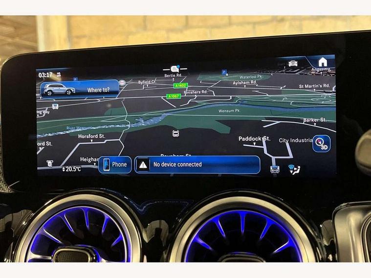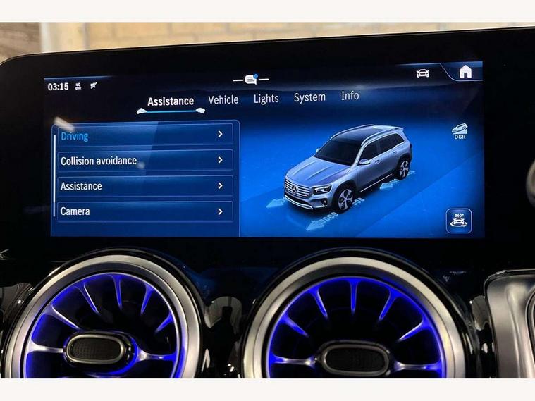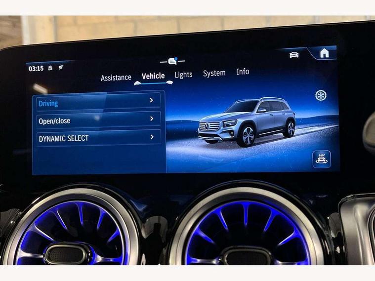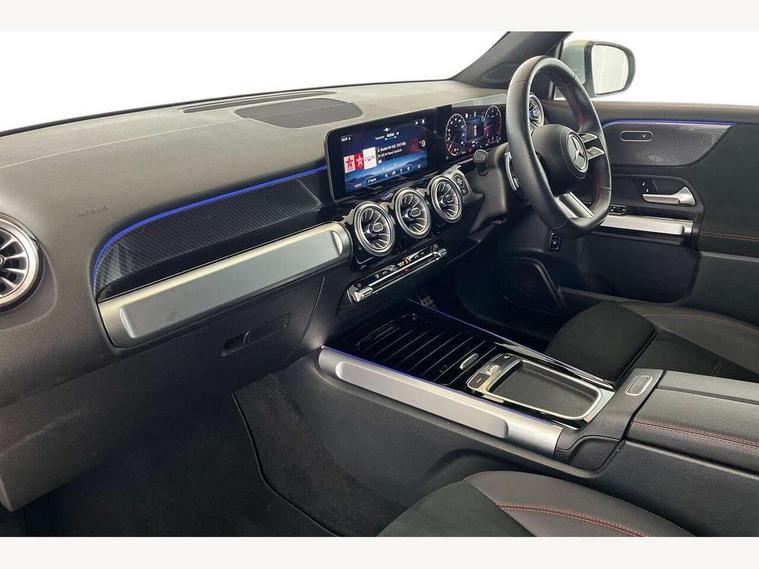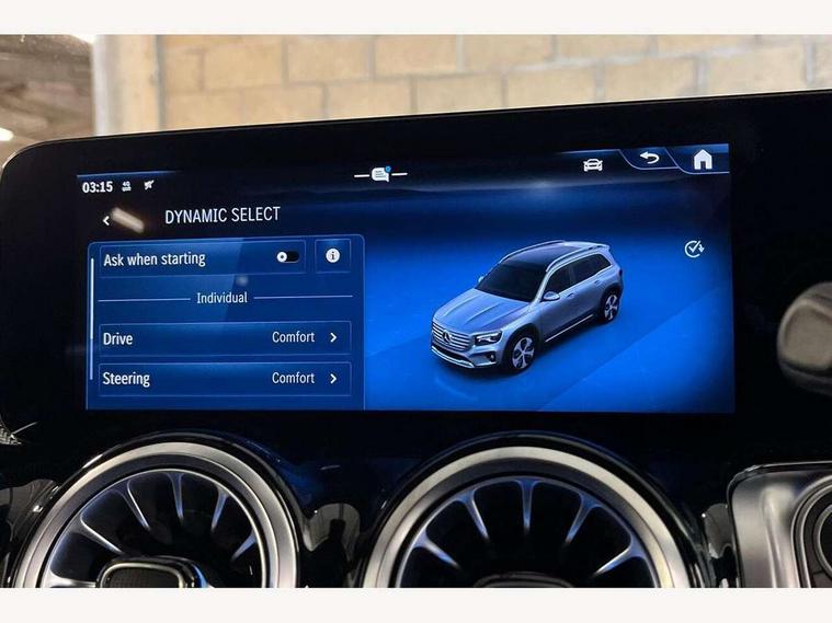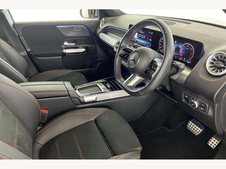 10.25 inch touchscreen central media display, 10.25" Digital instrument cluster display screen, 12 ultrasonic sensors in front and rear bumpers, 180 degree reversing camera with parking guidelines, Additional drive program "OFF-ROAD", Assisted parking: reversing backwards into perpendicular and parallel parking spaces, Attention assist - Monitors steering behaviour and long journey fatigue, Bluetooth connection, Brake pad wear indicator warning light, Car wash mode, Convenience opening and closing, Direct steering, DYNAMIC SELECT with a choice of driving modes (ECO, Comfort, Sport and Individual), ECO start/stop function, Engine start/stop button, Fluid level warning indicator for fuel, oil, coolant and washer fluid, Hard disk navigation, Hey Mercedes Voice activation, Lamp failure indicator, Lane keep assist, MBUX navigation premium, Mercedes me connect including emergency call system, accident recovery, breakdown and maintenance management, Mercedes me remote services, Outside temperature gauge, Owners manual and service booklet in English, Pre-installation of private car share, Preinstallation for parking damage notification, Radio aerial integrated into front and rear windshields, Remote boot closing, Service indicator (ASSYST), Smartphone integration with Apple CarPlay and Android auto, Speed limit assist, Tailgate, Trip computer in multifunction display with current consumption indicator, Ultrasound sensors - positioned in the handle of the tailgate, Wireless charging, Comfort suspension with ride height lowering, Rear axle multi-link, 1 USB-C port in the oddments compartment (Charge + Data transfer), 2 USB-C ports for the rear on the centre armrest (Charge only), 2 USB-C ports under the front centre armrest (Charge + Data transfer), DAB digital radio tuner, MBUX multimedia system, Mercedes Benz sound system (100 W) with 6 speakers, Pre installation for Mercedes Benz Link, Adaptive brake lights, Adaptive high beam assist, AMG front apron with front splitter in the colour of the vehicle with chrome trim element, AMG rear apron with visible tailpipe trim and chrome trim element, AMG specific/dual flow exhaust pipes in chrome (non-functional), Auto dimming rear view mirror, Beltline trim and window line trim strip in high gloss aluminium, Black grained side sill trim with chrome inlay, Body coloured door handles, Electric adjustable and heated door mirrors with integrated LED side indicators, Electric folding door mirrors, Front and rear electric windows, Headlamp assist automatic headlamp activation, Heat insulating dark-tinted glass starting from B-pillar, Heated glass rear windscreen + timer control, High level LED third brake light, Interior mirror with black reading lamps and frameless, LED high performance headlamps with integrated LED daytime running lights, LED tail lamp, Polished aluminium roof rails, Radiator grille as a diamond grille with chrome pins and central Mercedes star, Rain sensor windscreen wipers, Rear fog lamp, Rear side wing doors, Rear wiper, Single louvre in matt grey with chrome inserts and black highlights, Two visible tailpipe trim elements exhaust, Ultrasonic sensors - positioned in the front and rear bumpers, Wheel arch liners in the colour of the vehicle, 12V socket in the oddments compartment, 3 seat bench in 2nd row, 3 twin spoke flattened multifunction steering wheel in nappa leather - horizontal twin spoke in high gloss black, vertical twin spoke in silver chrome, 4 way adjustable lumbar support, 40:20:40 split folding rear seats, Air vents with silver chrome surrounds, AMG floor mats, AMG sports pedals with brushed stainless steel surfaces and black rubber studs, Automatic child seat recognition sensor, Black roof lining, Door handles with chrome inserts, Fluorescent jacket, Front and rear headrests, Front centre armrest with stowage, Galvanised steering wheel gearshift paddles in silver chrome, Handle recess lighting, Heated front seats, Height adjustable head restraints, Height/reach adjustable steering column, Interior lighting - 64 colour Ambient lighting, Luggage net on driver/front passenger seat backrest, Single front passenger seat, Sports seats, Stowage compartment with retractable cover, Sun visors with illuminated vanity mirrors, THERMATIC automatic climate control, Third row of seats for two people on rear seat, Twin front cup holders, Two outer rear seat isofix and top tether child seat fixing points, Easy pack tailgate, Interior lighting with light and sight pack - GLB, Seat comfort package - GLB, 3 rear 3 point seatbelts, Active bonnet pedestrain safety measure which detects an impact and raises bonnet by 65mm, Active brake assist includes forward collision warning system with autonomous braking, Adaptive brake assist with hold function and hill start assist, Airbags - kneebag for driver, Anti-lock braking system (ABS) with brake assist, Black seatbelts, Bonnet with power domes, Childproof locks manually operated for rear doors and electrically operated for rear power windows, Crash responsive emergency lighting, Curve dynamic assist, Downhill speed regulation (DSR), Driver and front passenger head and sidebags, Driver and front passenger windowbags, Dual stage driver and front passenger airbags, Electric parking brake, Electronic stability programme with acceleration skid control, Front and rear seatbelt reminder, Front brake callipers with Mercedes Benz lettering, Front passenger seat occupancy sensor, Perforated front brake discs, Tyre pressure monitoring system, Warning triangle and first aid kit, Guard 360 degree vehicle protection - Anti theft alarm system, tow away protection with visual, acoustic warning and alarm, Interior monitoring system, Keyless Go Access and drive authorisation system, KEYLESS-GO starting function, Remote central locking and crash sensor with emergency opening function, Thatcham category 1 alarm system with immobiliser and interior protection, Vehicle key with KEYLESS GO functionality, Carbon structure 