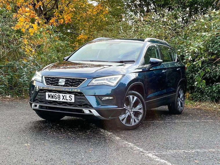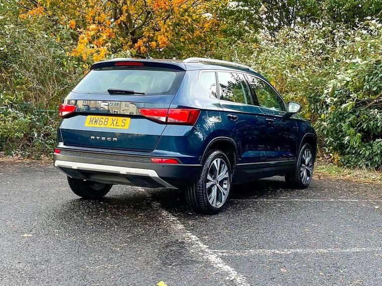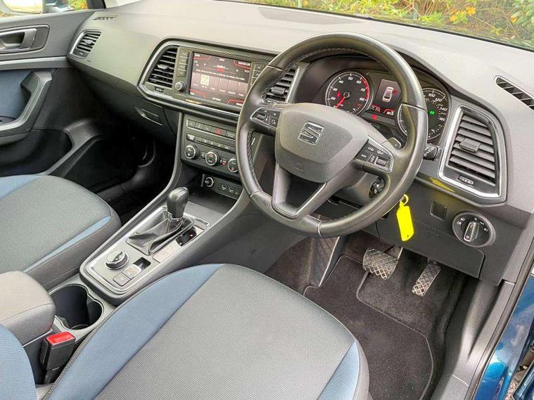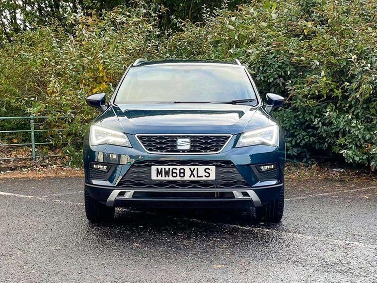 Chrome effect dashboard facia, Navigation system pack - Ateca, 18" Performance machined alloy wheels 36/2, 2 folding remote keys with window open/close function, Immobiliser, Locking wheel bolts, Remote central locking, Volumetric alarm with back up horn, SEAT USB media cable, Steering wheel mounted audio/phone controls, 3x3 point rear seatbelts, ABS, Auto hold function, Automatic post collision braking, Driver/Front Passenger airbags, Drivers knee airbag, Electronic parking brake, Electronic stability control, ESP+EBA, Front and rear seatbelt reminder, Front assist including city emergency braking, Front passenger airbag deactivation, Front side airbags, Hill hold control, Predictive pedestrian protection, Tiredness recognition system, Traction control, Twin Curtain Airbags, Tyre pressure monitoring system, Automatic headlights, Black wheel arch extensions, Body colour bumpers, Body colour door handles, Body colour door mirrors, Chrome headlight surround, Chrome roof rails, Chrome side window trim, Chromed centre radiator grille surround, Electric folding door mirrors, Electrically adjustable and heated door mirrors, Front and rear electric windows, Full LED headlights, Hidden exhaust pipe, LED daytime running lights, LED front fog lights with static cornering light function, LED Headlights, LED tail lights, Matt black radiator grille, Rear fog lights, Rear wash/wipe, Tinted windows, Welcome lighting, 12V power point front, 3 height adjustable rear headrests, 4 Lashing eyes in boot, 60/40 split folding rear seat, Active head restraints, Adjustable front armrest with storage compartment, Ambient lighting, Cloth upholstery, Comfort front seats, Driver sunvisor with covered mirror + card holder, Driver/passenger lumbar adjustment, Driver/passenger sunvisors with illuminated vanity mirrors, Dual zone climate control, Footwell illumination, Front courtesy lights, Front cupholders, Front reading lights, Front seat back storage pockets, Gear shift indicator, Height adjustable driver's seat, Height adjustable front headrests, Height adjustable passenger seat, Illuminated boot, Illuminated glovebox, Instrument lighting with brightness control, Isofix child seat preparation, Leather steering wheel and gear knob, Rear armrest, Rear central air outlet, Rear reading lights, Steering wheel gearshift paddles, Storage box under drivers seat, 'Lights On' Reminder warning buzzer, 3.5" driver's display, 8.0" colour touchscreen with proximity sensor, Cruise control, Digital clock, Driver alert system, Electric speed sensitive power steering, Full Link Smartphone Integration with Mirror Link, Apple Car Play, Google Android Auto, Low fuel warning light, Multi function display, Outside temperature gauge, Park assist system with steering assist, Remote fuel flap release, RPM counter, Satellite navigation system, SEAT Drive profile, SEAT logo boot release, Self parking functionality (includes front and rear parking sensors), Trip computer, Comfort suspension, XDS electronic differential lock,