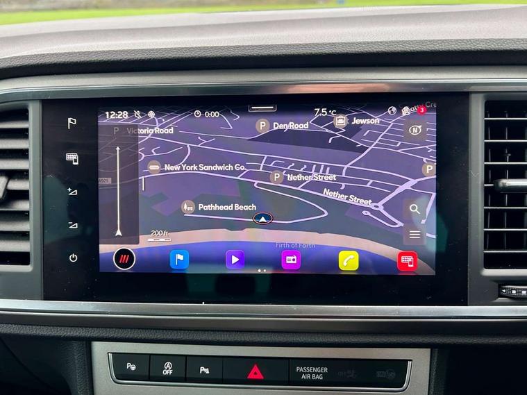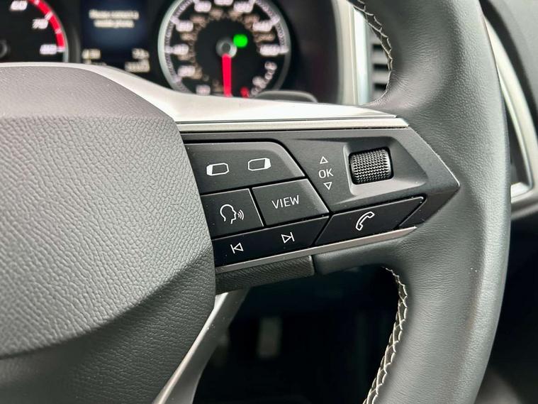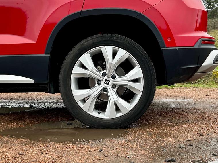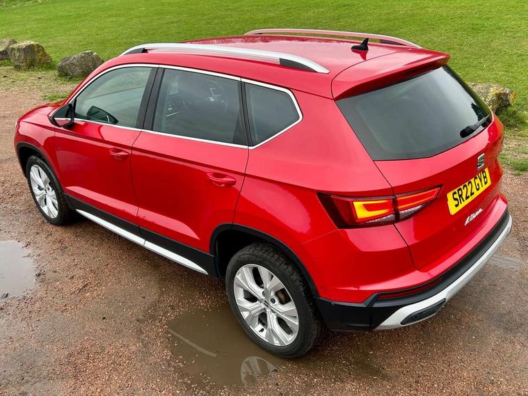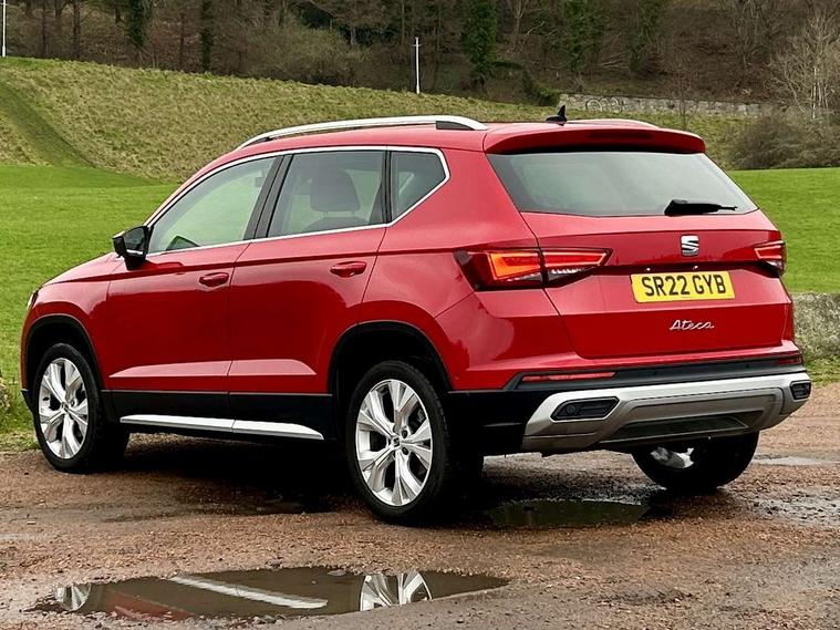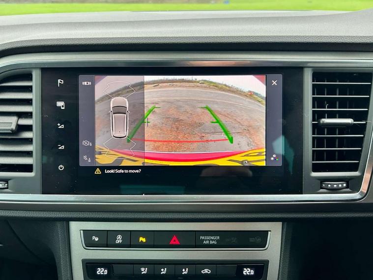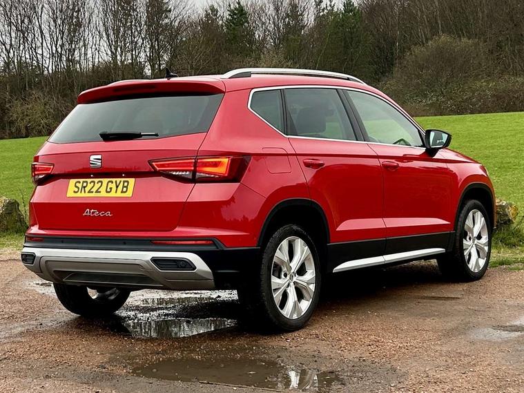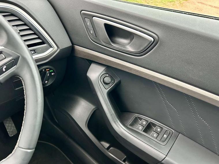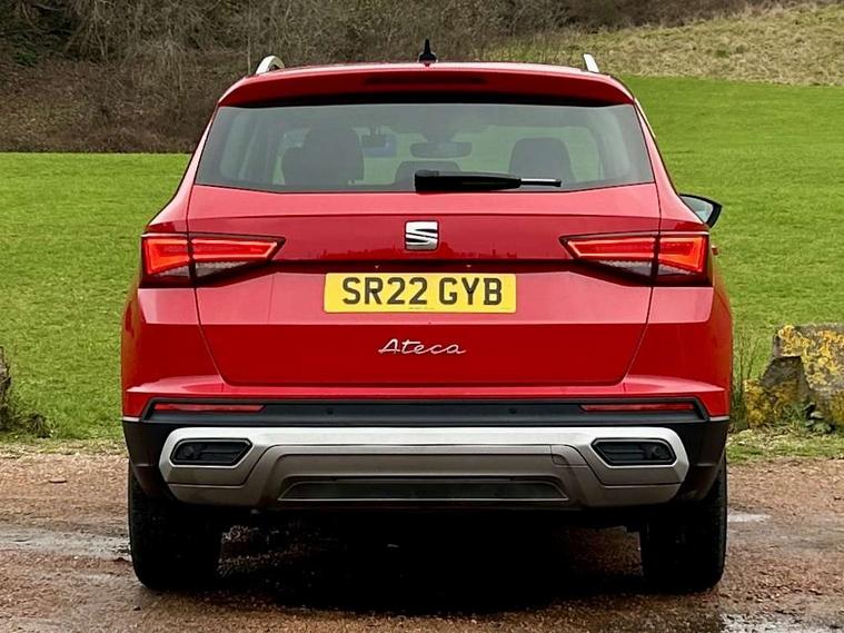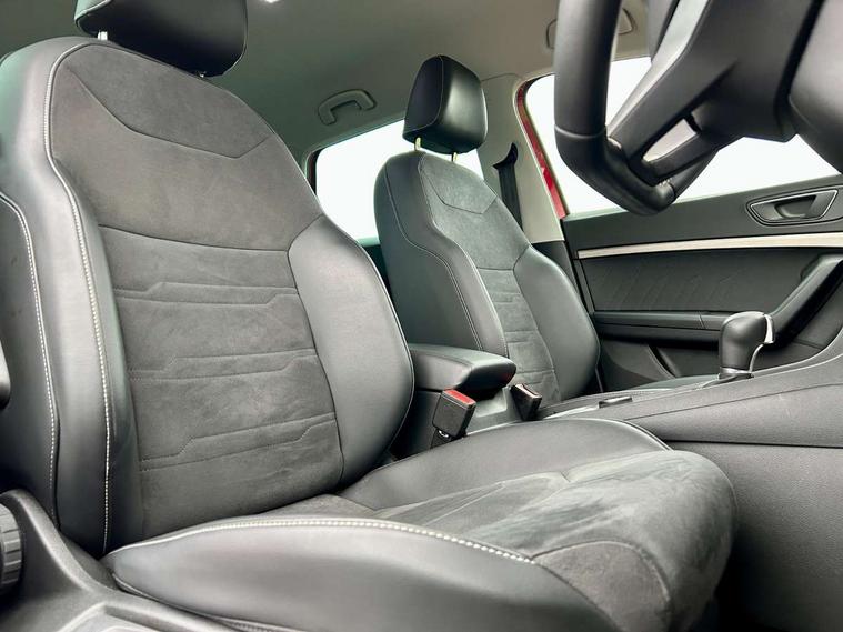 E-call, Outside temperature gauge, Progressive power assisted steering, Rear view camera, SEAT drive profile with driving experience button - Normal, Sport, Eco and Individual mode, gearshift, steering and throttle response, Self parking functionality (includes front and rear parking sensors), Trip computer, Wireless full link smartphone integration, Wireless phone charger, Steering wheel mounted audio/phone controls, Black simulated exhaust pipes, Body colour bumpers, Body coloured wheel arch surrounds, Chrome front grille frame, Chrome roof rails, Chrome side window trim, Dark tinted rear windows, Daytime running lights, Door mirrors with welcome light silhouette, Dynamic headlight range control with self adjusting whilst driving, Electric adjustable/heated/folding door mirrors, Front and rear electric windows, Front grille hot stamping, Full LED headlamps with lens and LED front fog lamps with cornering function, Illuminated aluminium front door sill, LED rear tail lights with dynamic indicators, Rear fog lights, Rear side wing doors, Rear wash/wipe, Reflex silver side mouldings, 12V socket in front, 3 seat bench in 2nd row, 60/40 split folding rear seat, Dual zone climate control, Front and rear head restraints, Front centre armrest, Front seat back storage pockets, Height adjustable driver and passenger seat with lumbar adjustment, ISOFIX points in outer rear seats with top tether anchorage points, Leather steering wheel and gear knob, Microsuede upholstery with front comfort seats, Rear armrest and easy back seat release mechanism from boot, Single front passenger seat, Steering wheel mounted gearshift paddles, Storage compartment under driver's seat, Convenience pack - Ateca, Interior lighting pack - Ateca, Navigation system pack with DAB - Ateca, Safe and driving pack - Ateca, 3x3 point rear seatbelts, ABS, Traction control system (TCS), Electronic stability control (ESC) and Electronic differential lock system (XDS), Airbags - Driver and front passenger airbag with deactivation, front side, two curtain and driver's knee airbags, Electric parking brake with auto hold function, Front and rear seatbelt reminder, Hill hold control, Manual rear child locks, Tiredness recognition system, Traction control, Tyre pressure monitoring system, Alarm, Keyless entry, Locking wheel bolts, Chrome interior detailing, 18" Brillaint silver alloy wheels,