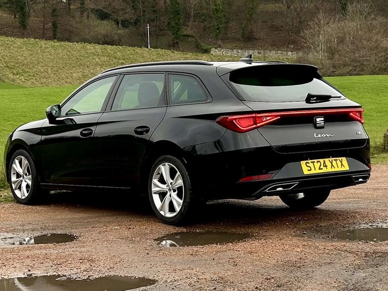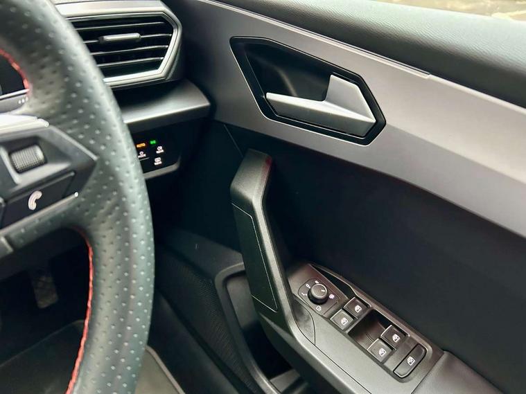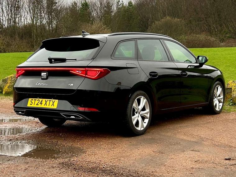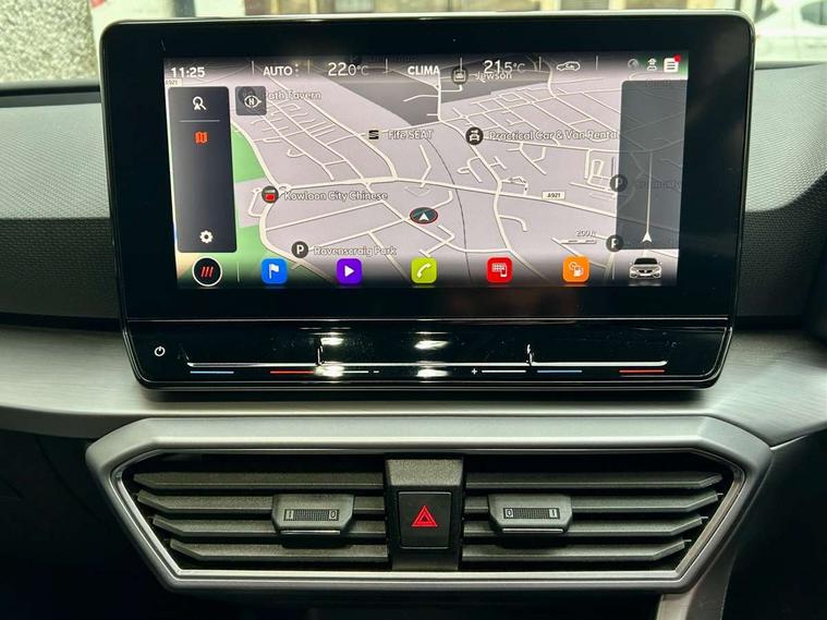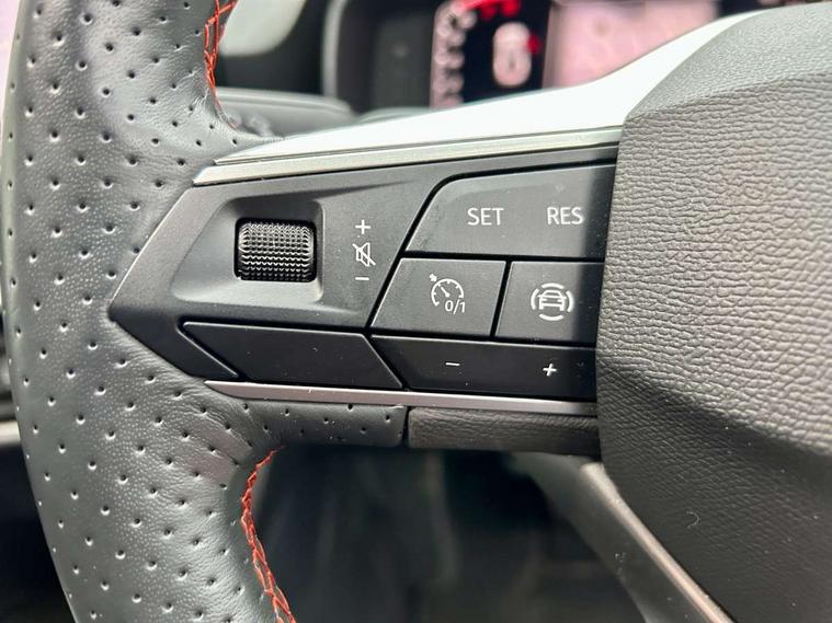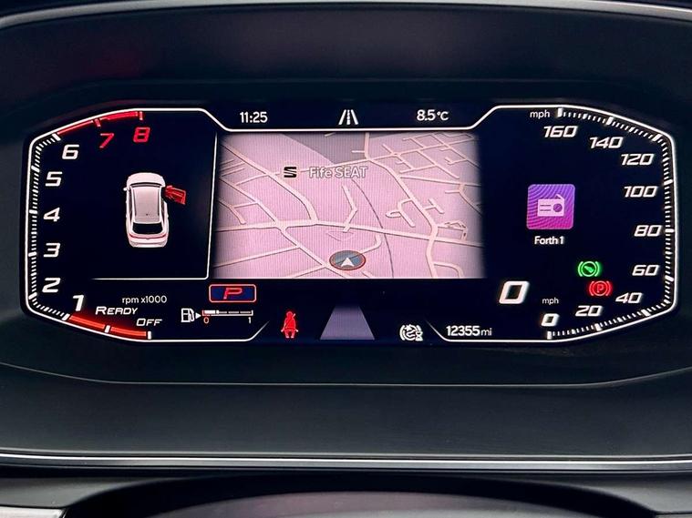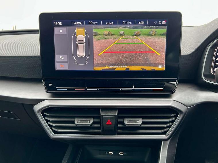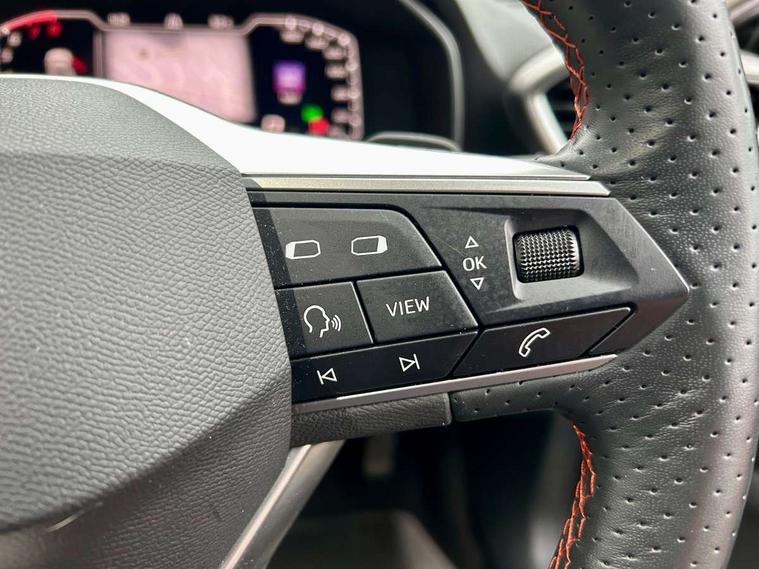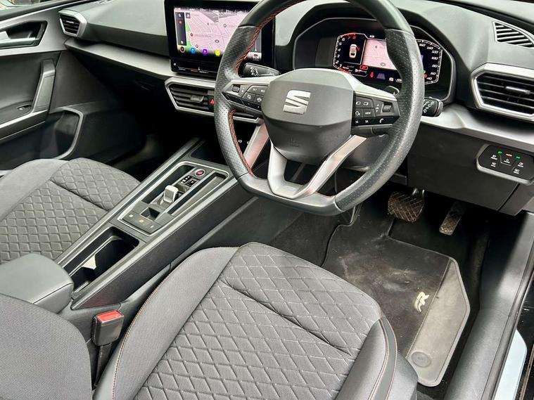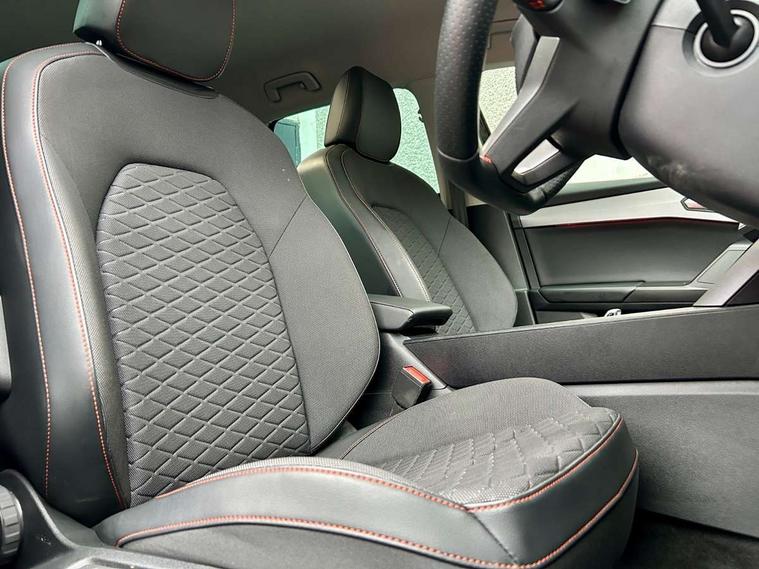 Digital cockpit, E-call, Four x USB Type C ports, Front assist with forward collision warning braking reaction to vehicles, pedestrians and cyclists, Full link smartphone integration with Mirror Link, wireless Apple CarPlay and wired Google Android Auto, Lane assist, Lockable tailgate, Park assist (inc front/rear parking sensors), Power assisted speed sensitive electro-mechanical steering, Rear view camera, RPM, trip computer, outside temp gauge, instrument light brightness, low fuel warning light, lights on reminder, gearshift indicator, SEAT drive profile with 4 modes (Eco/Normal/Sport/Individual), throttle response and gearshift mode, Service interval indicator, Start/stop system with regenerative braking, Sports suspension, XDS electronic differential lock and dynamic traction support, 7 speakers, Auxiliary input socket, Auto dimming rear view mirror, Body colour door handles, Body coloured bumpers, Cosmo grey exterior mirrors with integrated LED indicators, Dark tinted rear windows, Dynamic headlight range control, Electric front/rear windows, Electrically adjustable, heated and folding door mirrors, FR sports bumper, Illuminated front door sill, LED front fog lamps, LED Headlights with dynamic turn signals, LED tail lights and rear fog lights with rear coast to coast lighting, Matt black roof rails, Rear side wing doors, Rear wash/wipe, Separate daytime running light with automatic headlight control and coming home feature, Third brake light, Welcome light silhouette from exterior mirrors, Windshield wiper intermittent control with light/rain sensor, 12v power point in centre console, 3 seat bench in 2nd row, 60/40 split rear bench seat with armrest, Ambient lighting with glovebox, footwell and single monocolour, Driver/passenger manual seat height adjustment, Dust/pollen filter, Front and rear height adjustable headrests, Front and rear reading lights X 4, Front centre armrest, Front seatback storage pockets, Height/reach adjust steering wheel, ISOFIX points in outer rear seats with top tether anchorage points, Luggage tie-down hooks, Lumbar adjustment for front seats, Single front passenger seat, Sliding boot cover, Sunvisors with covered illuminated mirror, Three zone climate control, Two tone cloth upholstery, Media system plus with navigation - Leon, 3 point seatbelts on all rear seats, ABS, Brake control system - ESC and brake booster, Child proof door locks, Driver and front passenger airbags with front passenger airbag de-activation, front side and curtain airbags, Electronic parking brake, Extended safety system - seat belt tensioner, window closure and hazard lights, Hill hold control, Rear disc brakes, Seat belt reminder for front and rear seats, Tiredness recognition system, driver alert system, Tyre pressure monitoring system, Anti theft alarm system with interior monitoring in cab, backup horn and towing protection, KESSY Go (Keyless start), Locking wheel bolts, Wireless phone charging, Chrome interior detailing, 17" Dynamic Bi-spoke alloy wheels with 91W tyres, Tool kit,