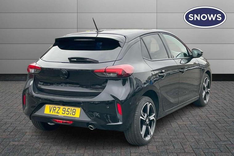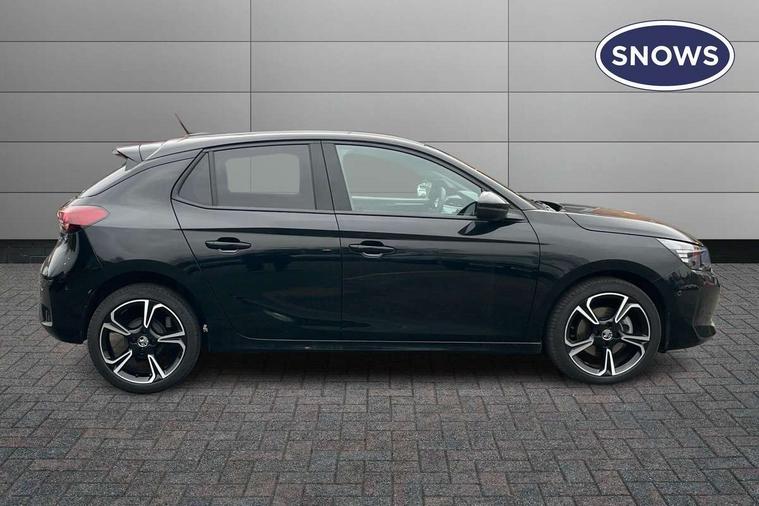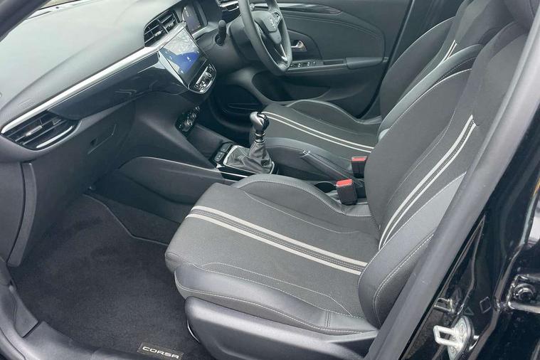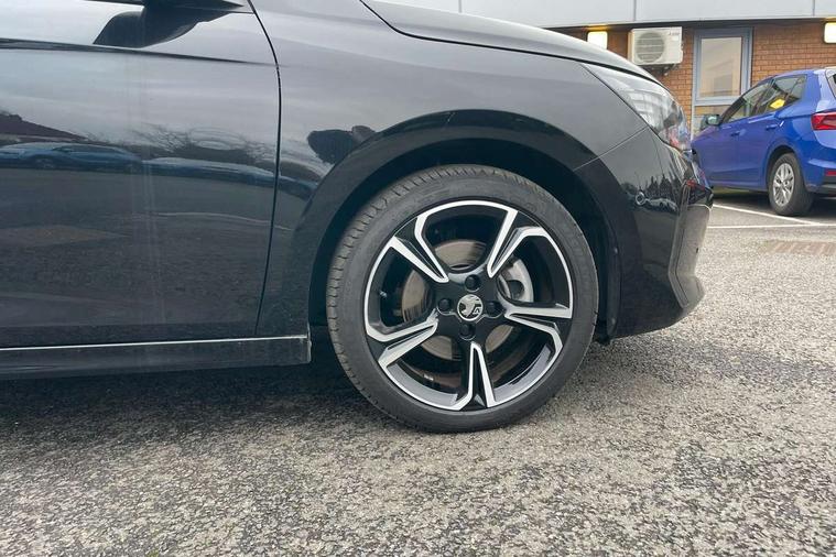130 degree rear view camera, 7 inch digital instrument cluster display, Auto tele unit 3S vehicle communication system, Breakdown call (b-call), Central facia display with digital clock, outside air temperature and audio information, Cruise control with intelligent speed limiter, Driver drowsiness alert system, E-call, Engine oil life indicator, Front and rear parking sensors, Front camera system, Instrumentation - Speedometer, rev counter, low fuel gauge warning light + water temperature gauge warning light, Lane departure warning, Lane keep assist, Lights on audible warning, Multi function trip computer, RDS with traffic programme, Service indicator, Side blind spot alert, Smartphone projection, Speed sensitive power steering, Speed sign recognition, Sport drive mode selector, Start/stop system, Vauxhall connect box, Wireless Apple CarPlay/Android Auto, Electronic returnless fuel system, Petrol Particulate Filter, Under body shield for aero, AM/FM stereo radio, Bluetooth A2DP audio streaming function (Advanced audio distribuition profile), DAB Digital radio, Multimedia with 10-inch touchscreen, Six speakers, Steering wheel audio, phone and cruise controls, USB type C port, 3rd brake light, Automatic headlight control system, Black DLO, Black door mirror housings, Black Griffin logo and vizor frame, Black lower side window mouldings, Body colour door handles, Body colour front and rear bumpers, Bonnet/headlight/wiper structure, Corsa lettering in tailgate, Dark tinted rear side windows + tailgate window, Electrically adjustable and heated door mirrors, Electrically folding door mirrors, Electrically operated front and rear windows with safety auto reverse and one touch up/down facility, Electrochromic automatic anti-dazzle rear view mirror, Flexible roof mounted aerial, Glazed tailgate and heated rear window with wash/wipe facility, Hazard warning lights, Headlamps for left side traffic, High beam assist, High gloss black finish B pillar, LED daytime running lights, LED front fog lights, LED Headlights, LED tail lamp, Rain sensitive windscreen wipers, Rear fog lamp, Rear reversing lights, Rear side wing doors, Rear wiper, Solar heat absorbing windscreen and windows, Sports front and rear body styling for upper and lower bumper design, Two speed windscreen wipers with variable intermittent wipe, Windscreen and side window demist vents, 12V power sockets, 3 bench rear seats in 2nd row, 3 spoke flat bottomed leather effect steering wheel with satin chrome effect bezel, 4 speed fan with illuminated controls, 4 way manual co-driver seat reach fore/aft, backrest upright/recline, 6 way manual adjustable driver seat height up/down, reach fore/aft, backrest upright/recline, 60/40 split folding rear seat, Banda cloth upholstery, Black headliner, Cabin particulate filter - removes dust, airborne particles and pollen, Driver/passenger sunvisors with vanity mirrors + covers, Electronic climate control (ECC), Four adjustable facia vents, Front centre armrest with storage, Front cupholder, Front headrests, Height adjustable head restraints, Illuminated glovebox with lid, Interior courtesy light, Internal chrome door handles, LED boot light, Polyurethane gear knob/lever, Reach and rake adjustable steering column, Rear cupholder, Rear headrests, Right hand drive (RHD), Rubber pedals, Single dome lamp with dual front reading lamps, Single front passenger seat, Sports style front seats, Two litre open door pockets, 3 rear 3 point seatbelts, Anti-lock braking system (ABS), Automatic emergency braking with pedestrian detection, Cornering brake control, Deactivation switch for front passenger's airbag, Drag torque control, Driver and front passenger airbags, front seat side impact airbags, full size curtain airbags, EBD - Electronic brakeforce distribution, Electrical child lock system in rear door latch, Electronic Stability Programme (ESP), Emergency brake assist, Forward collision alert, Front seatbelt unfastened audible warning and warning light, Hill hold and start system, ISOFIX child seat mountings incorporating top tether anchor points located on second row rear seats, Manual handbrake, Seatbelt pretensioners, Single tone horn, Straight line stability control, Traction control, Tyre deflation detection system, Tyre pressure monitoring system, 2 keys one folding with integral remote, Electronically protected audio equipment, Engine deadlock and immobiliser, Freewheeling door locks, Locking wheel nuts, Remote control central locking, Remote control security alarm system, Remote locking fuel filler flap, Steering column lock, Visible vehicle identification number, Silent black facia with liquid palladium insert, 17" Diamond-cut hi-gloss black alloy wheels,