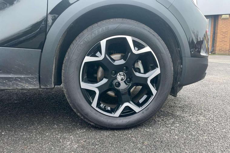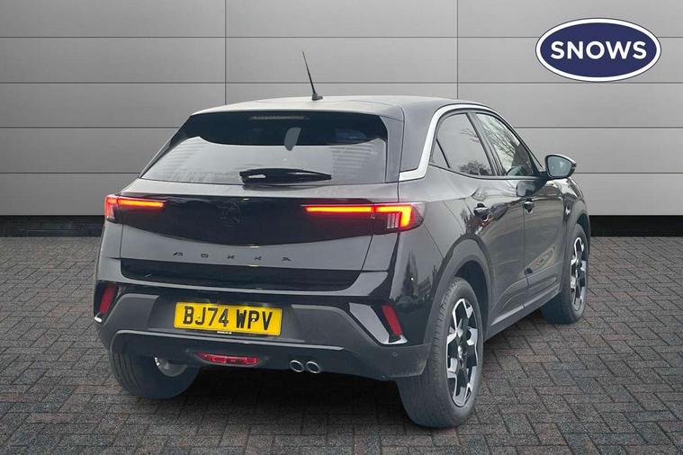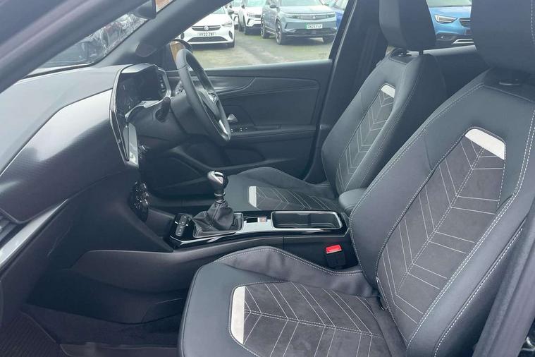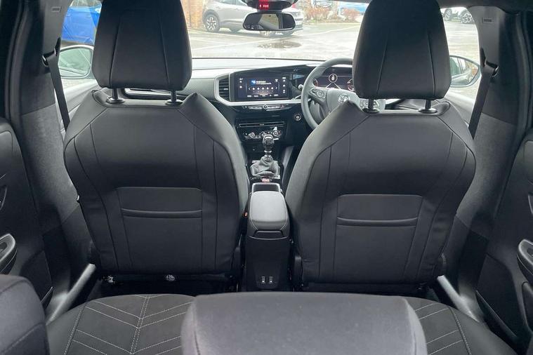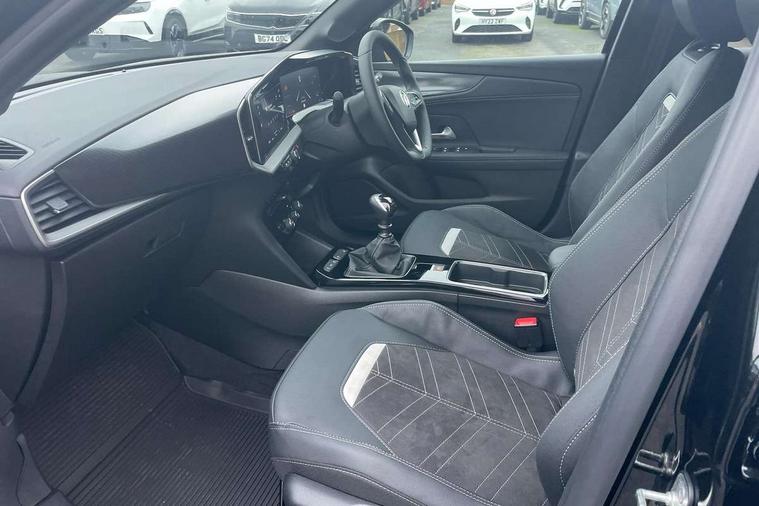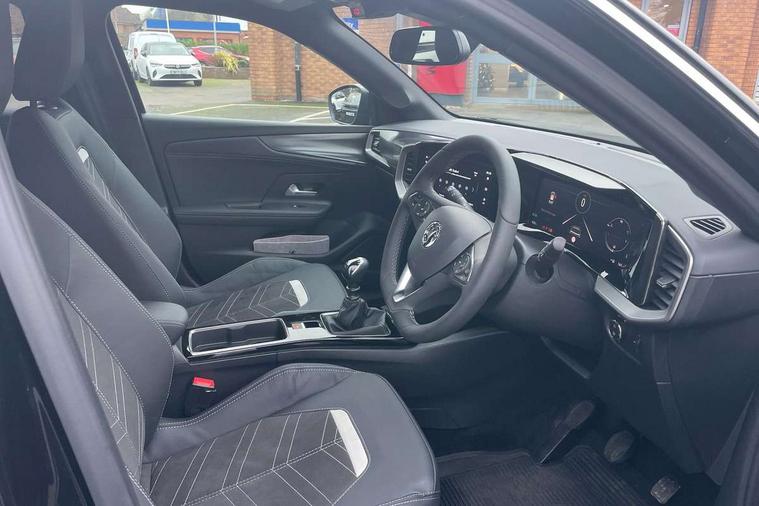 12" digital instrument cluster, Adaptive cruise control with speed limiter, Digital instrumentation with digital speedometer, rev counter, fuel and water temperature gauge, Driver drowsiness alert system, Driver information display with multi function trip computer, audio info, digital clock and outside air temperature with ice warning function, Engine start/stop button, EV information display, Extended traffic sign recognition, Front and rear parking distance sensors, Front camera and radar system, Gearshift up/down indication light, Lane keep assist system (LAS) with Lane departure warning system (LDWS), Lights on audible warning, Panoramic rear view camera, Power assisted speed sensitive steering, RDS with traffic programme, Side blind spot alert and flank guard, Smartphone integration compatible with Apple CarPlay and Android Auto, Sports switch with engine sound enhancement, Start/stop system, Vauxhall connect with e-Call, 6 speed manual transmission, 6 speakers, AM/FM stereo radio with 36 station presets, DAB Digital radio, Flexible Roof Mounted Radio Aerial, Front USB connection, Mobile phone portal - bluetooth connect, vehicle microphone, handsfree calls, SMS read out and reply, phone book access, Multimedia Navi Pro with 10" colour touchscreen, Steering wheel mounted controls, Two rear USB sockets, Adaptive brake lights, Auto high beam assist, Automatic headlamp levelling, Automatic lighting control with tunnel detection, Automatically dimming anti dazzle rear view mirror, Black door mirror housings, Black front and rear bumper inserts, Black Griffin logo and vizor frame, Body colour door handles, Body colour front and rear bumpers, Dark tinted rear side windows + tailgate window, Electric adjustable/heated/folding door mirrors + puddle lights, Electrically operated front and rear windows with safety auto reverse and one touch up/down facility, Hazard warning lights, Heated rear window+rear wash/wipe, Integrated black tailgate spoiler, IntelliLux Matrix LED headlights with adaptive forward lighting with anti glare beam, LED 3rd brake light, LED daytime running lights, LED front fog lamps, LED side repeat indicators, LED tail lights, Rear foglight, Rear side wing doors, Reversing light, Solar heat absorbing windscreen and windows, Two speed rain-sensitive windscreen wipers with variable intermittent wipe, Windscreen and side window demist vents, 12V Accessory socket, 3 seat bench in 2nd row, 3 spoke flat bottomed leather effect steering wheel with satin chrome effect bezel, 4 speed fan with illuminated controls, 4 Way driver seat with lumbar and massage function, 6 way manual adjustable driver fore/aft, up/down with reclining seatback, 6 way manual adjustable front passenger fore/aft, up/down with reclining seatback, 60/40 split folding rear seat, Air recirculation system, Alcantara/leather upholstery, Black headliner, Cabin particulate filter - removes dust, airborne particles and pollen, Centre console with two cup holders at front and one in rear, Chrome effect interior door handles, Door pockets with two litre capacity, Driver and passenger sun visors with vanity mirror, Electronic climate control (ECC), Four adjustable facia vents, Four load restraint lashing eyes, Front centre armrest with storage, Front head restraints, Front map reading lights, Front seat back storage pockets, Fully carpeted load area, Heated front seats, Heated steering wheel, Interior courtesy light, Interior tailgate handle, Luggage compartment cover, Luggage compartment lighting, Movable boot floor, Reach + rake adjustable steering column, Single front passenger seat, Three height adjustable rear seat head restraints, Twin gas assisted tailgate struts, Black Pack with badge - Mokka, 2x Isofix child seat fitting on outer rear seats, 3x3 point rear seat belts, Anti-lock braking system (ABS), Child proof locks on rear doors, Cornering brake control, Deactivation switch for front passenger front and side impact airbags, Drag torque control, Driver and front passenger airbags, front seat side impact airbags, full size curtain airbags, Electronic brake force distribution, Electronic Stability Programme (ESP), Emergency brake assist, Enhanced automatic emergency braking with pedestrian detection, Forward collision alert at all speed, Hill start assist, Inertia reel lap and diagonal seatbelts for all seats, Seatbelt unfastened audible warning and warning light, Straight line stability control, Traction control, Tyre pressure monitoring system, Electronically protected audio equipment, Engine deadlock immobiliser, Freewheeling door locks, Key left in ignition audible warning, Keyless entry and start, Locking wheel nuts, Remote control central locking, Remote control ultrasonic security alarm system, Visible vehicle identification number, Black facia with silver trim insert, Instrument panel bar in polar silver, Light grey trim inserts on front doors, 18" bi colour alloy wheels,