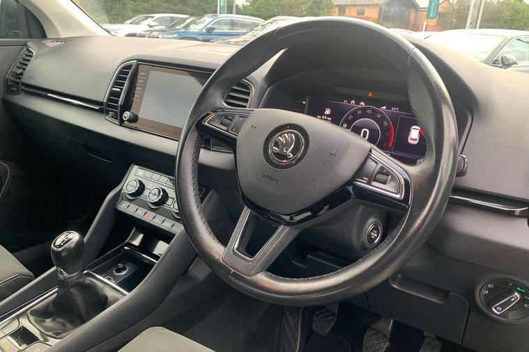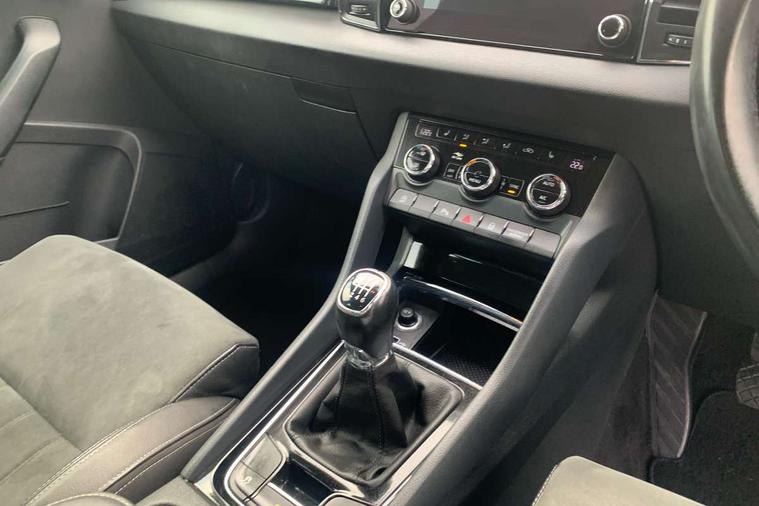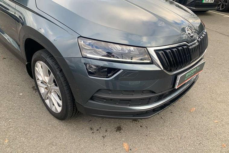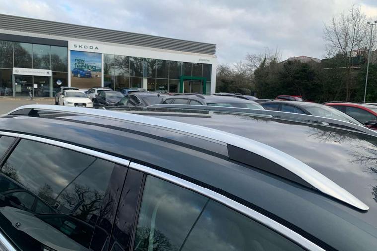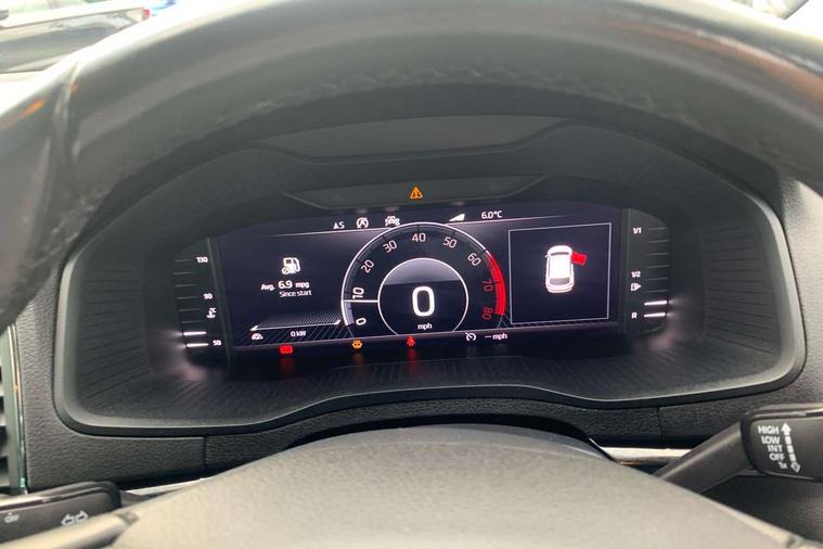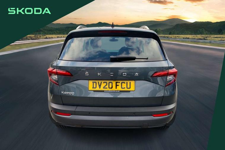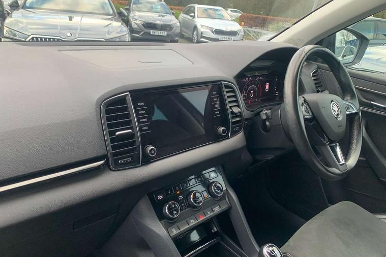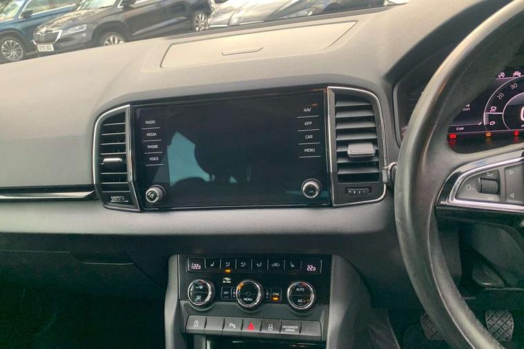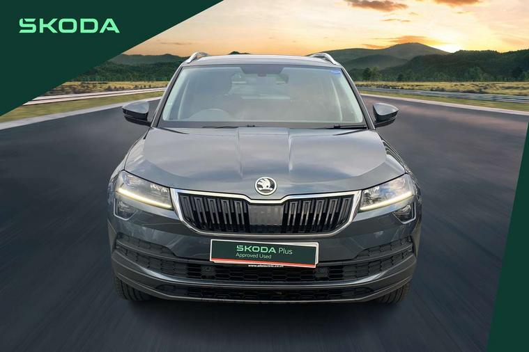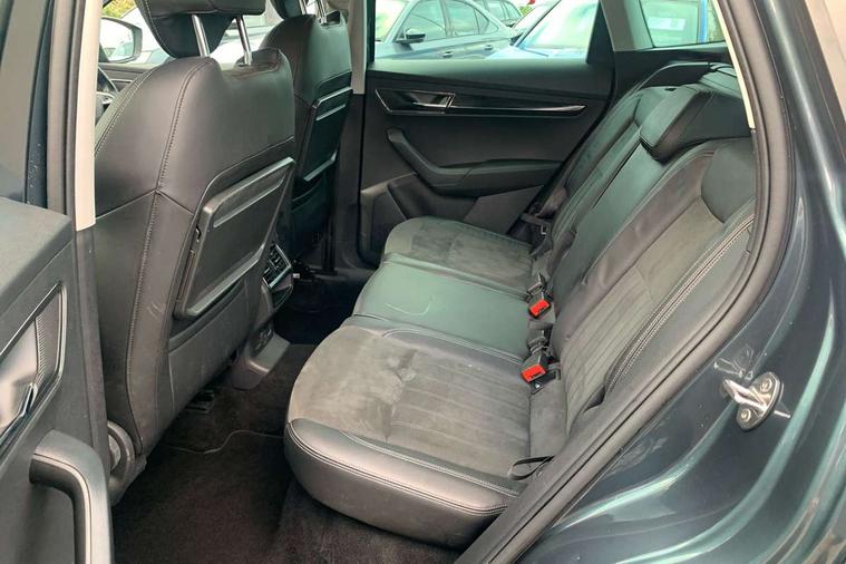 Drive mode selector, Driver alert system, Driver fatigue sensor, Driver profile selection, Multifunction colour trip computer, Outside temperature gauge, Rear view camera, Service interval indicator, Start/stop system with regenerative braking, DAB radio with Bluetooth, SD card slot, USB connection, Acoustic glass, Aero front windscreen wipers with intermittent function, Automatic headlight control system, Black electric window control buttons, Body colour door mirrors and handles, Body coloured bumpers, Electric front and rear windows with child proof lock, Full LED headlights + adaptive front light system + LED daytime running lights and front cornering fog lights, Headlight washers, Heated rear windscreen, LED rear lights with high functionality, Light assistant (coming/leaving home/tunnel light), Privacy glass, Safety reflectors on front doors, Third brake light, 1.5 litre bottle holders in driver and front passenger door panels, 12V socket in boot, 12v socket in front centre armrest with storage compartment and rear air vents, 2 Folding hooks and nets in boot, 2 Front readings lights for driver and passenger, 3 rear height adjustable headrests, 4 foldable roof handles with rear coat hooks, 4 lashing points on luggage floor, Backrest release, Cargo elements in boot, Chrome inner door handles, Dual zone climate control, Folding tables on the front seat backrests, Front head restraints, Front seat and rear pockets, Height adjustable front three point seats belts with tensioners, Height adjustable passenger seat, Height/reach adjust steering wheel, Ice scraper, Illuminated and cooled glovebox, Illuminated luggage compartment, Isofix child seat preparation outer rear, Net programme in boot, Pen holder, Pollen filter, Rear boot cover, Rear reading lights, Rear seats fixed folding and divided 60:40, Removable LED torch in the boot, Retractable parcel shelf attachable to tailgate, Safety vest holder, Storage box in upper central dashboard closed, Storage compartment below the passenger seat, Sunvisors with illuminated vanity mirrors, Textile floor mats, Umbrella under passenger seat, VarioFlex seats with retractable parcel shelf, Chrome roof rails + chrome pack - Kodiaq, Airbags - Front side, head, knee and curtain, Automatic door unlocking in case of crash, Automatic fuel cut off in case of crash, Driver airbag, Electronic parking brake with auto hold function, Emergency rear braking signal, ESC including ABS, MSR, ASR, EDS, HBA, DSR, RBS, MKB and traction control, Front assist radar scanning of the space in front of the car with automatic braking, Hill hold control, Passenger airbag with switch-off function, Pedestrian monitor, Seatbelt reminder signalisation and pretensioner for all seats, Three point seatbelts rear, Two tone horn, Tyre pressure display, Tyre pressure monitor, Alarm with interior monitoring, back up horn and tilt sensor with safe function, Electronic engine immobiliser, Keyless entry and keyless start with safe system, Remote central locking with 2 remote folding keys, Chrome framed air vents, Storage on wheel cover,