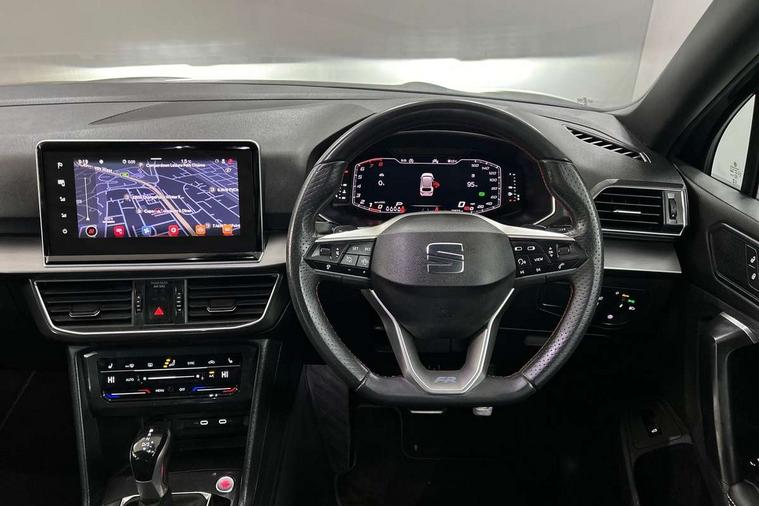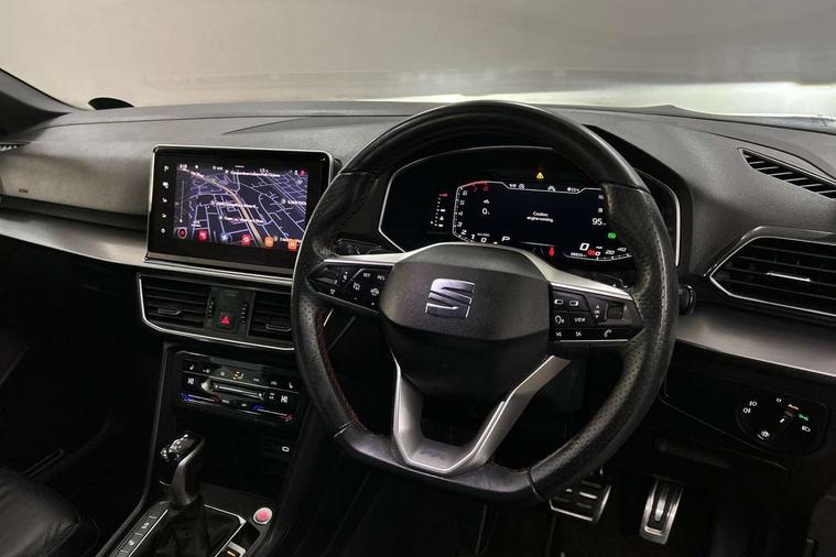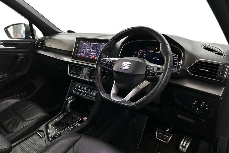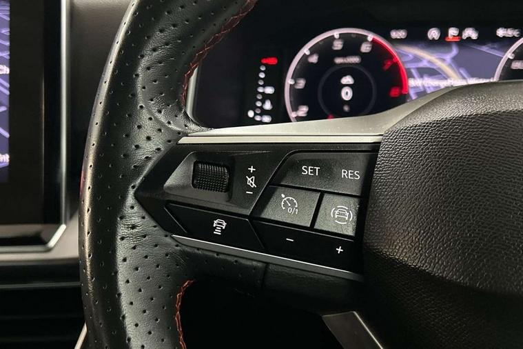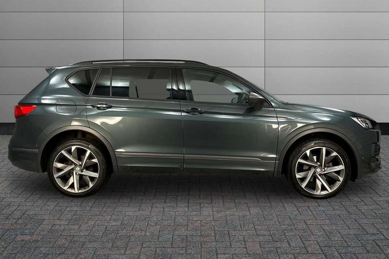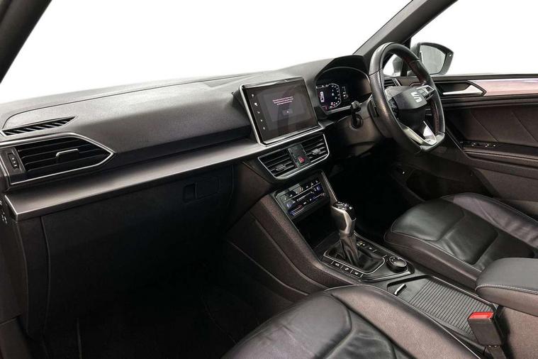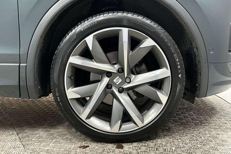 'Lights On' Reminder warning buzzer, 10.25" digital cockpit with multi function display, Adaptive cruise control with speed limiter, Bluetooth audio streaming with handsfree system, Digital clock, e-Call (emergency call), Front assist city emergency braking and pedestrian protection, Full Link Wireless Smartphone Integration with Mirror Link, Apple Car Play, Lane assist, Low fuel warning light, Outside temperature gauge, Power assist steering, RPM counter, Seat connect with safety, service, remote and online, SEAT Drive profile-4 different modes, progressive steering, 4Drive versions with off-road/snow, steering response, throttle response, gear shifts mode, Self parking functionality (includes front and rear parking sensors), Tailgate, Top view camera, Trip computer, Wash water level indicator, Comfort suspension, Sports rear shock absorption, XDS electronic differential lock, Navigation system with 9.2" colour touchscreen with proximity sensor, 3D Map display, DAB, AM/FM Radio, 3 USB (type C), Aux-in, 8 speakers, SD card, Steering wheel mounted audio/telephone controls, USB (type C) cable for Apple and Android compatibility, Auto dimming rear view mirror, Auto headlights with automatic coming and leaving home function, Automatic headlight adjustment, Black door mirrors, Black roof rails, Black window trims, Body coloured side skirts, Coast to coast lighting, Dark tinted rear windows, Dynamic rear indicators, Electric adjustable/heated/folding door mirrors with memory, Electric front/rear windows, Exterior black mouldings, Front grille frame in black, Front halogen fog lights with cornering function, Fuel door linked to central locking, Full LED headlights with LED rear lights, Illuminated aluminium front door sill with trim logo, LED daytime running lights, LED licence plate lighting, LED third brake light, Rain sensing wipers, Rear fog lights, Rear roof spoiler, Rear side wing doors, Rear wash/wipe, Sports bumpers, Twin exhaust pipes, Welcome lighting, 2 individual 3rd row seats, 3 seat bench in 2nd row, 3 zone climate control, Ambient spot lighting and front footwell illumination, Black interior roof, Centre armrest in front with air outlet in rear, Driver and passenger sunvisor with covered and illuminated mirror, Driver's electric lumbar adjustment, Easy fold rear seat system - second and third row, Electric driver's seat with memory, Forward and backward adjustable seats 2nd row, Four cargo rings in the boot, Front bucket seats, Front cupholders, Front integrated headrests, Front passenger seat lumbar adjustment, Front seat back storage pockets, Gear shift indicator, Heated front and outer rear seats, Height adjustable passenger seat, Illuminated boot, Illuminated glovebox, Instrument lighting with brightness control, ISOFIX points in outer 2nd row seats and front passenger seat with top tether anchorage points, Leather gear knob, Leather upholstery, Leather wrapped multifunction steering wheel, Luggage compartment floor with split function, Multicolour ambient lighting in front and rear door panels + LED lights in interior door handles, Rear armrest and easy back seat release mechanism from boot, Rear head restraints, Red stitching on front armrest, Single front passenger seat, Sliding boot cover, Sports front seats, Sports steering wheel, Three 12V sockets, 3x3 point rear seatbelts, ABS, Driver/front passenger airbag, Drivers knee airbag, Electronic parking brake with auto hold, Electronic stability control, Front passenger airbag deactivation, Front side airbags, Hill hold control, Manual rear child locks, Seatbelt reminders for all seats, Tiredness recognition system, Traction control, Two curtain airbags, Tyre pressure monitoring system, Alarm, Keyless enter and go with electric tailgate with virtual pedal, Locking wheel bolts, Power locking and remote control with two foldable keys and opening boot selector, Chrome interior detailing - door and dashboard decorative inserts, 20" 'Cosmo' Grey machined alloys wheels, Tool kit,