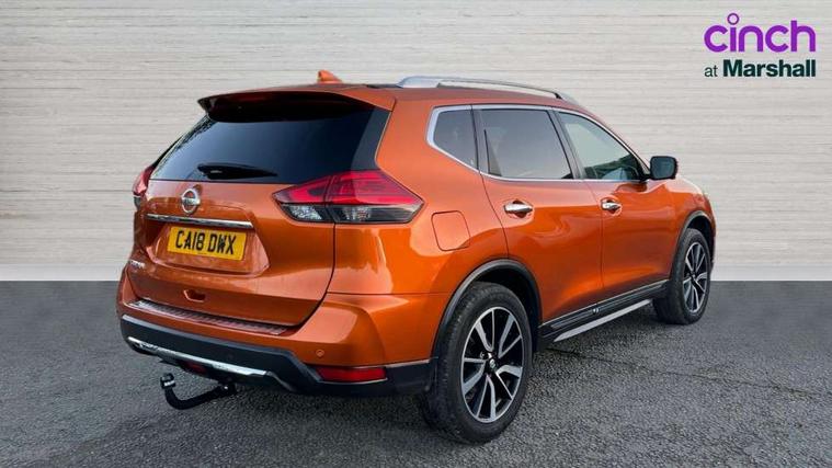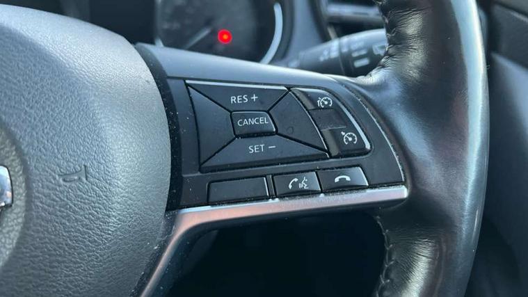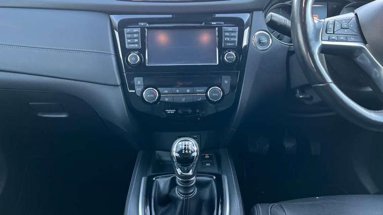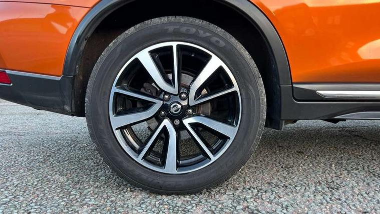 5" TFT driver information centre, Around View Monitor, Attention assist, Automatic tailgate opening, Blind spot monitoring, Bluetooth phone integration system, Cruise control + speed limiter, Engine start button, Front and rear parking sensors, Intelligent parking assist, Lane departure warning system, Moving object detection, Nissan connect sat nav system, PAS, Rear cross traffic alert, Traffic sign recognition, Trip computer, Audio remote control in steering wheel, Bose premium 8 speaker system, DAB Digital radio, Radio/CD, Smartphone apps, USB/aux input socket, Adaptive front lighting system, Auto dimming rear view mirror, Automatic headlights, Automatic rain sensing wipers, Black honeycomb front grille, Body colour door mirrors, Chrome door handles, Chrome side mouldings, Chrome window surround, Electric folding door mirrors, Electric heated door mirrors, Front and rear power windows, Front fog lights, High beam assist, LED daytime running lights, LED Headlights, Panoramic sunroof, Rear privacy glass, Satin silver roof rails, Shark fin roof aerial, 3 rear headrests, 60/40 split rear bench seat, Centre console storage box/armrest, Configurable luggage board system, Dual zone climate control, Electric adjustable front seats including height adjust, Front and rear door pockets with bottle holders, Front cupholders, Heated front seats, Heated rear seats, Heated steering wheel, Height adjustable front headrests, Individual rear reading lights, Isofix child seat attachment, Leather steering wheel and gear knob, Lumbar support, Pollen filter, Rake/reach adjustable steering wheel, Rear armrest, Synthetic leather instrumental panel inserts, Synthetic leather knee pad, 3 point seatbelts on all seats, ABS, Child locks on rear doors, Driver and passenger airbags, EBD + Brake Assist, Electronic parking brake, ESP + traction control, First aid kit, Front and rear curtain airbags, Hill hold assist, Intelligent emergency braking with pedestrian recognition, Seatbelt warning, Tyre pressure monitoring system, Warning triangle, Alarm, Immobiliser, Intelligent Key, Remote central locking, Full size spare wheel,