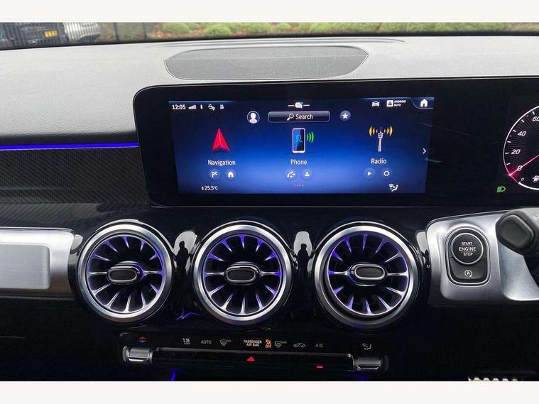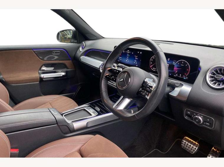 10.25 inch touchscreen central media display, 10.25" Digital instrument cluster display screen, 12 ultrasonic sensors in front and rear bumpers, 180 degree reversing camera with parking guidelines, Additional drive program "OFF-ROAD", Assisted parking: reversing backwards into perpendicular and parallel parking spaces, Attention assist - Monitors steering behaviour and long journey fatigue, Bluetooth connection, Brake pad wear indicator warning light, Car wash mode, Convenience opening and closing, Direct steering, DYNAMIC SELECT with a choice of driving modes (ECO, Comfort, Sport and Individual), ECO start/stop function, Engine start/stop button, Fluid level warning indicator for fuel, oil, coolant and washer fluid, Hard disk navigation, Hey Mercedes Voice activation, Lamp failure indicator, Lane keep assist, MBUX navigation premium, Mercedes me connect including emergency call system, accident recovery, breakdown and maintenance management, Mercedes me remote services, Outside temperature gauge, Owners manual and service booklet in English, Pre-installation of private car share, Preinstallation for parking damage notification, Radio aerial integrated into front and rear windshields, Remote boot closing, Service indicator (ASSYST), Smartphone integration with Apple CarPlay and Android auto, Speed limit assist, Tailgate, Trip computer in multifunction display with current consumption indicator, Ultrasound sensors - positioned in the handle of the tailgate, Wireless charging, Comfort suspension with ride height lowering, Rear axle multi-link, 1 USB-C port in the oddments compartment (Charge + Data transfer), 2 USB-C ports for the rear on the centre armrest (Charge only), 2 USB-C ports under the front centre armrest (Charge + Data transfer), DAB digital radio tuner, MBUX multimedia system, Mercedes Benz sound system (100 W) with 6 speakers, Pre installation for Mercedes Benz Link, Adaptive brake lights, Adaptive high beam assist, AMG front apron with front splitter in the colour of the vehicle with chrome trim element, AMG rear apron with visible tailpipe trim and chrome trim element, AMG specific/dual flow exhaust pipes in chrome (non-functional), Auto dimming rear view mirror, Beltline trim and window line trim strip in high gloss aluminium, Black grained side sill trim with chrome inlay, Body coloured door handles, Electric adjustable and heated door mirrors with integrated LED side indicators, Electric folding door mirrors, Front and rear electric windows, Headlamp assist automatic headlamp activation, Heat insulating dark-tinted glass starting from B-pillar, Heated glass rear windscreen + timer control, High level LED third brake light, Interior mirror with black reading lamps and frameless, LED high performance headlamps with integrated LED daytime running lights, LED tail lamp, Polished aluminium roof rails, Radiator grille as a diamond grille with chrome pins and central Mercedes star, Rain sensor windscreen wipers, Rear fog lamp, Rear side wing doors, Rear wiper, Single louvre in matt grey with chrome inserts and black highlights, Two visible tailpipe trim elements exhaust, Ultrasonic sensors - positioned in the front and rear bumpers, Wheel arch liners in the colour of the vehicle, 12V socket in the oddments compartment, 3 seat bench in 2nd row, 3 twin spoke flattened multifunction steering wheel in nappa leather - horizontal twin spoke in high gloss black, vertical twin spoke in silver chrome, 4 way adjustable lumbar support, 40:20:40 split folding rear seats, Air vents with silver chrome surrounds, AMG floor mats, AMG sports pedals with brushed stainless steel surfaces and black rubber studs, Automatic child seat recognition sensor, Black roof lining, Door handles with chrome inserts, Fluorescent jacket, Front and rear headrests, Front centre armrest with stowage, Galvanised steering wheel gearshift paddles in silver chrome, Handle recess lighting, Heated front seats, Height adjustable head restraints, Height/reach adjustable steering column, Interior lighting - 64 colour Ambient lighting, Luggage net on driver/front passenger seat backrest, Single front passenger seat, Sports seats, Stowage compartment with retractable cover, Sun visors with illuminated vanity mirrors, THERMATIC automatic climate control, Third row of seats for two people on rear seat, Twin front cup holders, Two outer rear seat isofix and top tether child seat fixing points, Easy pack tailgate, Interior lighting with light and sight pack - GLB, Seat comfort package - GLB, 3 rear 3 point seatbelts, Active bonnet pedestrain safety measure which detects an impact and raises bonnet by 65mm, Active brake assist includes forward collision warning system with autonomous braking, Adaptive brake assist with hold function and hill start assist, Airbags - kneebag for driver, Anti-lock braking system (ABS) with brake assist, Black seatbelts, Bonnet with power domes, Childproof locks manually operated for rear doors and electrically operated for rear power windows, Crash responsive emergency lighting, Curve dynamic assist, Downhill speed regulation (DSR), Driver and front passenger head and sidebags, Driver and front passenger windowbags, Dual stage driver and front passenger airbags, Electric parking brake, Electronic stability programme with acceleration skid control, Front and rear seatbelt reminder, Front brake callipers with Mercedes Benz lettering, Front passenger seat occupancy sensor, Perforated front brake discs, Tyre pressure monitoring system, Warning triangle and first aid kit, Guard 360 degree vehicle protection - Anti theft alarm system, tow away protection with visual, acoustic warning and alarm, Interior monitoring system, Keyless Go Access and drive authorisation system, KEYLESS-GO starting function, Remote central locking and crash sensor with emergency opening function, Thatcham category 1 alarm system with immobiliser and interior protection, Vehicle key with KEYLESS GO functionality, Carbon structure 