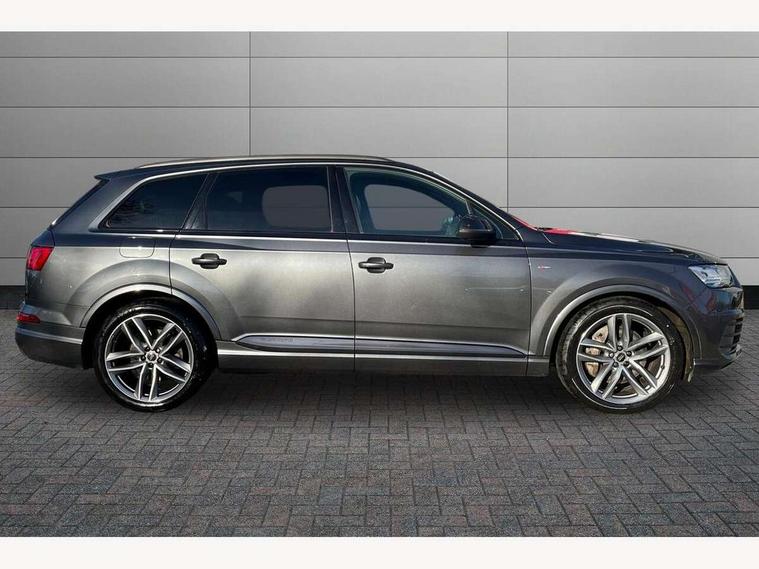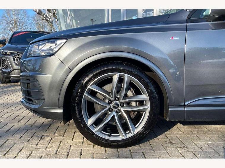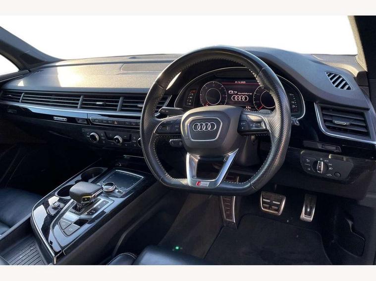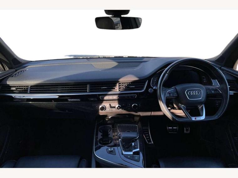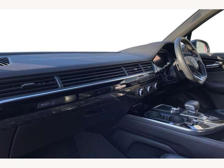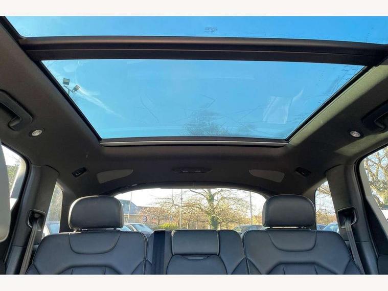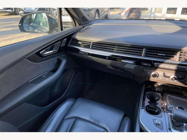 8.3" central fold-down colour display with high-resolution graphics, Audi connect safety and service (e-call), Audi drive select, Audi phone box with wireless charging, Audi smartphone interface, Audi virtual cockpit - 12.3" high-resolution LCD display with fully customisable instrument cluster, Colour driver's information system display, MMI - Multi Media Interface control system, MMI navigation plus with MMI touch, Mobile phone preparation with bluetooth interface, Power tailgate, Service interval indicator, Servotronic speed related PAS, Speed limiter, Start/Stop system with energy recuperation, Voice control system, Adaptive air sports suspension, 2 USB ports, 2x SD card slot, Audi music interface, Aux-in socket, DAB digital radio module, DVD System, MMI radio plus, Acoustic windscreen, Auto dimming rear view mirror, Body coloured bumpers, Electric front+rear windows, Electric panoramic glass sunroof, Electric/heated/folding door mirrors with memory, Green tinted heat insulating glass, Headlight washers, High beam assist, LED daytime running lights, Loading sill protector in stainless steel, Platinum grey front lip spoiler, Privacy glass, Rain and light sensors, Rear wiper, Roof spoiler, 2 cupholders in front centre console, 35/30/35 split fold 2nd row seats, Electric 3rd row 50/50 split/fold, Front ashtray and cigar lighter, Front centre comfort armrest with storage + cupholders, Front head restraints, Front/rear floor mats, Gearshift paddles, ISOFIX child seat mounting for 6 passenger seats with front passenger airbag deactivation includes top tether, Leather gear knob, Luggage compartment cover, Rear centre armrest with 2 cupholders, Rear headrests, Stainless steel pedals, Sunvisors with illuminated vanity mirrors, Interior light pack - Q7, 3 point seatbelts on all seats, ABS+Electronic Brake force Distribution, Curtain airbags, Driver and passenger airbags, EDL + ASR, Electrically operated child locks on rear doors, Electromechanical parking brake, Electronic stability control, Front side airbags, Hill descent control, Hill hold assist, Seatbelt warning, Traction control, Tyre pressure loss indicator, Warning triangle and first aid kit, Anti theft alarm, Anti-theft wheel bolts, Immobiliser, Keyless Go access/ignition system, Remote central locking, Chrome door inserts, Tool kit, Tyre repair kit,