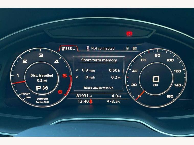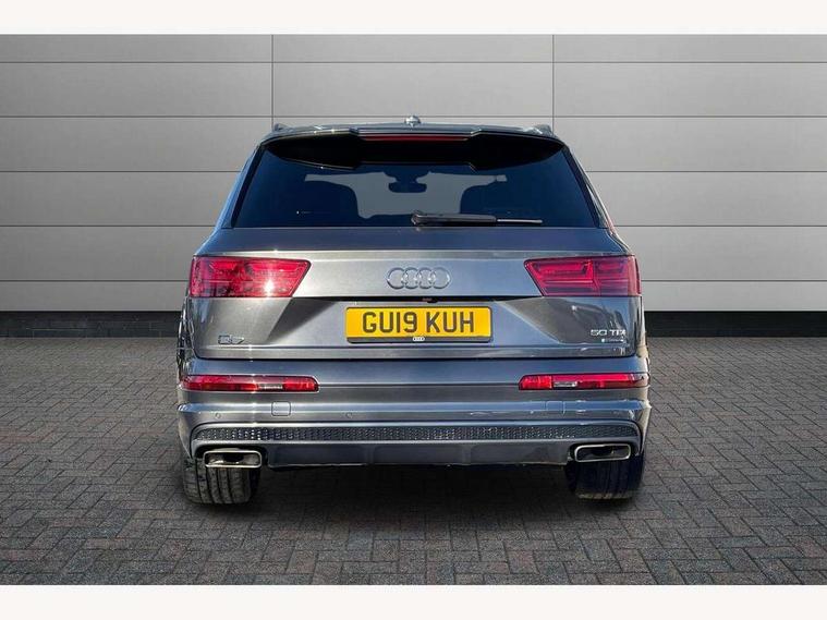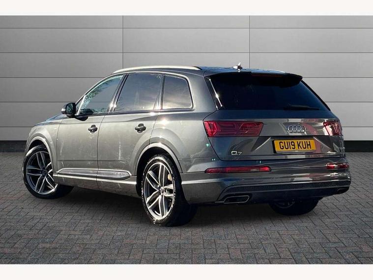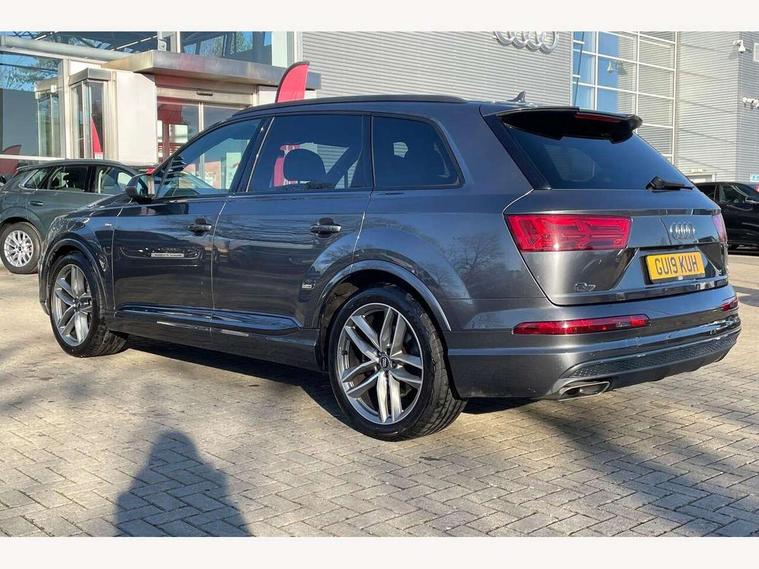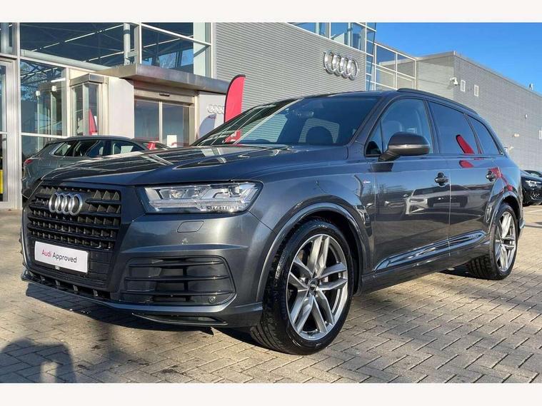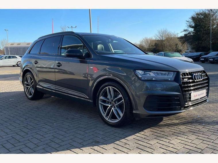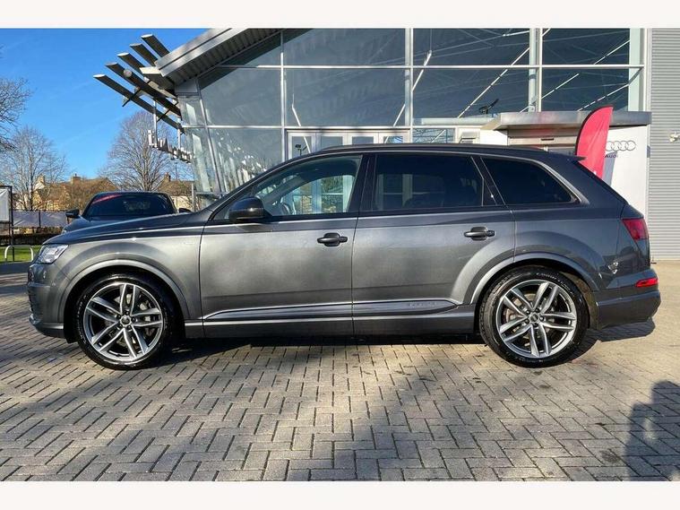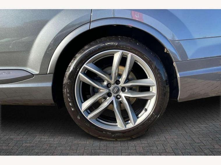 8.3" central fold-down colour display with high-resolution graphics, Audi connect safety and service (e-call), Audi drive select, Audi phone box with wireless charging, Audi smartphone interface, Audi virtual cockpit - 12.3" high-resolution LCD display with fully customisable instrument cluster, Colour driver's information system display, MMI - Multi Media Interface control system, MMI navigation plus with MMI touch, Mobile phone preparation with bluetooth interface, Power tailgate, Service interval indicator, Servotronic speed related PAS, Speed limiter, Start/Stop system with energy recuperation, Voice control system, Adaptive air sports suspension, 2 USB ports, 2x SD card slot, Audi music interface, Aux-in socket, DAB digital radio module, DVD System, MMI radio plus, Acoustic windscreen, Auto dimming rear view mirror, Body coloured bumpers, Electric front+rear windows, Electric panoramic glass sunroof, Electric/heated/folding door mirrors with memory, Green tinted heat insulating glass, Headlight washers, High beam assist, LED daytime running lights, Loading sill protector in stainless steel, Platinum grey front lip spoiler, Privacy glass, Rain and light sensors, Rear wiper, Roof spoiler, 2 cupholders in front centre console, 35/30/35 split fold 2nd row seats, Electric 3rd row 50/50 split/fold, Front ashtray and cigar lighter, Front centre comfort armrest with storage + cupholders, Front head restraints, Front/rear floor mats, Gearshift paddles, ISOFIX child seat mounting for 6 passenger seats with front passenger airbag deactivation includes top tether, Leather gear knob, Luggage compartment cover, Rear centre armrest with 2 cupholders, Rear headrests, Stainless steel pedals, Sunvisors with illuminated vanity mirrors, Interior light pack - Q7, 3 point seatbelts on all seats, ABS+Electronic Brake force Distribution, Curtain airbags, Driver and passenger airbags, EDL + ASR, Electrically operated child locks on rear doors, Electromechanical parking brake, Electronic stability control, Front side airbags, Hill descent control, Hill hold assist, Seatbelt warning, Traction control, Tyre pressure loss indicator, Warning triangle and first aid kit, Anti theft alarm, Anti-theft wheel bolts, Immobiliser, Keyless Go access/ignition system, Remote central locking, Chrome door inserts, Tool kit, Tyre repair kit,