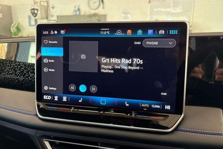 Adaptive cruise control (ACC), Advanced driver attention and drowsiness monitor, Bluetooth mobile phone interface, Car2X technology, Digital Cockpit Pro - 10.25" high resolution dash display screen with customisable menus and information, Dynamic road sign display, E-Sim card for online connectivity, eCall emergency call service, Front Assist - Autonomous emergency braking with pedestrian and cyclist monitoring, Lane change system, Side assist, Rear traffic alert and Exit warning system, Lane keeping system Lane Assist, Multifunction front facing camera, Oncoming vehicle braking when turning including swerve support, Park assistance plus with front and rear parking sensors, Power assisted steering with speed sensitive, Start/stop system with regenerative braking, Warning signal and warning light for front and rear seatbelts not fastened, Wireless App-Connect, Adaptive chassis control DCC pro includes driving mode selection, Charging cable Mode 3 Type 2 / 3 (16A), Front shock absorption, Front wheel drive, Rear shock absorption, Digital radio reception (DAB), Diversity antenna for FM reception, Air intake with Chrome trim, Ambient lighting with logo projection, Auto dimming interior rear view mirror, Automatic headlight control system, Body coloured door handles, Chrome moldings on the side windows, Coming/leaving home lighting function, Heat insulating glass in side and rear windows, Heated rear window, Heated windscreen washer jets, High level 3rd brake light, Illuminated door handle recesses, Illuminated lightline between headlamps, Laminated safety glass windshield, Rain sensor windscreen wipers, Rear fog light on one side, reversing light on both sides, Rear side wing doors, Rear wiper, 12V outlet in center console rear and in luggage compartment, 12V socket in centre console, 3 bench rear seats in 2nd row, Air care climatronic 3 zone air conditioning system with rear air conditioning control panel, Black roof lining, Brushed stainless steel pedals, Carpet mats, front and rear, Centre console with illuminated storage compartment with sliding cover and two drinks holders, Chrome elements on the mirror switch and power window switches and door pulls, Door and side trim panel with leatherette insert, Door sill protectors, Front centre armrest, Interior ambient lighting with 30 colour options, ISOFIX anchors for child seats on outer rear seats and front passenger seat compatible with i-Size, Mechanical rear seat release, Power adjustable lumbar support in front, Rear bench seat, split folding, longitudinally movable and folding with load-through hatch and centre armrest, Single front passenger seat, Soul headlining, Sports comfort seats in front, Sun visors with illuminated vanity mirrors, Three rear head restraints, Variable luggage compartment floor, 3 point seat belt for centre rear seats, 3 Point seat belts in front with pretensioners, 3 point seatbelts in outer rear with ECE label, Driver and front passenger airbag with front passenger airbag deactivation, Electronic parking brake with auto hold, Front and rear curtain airbags, Front and rear side airbags, Front centre airbag, Front disc brakes, Manual child proof rear door locks, Rear disc brakes, Two tone horn, Warning triangle, Anti theft wheel bolts, Decorative inserts, Interior door handle in matte chrome, Soul instrument panel, Tool kit for tyre mobility set, Tyre mobility kit including compressor and sealing foam,