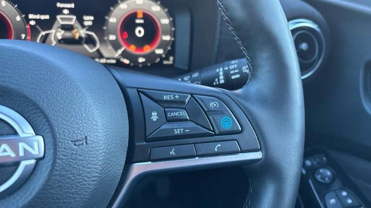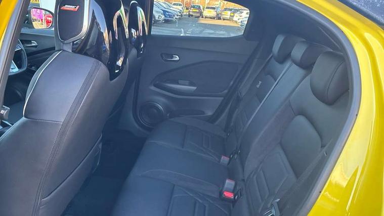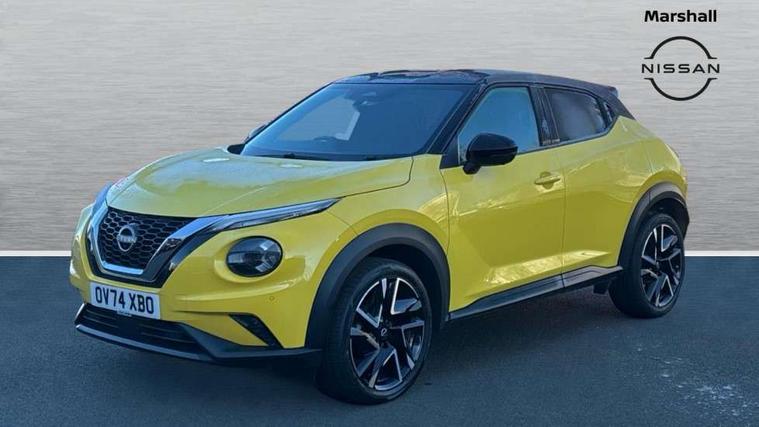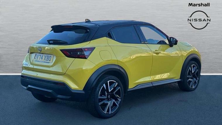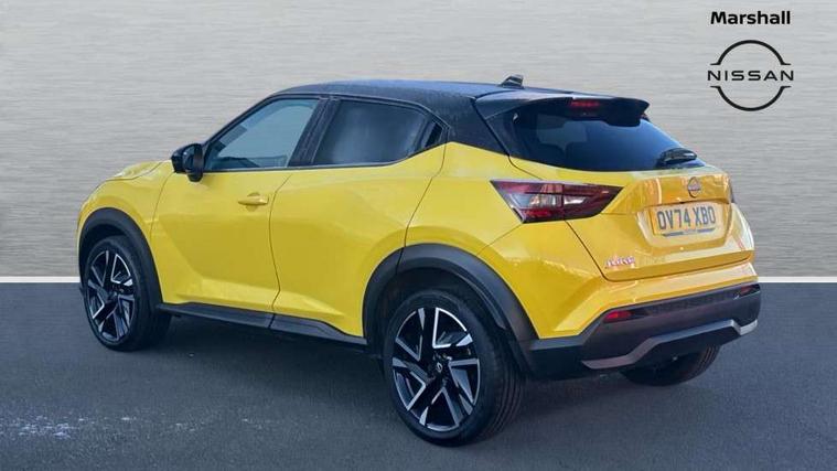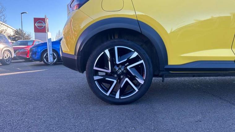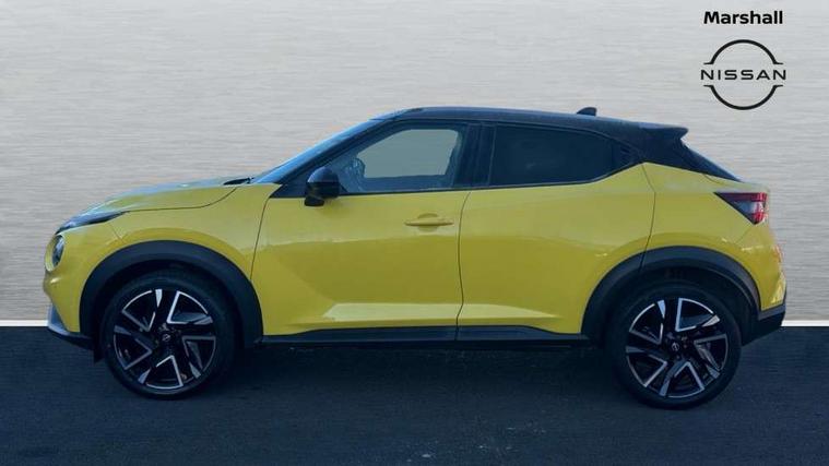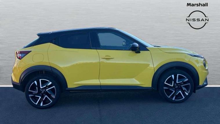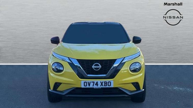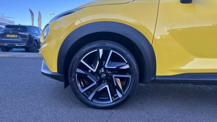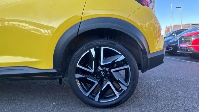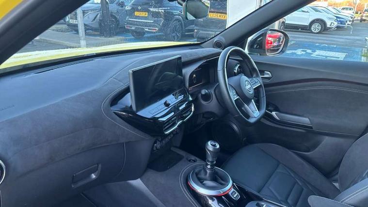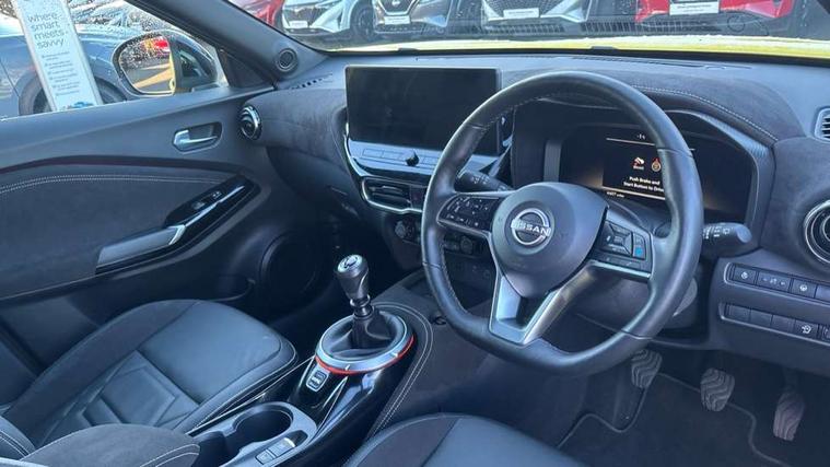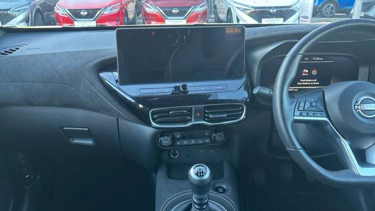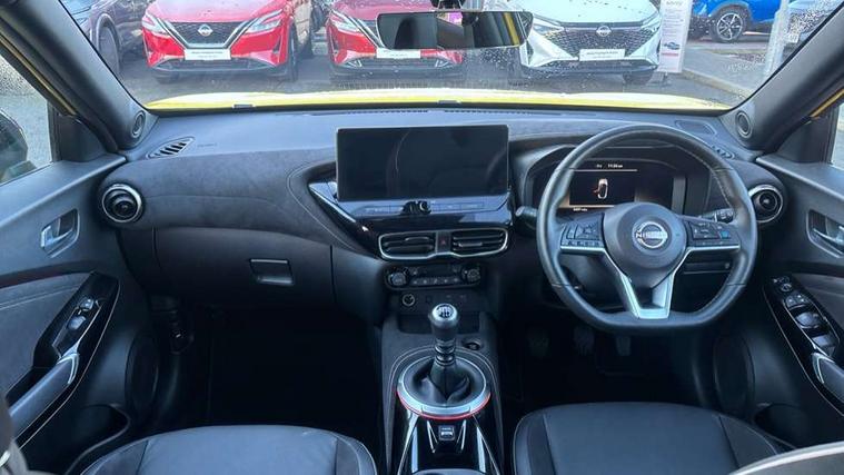 12.3" full colour TFT screen combimeter, Drive modes select (Eco, normal and sport), Emergency and breakdown call, Front parking sensor, Idle start/stop system, Intelligent driver alert system, Intelligent lane intervention, Lane departure warning system, Nissan connect 12.3" touch screen entertainment system, Nissan connect nav with TomTom traffic, Nissan connect services, Outside temperature sensor, Power Steering, Rear parking sensor, Stop/start button, Traffic sign recognition, Trip computer, Voice recognition, WiFi connectivity, Wireless Apple CarPlay and Google Android auto, Wireless Smartphone charger, 10 Bose speakers 6 speakers and 2 headrest speakers for driver/passenger seats, 2 X Rear console USB port, Bluetooth system, USB, Aux-in and 12V socket, Bose personal sound stage control, DAB Digital radio, Auto dimming frameless rear view mirror, Automatic hazard signal with emergency stop signal, Body colour door handles, Electrically adjustable door mirrors with integrated indicators, Follow me home headlights, Front and rear electric window with one touch driver window, Heated and auto folding door mirrors, High beam assist, LED 3rd brake light, LED daytime running lights, LED front fog lights, LED headlamps, LED rear fog lamp, LED rear lamps, One touch passenger window, Rain sensor windscreen wipers, Rear privacy glass, Rear side wing doors, Rear wiper, Roof spoiler, Shark fin roof antenna in solid Black, Three blink turn signal, 3 height adjustable rear headrests, 3 seat bench in 2nd row, 60/40 split folding rear seat, Automatic climate control, Card holder on driver sunvisor, Door ambient lighting, Driver seat back pocket, Driver side rear coat hanger, Driver/passenger sunvisors and vanity mirrors, Front and rear cabin lights, Front armrest, Front door pockets with bottle holders, Front head restraints, Front/rear passenger grab handles, Gear console ambient circle lighting, Height adjustable driver's seat, Internal chrome door handles, Leather gearshift knob, Luggage board, Luggage space lighting, Monoform sporty seats, Multifunction steering wheel, Passenger seat back pocket, Rear door bottle holders, Single front passenger seat, Smooth synthetic leather steering wheel, Synthetic leather kneepad, Telescopic steering wheel adjustment, Two cupholders in front centre console, Two rear isofix child seat anchorage points with top tether, Welcome light and console tray ambient lighting, Advanced safety shield pack - Juke Manual, Heat pack with height adjustable passenger seats - Juke, Interior personalisation pack - Juke, Satin grey exterior personalisation pack - Juke, ABS with EBD and brake assist, Active ride control, Active Trace Control, Driver and passenger airbags, Driver and passenger side airbags, Electric handbrake with auto hold function, Electronic Stability Programme (ESP), Front and rear curtain airbags, Height adjustable seatbelts, Hill start assist, Intelligent emergency braking with pedestrian and cyclist recognition, Rear door child safety locks, Seatbelt reminder for driver/front passenger and rear seats, Three 3 point rear seatbelts, Traction control, Tyre pressure monitoring system, VDC Dynamic Vehicle Control, Alarm, Immobiliser, Intelligent key and start push button with walk away lock and approach unlock functions, Remote central locking, 19" Alloy wheels with deep 3D effect, Tyre puncture repair kit,
