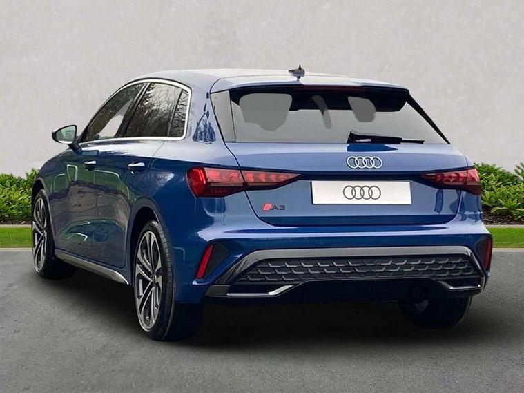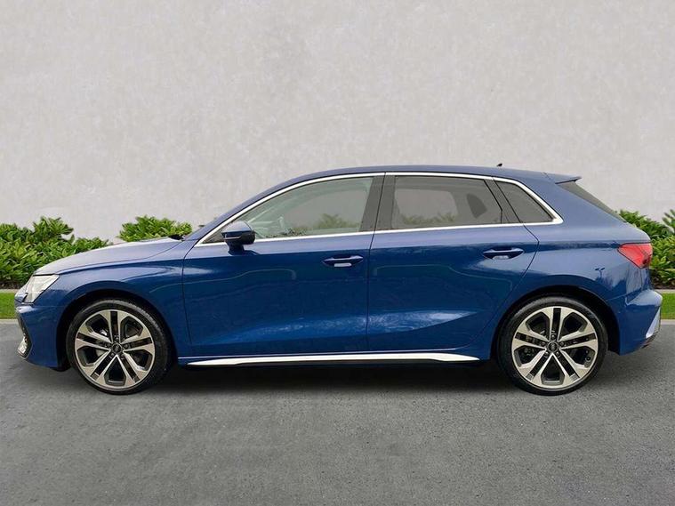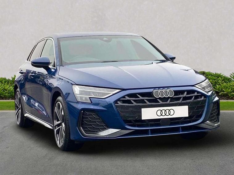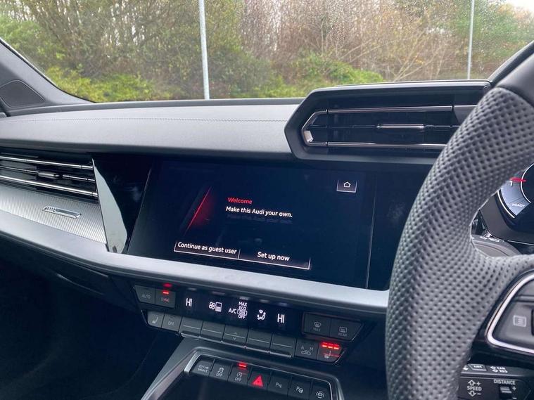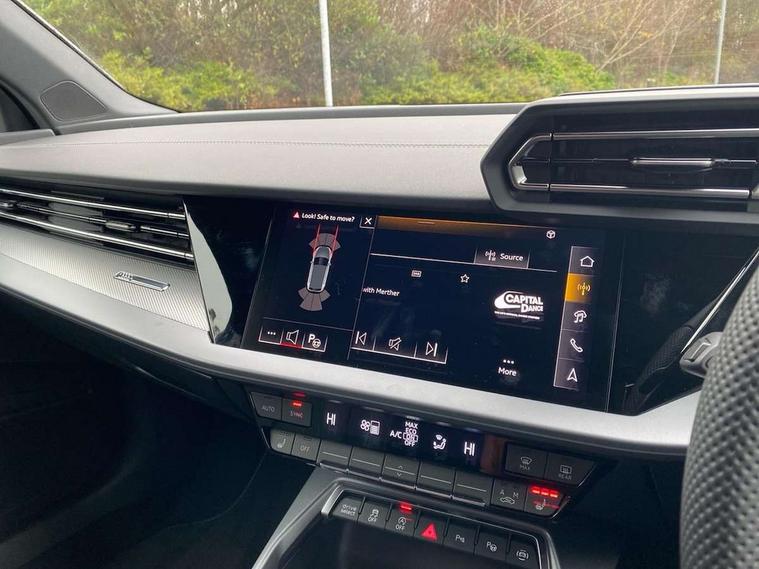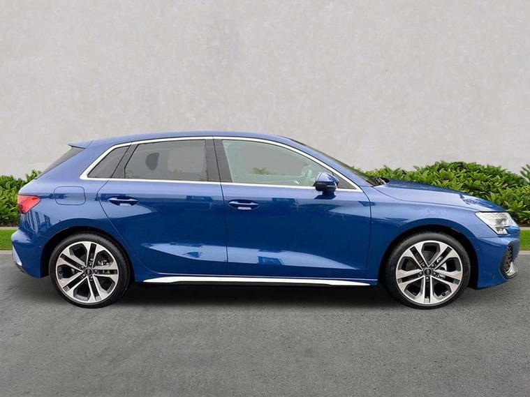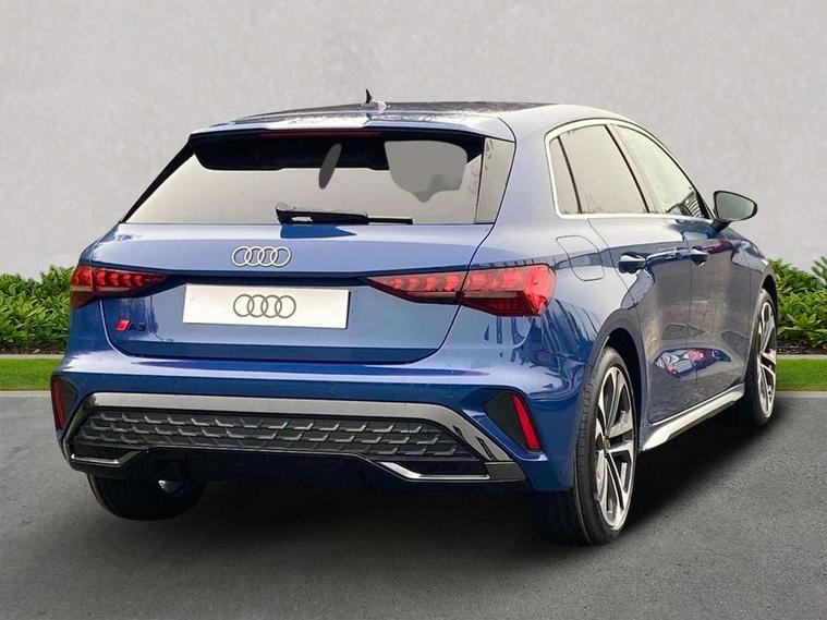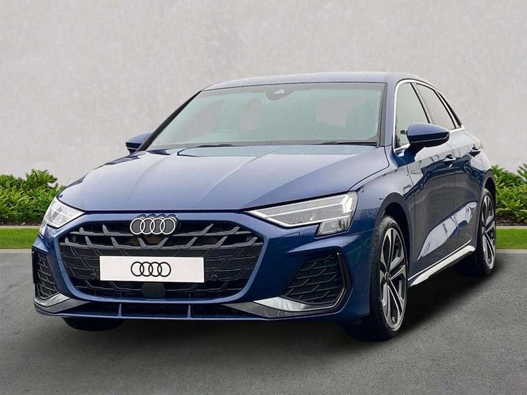 Adaptive cruise control (ACC), Adjustable speed limiter, Audi drive select (Auto, Comfort, Dynamic, Efficiency and Individual), Audi smartphone interface with app store includes wireless Apple carplay, Android auto and Amazon alexa integration, Audi virtual cockpit plus - 12.3" full HD resolution dynamic digital instrument cluster, Automatic start/stop system with recuperation, Bluetooth interface, Camera based traffic sign recognition, Collision avoidance assistant, Driver attention and fatigue detection with driver monitoring camera, e-Call (emergency call), Electromechanical power speed sensitive steering, Emergency assist, Intersection assist, Lane departure warning system, MMI Navigation Plus with high resolution 10.1" colour touch screen display, Park Assist with parking system Plus, Reversing camera, Service indicator, Trip computer, Voice control system with natural language interaction, 3 pin 10 amp domestic charging cable, CCS socket for DC charging, Charging cable for public charging, mode 3 (type 2), 32 A, Compact charging system, Industrial connector CEE 32 A, 230 V, length 1.6 m, Standard suspension, Type 2 socket for AC charging, Audi Phonebox light with wireless charging, Audi sound system - 10 loudspeakers including centre loudspeaker and subwoofer, DAB Digital radio, USB ports with charging function in the rear, Acoustic glass windscreen, All weather light, Aluminium window trim, Auto dimming frameless rear view mirror, Automatic dynamic range control, Body colour exterior mirrors, Chrome exhaust tailpipes, Dipped beam, main beam, position light and turning light, Electrically adjustable/heated/folding/auto dimming door mirrors with integrated LED indications + kerb view function for passenger side, Exterior model badging, Front and rear side air inlets in grained matt black with dark liquid chrome frame, Front electric windows, Front radiator grill in high gloss dark chrome, Heat insulating glass windscreen, Illuminated door sills with aluminium inserts at the front with S logo, Intersection light, LED 3rd brake light, LED brake lights, LED daytime running x3, LED headlights with LED rear lights and dynamic rear indicators, LED rear number plate lights, LED reverse light, LED tail lights, Light and rain sensors, Manoeuvring light, Motorway light, Privacy glass - dark tinted rear window, rear door and side windows, Rear diffuser and grill in grained matt black with inlay in dark liquid chrome, Rear electric windows, Rear side wing doors, Rear wiper, S line bumpers, S roof spoiler, Side S line emblems on front wings, Side sill trim in dark liquid chrome, Static Cornering lights, 12V socket and storage compartment in front centre console, 3 seat bench in 2nd row, 3 spoke flat bottomed leather multifunction sport steering wheel with gear shift paddles, 3-zone deluxe automatic air conditioning, 4 way electrically adjustable lumbar support for driver and front passenger, 40/20/40 split folding rear seat bench, Black cloth headlining, Black front and rear floor mats, Convenience auxiliary air conditioning, Front and rear centre armrest in artificial leather with contrasting stitching on armrests and instrument panel, Front and rear headrests, Heated front seats, Height and reach adjustable steering wheel, i-Size child seat mounting on the front passenger side and outer rear seats, i-Size and top tether on the outer rear seats, Manual boot compartment lid, Manually adjustable front seats, Rear centre armrest with cupholder, S badging on the steering wheel, Seat side bolsters, Single front passenger seat, Stainless steel pedals and front footrest in black, Twin leather upholstery with front sports seats S embossed logo, Aluminium interior elements pack - A3, Multi-coloured LED interior lighting package with Multi-coloured contour lighting of instrument panel - A3, 3x3 point rear seat belts, Acoustic vehicle alerting system, Driver and front passenger airbag with passenger airbag deactivation, Electronic Stabilisation Control (ESC) including ABS, ASR and EDL, First aid kit with warning triangle and 2 safety vests, Front side airbags with head airbags and interaction airbag, Hill hold assist, Pre-sense front with pedestrian and cyclist detection, Seatbelt monitoring, Tyre pressure loss indicator, Anti theft alarm, Anti-theft wheel bolts, Electronically operated child locks, Immobiliser, Black dashboard, Inlay in dark aluminium spectrum, Tyre repair kit,