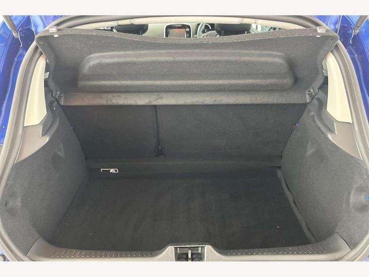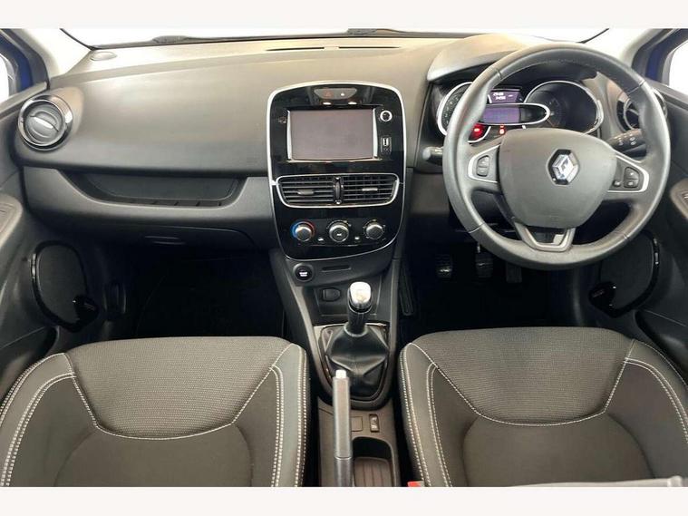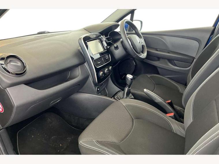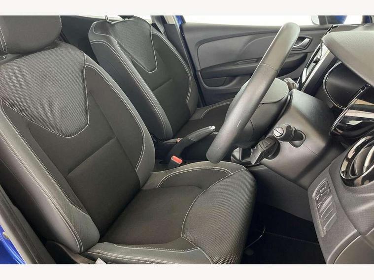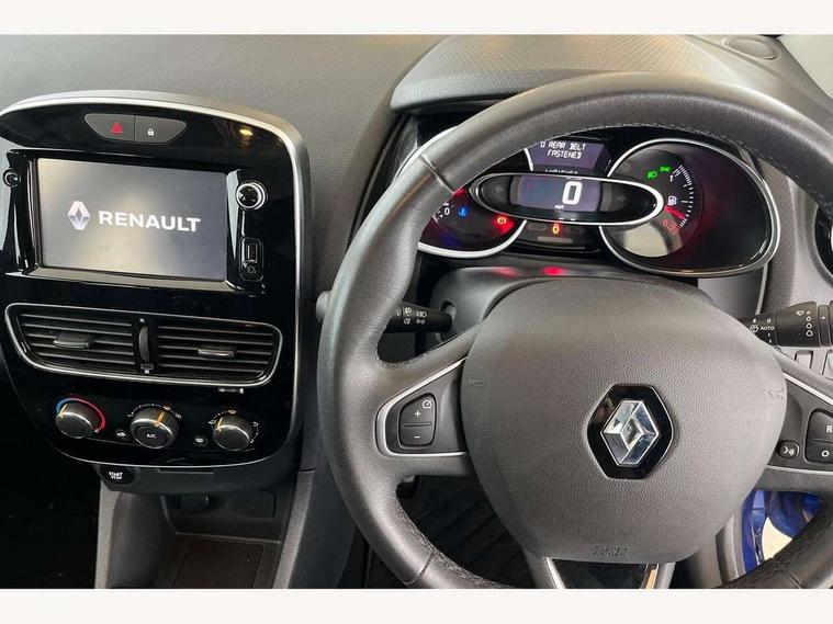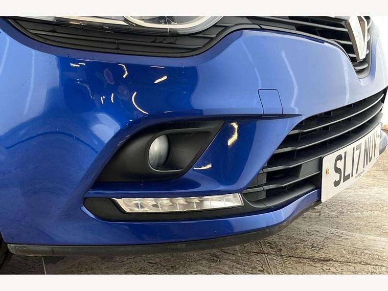 Cruise control + speed limiter, Push button starter, Renault MediaNav with 7" touch screen and Navteq Nav 'n' Go Satellite Navigation, Smartphone cradle, Trip computer, Variable PAS, 4x20W Arkamys radio with bluetooth handsfree and USB, Aux-in socket, Automatic headlights + automatic windscreen wipers, Black door protector with chrome inserts, Black headlamp surrounds, Body colour door handles, Body coloured bumpers, Body coloured rear spoiler, Chrome tailgate decoration, Electric adjustable door mirrors, Electric front windows + one touch + anti-pinch, Front fog lamps, Heated door mirrors, LED daytime running lights, Rear wiper, Variable front intermittent wipers, 12V Accessory socket, 3 rear height adjustable headrests, 60/40 split rear seats, Air recirculation control, Chrome gear knob insert, Chrome interior door handles, Design cloth upholstery, Driver's seat height adjustment, Front cupholders, Front door storage bin, Glovebox, Height adjustable front headrests, Height/reach adjust steering wheel, Isofix system on outer rear seats, Leather steering wheel, Multi function steering wheel, Pollen filter, System for Restraint and Protection SRP-front seats, 3 point seatbelts on all rear seats, ABS+EBD+Brake assist, Driver and passenger front and side airbag deactivation, Driver/Front Passenger airbags, Driver/front passenger side airbags, ESP + Traction control + Understeer control, Front side airbags(head+thorax), Height adjustable driver's seatbelt, Hill start assist, Seatbelt warning, Tyre pressure monitoring system, Anti-drill door locks, Child lock control of rear doors and windows, Deadlocking system, Hands free Renault card, Locking fuel filler cap, RAID (Renault Anti-Intruder Device) with automatic door locking, Remote central locking, Thatcham Cat 2 engine immobiliser, Dark carbon soft touch dashboard, Gloss black air vent surround, Gloss black centre console, Gloss black dashboard inserts,