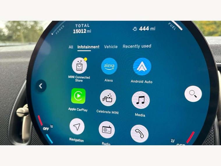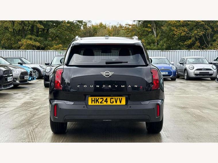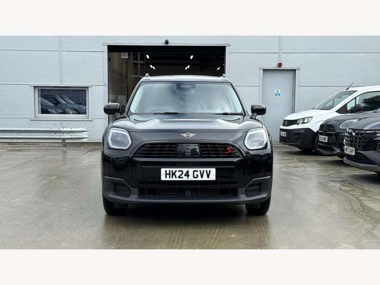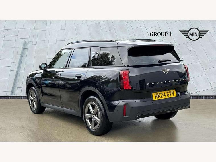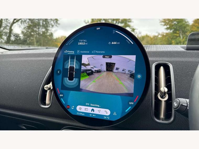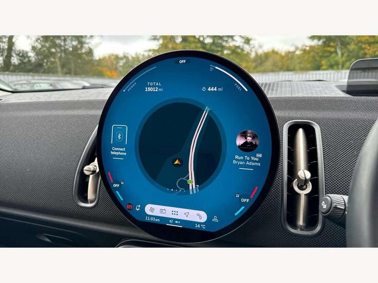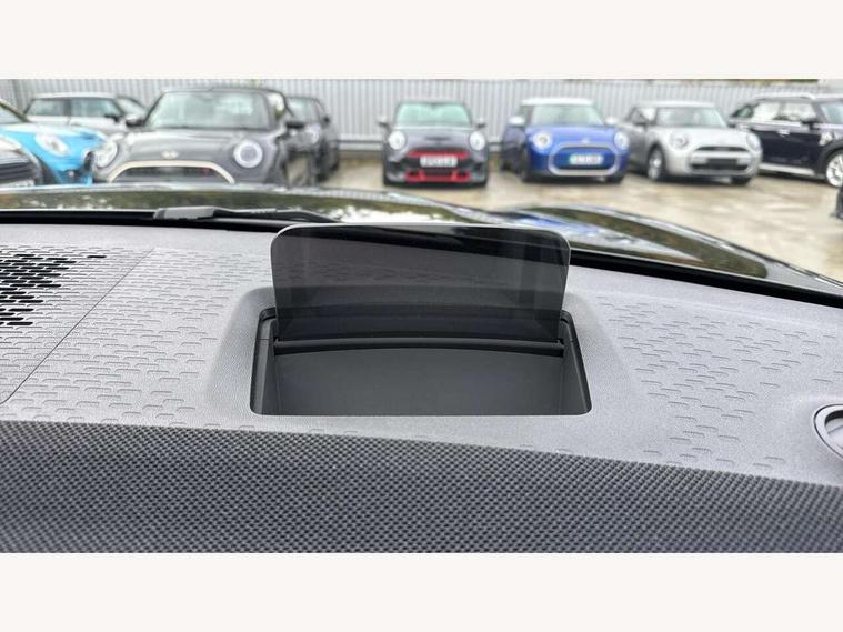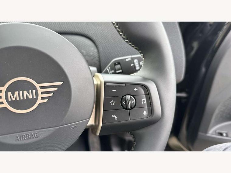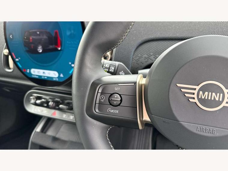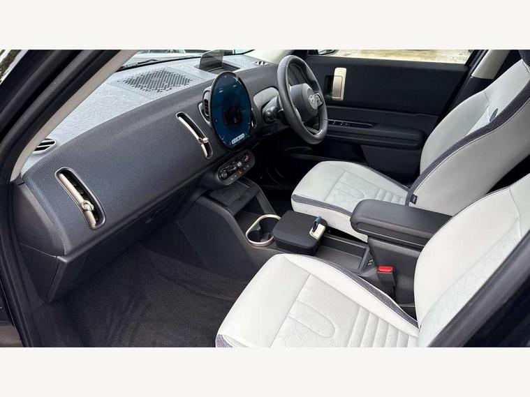 Bluetooth connection, Circular OLED Screen, Compatible mobile phone bluetooth with audio streaming, Cruise Control (DCC), Digital dashboard display, Driving Assistant Plus Preparation, E-call, Electro-mechanical speed dependant steering assistance, MINI Experience Modes, MINI Head up display, Mini navigation system, MINI TeleServices, Parking assistant in camera and ultrasound based assistance system, rear view camera, parking aid and distance control, Auto transmission with Paddles, Larger capacity fuel tank, 6 speakers, DAB Digital radio, Auto tailgate, Electric adjustable heated door mirrors, Front and rear electric windows, Heated rear window, High beam assistant, Interior rear-view mirror with automatic anti-dazzle function, LED daytime running lights, LED headlights with extended contents including Adaptable light signatures, LED rear lights, LED third brake light, Rain sensor with auto headlights, Rear side wing doors, Rear window wiper, Roof rails, 3 Seat sliding rear bench in 2nd row, 60/40 split rear bench seat, Auto air conditioning, Driver and front passenger seat heating, Floor mats, Front armrest, Front headrests, Heated steering wheel, Height and length steering column adjustment, Light headliner, Luggage compartment separating net, Rear headrests, Seat adjustment for rear seats, Single front passenger seat, Sport Vescin Steering Wheel, Sunvisors with vanity mirrors, Vescin/Cloth upholstery, Wireless charging tray, Interior and exterior mirror package - Mini Countryman, 3x3 point rear seat belts, 6 Airbags - front, side, head and seat belt tensioners, ABS, DSC - Dynamic Stability Control, Electronic handbrake, Electronic Stability Programme (ESP), Front ISOFIX (iSize), Hill hold assist, Hill start assist, Manual rear child locks, Traction control, Tyre pressure monitoring system, Warning triangle, Alarm system with tilt sensor, monitoring doors, bonnet interior and tailgate, Auto drive away locking, Comfort access system, Deadlocking function, Electronic vehicle immobiliser, Locking wheel bolts, Remote control locking, Start/stop toggle with keyless go, Black/Blue dashboard knit, MINI Mobility Kit,