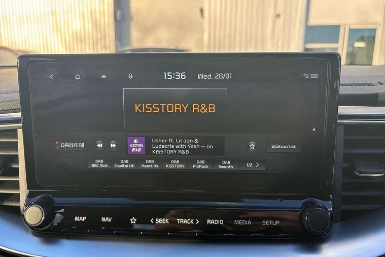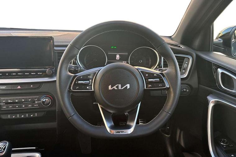 10.25" touchscreen satellite navigation, 4.2" supervision colour cluster display, Apple CarPlay and Android Auto, Bluetooth with Voice Recognition & Music Streaming, Cruise control, Drive mode select (Eco, Normal, Sport), Driver attention warning, Emergency call service, Forward Collision-Avoidance Assist (FCA) 1.0 - City/Pedestrian/Cyclist, Intelligent speed limit assist, Kia connected services, Lane Follow Assist 1.0, Lane keep assist, Motor driven power steering, Rear parking sensor, Reversing camera with dynamic guide lines, Speed limiter, Tailgate, Trip computer, 7 speakers, Front USB port for media connection, Auto dimming rear view mirror, Automatic defog system, Automatic headlights, Black side sill mouldings with body coloured inserts, Black wheel arch trim, Body colour bumpers, Body colour rear roof spoiler, Chrome window surround, Electric front/rear windows with one touch, Electrically folding, adjustable and heated door mirrors with integrated LED indicator lights, Front and rear chrome skid plates, Gloss black door mirrors, GT-Line exterior styling, Heated rear window, High gloss black roof rails, High glossy black and dark chrome radiator grille, LED daytime running lights, LED front fog lights, LED Headlights, LED High-mounted Brake Light, LED rear lights (Honeycomb design with sequential indicators), Privacy glass - Rear windows and tailgate, Rain sensing front wipers, Rear fog lights, Rear side wing doors, Rear wiper, 3 seat bench in 2nd row, 60/40 split folding rear seat, All-round height adjustable headrests, Alloy pedals, Automatic air conditioning, Centre console with storage box, Cloth / Artificial leather upholstery, Driver + front passenger electric lumbar support, Driver's seat height adjuster, Front and luggage area 12V power sockets, Front and rear door storage, Front cabin light with sunglasses case, Front passenger 1 x USB-C charging port, Front Passenger Seat Height Adjuster, GT-Line Interior Styling, Heated front seats, Heated steering wheel, Illuminated driver and front passenger sunvisors with vanity mirror, ISOFIX Child seat top tethers and anchor fixings outer rear seats, Leather steering wheel, Luggage area parcel shelf, Luggage hooks, Manual steering wheel adjustment, Rear and Luggage compartment light, Rear centre armrest with cupholders, Rear passenger 1 x USB-C charging port, Single front passenger seat, All round 3-point seatbelts, Anti-Lock braking system with emergency stop signalling, Electronic parking brake with auto hold function, Electronic stability control (ESC) and vehicle stability management (VSM), Front passenger airbag cut off switch, Front, side and curtain airbags, Height adjustable front seatbelts, Hill start assist control (HAC), Rear door child safety locks, Seatbelt reminder warning, Customisable automatic door locking, Customisable automatic door unlocking, Locking wheel nuts, Smart key with motion sensor, Thatcham category 2 security alarm and immobiliser, Visible vehicle identification number, 18" GT-Line alloy wheels, Tyre mobility kit,