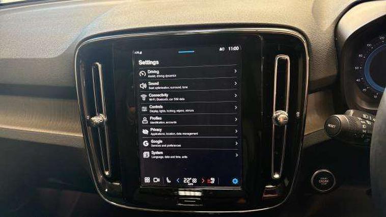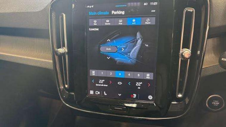 12.3" Progressive Driver Display, 360 degree surround view parking camera with side proximity sensors, 9" centre console portrait touch screen, Adjustable steering wheel force, Android auto (Wired), Apple carplay (wired), Bluetooth handsfree system, Driver alert control, Driver assistance (pilot assist and adaptive cruise control), Driver awareness - Blind spot information system with steer assist, cross traffic alert with autobrake and rear collision warning and mitigation, E-call, Front park assist, Google automotive services - Enabled entertainment apps, navigation with google maps, voice recognition with google assistant, Hands free power tailgate, Intelligent speed assistance, Lane keeping aid, Oncoming Lane Mitigation, Rear park assist, Speed sensitive steering, Volvo cars services with app - Driving journal, emergency and breakdown call, engine remote start, remote door locking/unlocking and vehicle dashboard, Wireless/Inductive Mobile Phone Charging, Automatic transmission with start/stop and manual change functions, Dynamic chassis, DAB Digital radio, Premium Sound by Harman Kardon, Dolby Pro Logic II Surround Sound, Dirac Unison, 12 speakers/600W and subwoofer, Steering wheel mounted remote controls, Active bending pixel LED headlights with adaptive shadow technology, Active high beam incorporating daytime running lights, Adaptive brake lights with high level LED brake lights, Auto dimming feature for exterior door mirrors, Auto dimming interior mirror, Automatic headlamp levelling, Dark tinted windows - rear side windows and rear screen, Front aluminium tread plates, Front and rear electric windows, Headlight cleaning system, High gloss black front and rear skid plate, High gloss black front bumper deco, High gloss black mesh front grille with high gloss black surround, High gloss black window trim, Home safe and approach lighting, Integrated roof rails in high gloss black, LED front fog lights with cornering function, Power glass tilt and slide panoramic sunroof with sun curtain, Puddle lights, Rain sensor with automatic windscreen wiper activation, Rear side wing doors, Rear wiper, Roof antenna, Roof spoiler, Visible VIN plate, 12V socket in front tunnel console and luggage compartment, 2-Zone electronic climate control with CleanZone air quality system and pollen filter, 3 seat bench in 2nd row, 3 Spoke tailored steering wheel with chrome trim, 60/40 versatile split folding rear seat, Centre console cupholders and storage, Flexible load floor and grocery bag holder, Floor mats, Front cabin courtesy lights, Front door pocket, front cupholder, ambient front door, rear reading, rear courtesy, instrument panel and tailgate lighting, Front footwell illumination, Front headrests, Front reading lights, Front seat cushion extensions, Front side step illumination (under door), Glovebox bag hook, Heated front seats, Height/reach adjustable steering column, High gloss centre tunnel deco, Illuminated glovebox, Illuminated luggage compartment, Illuminated vanity mirrors + ticket holder, Integrated waste bin, Isofix attachments on outer rear seats, Load cover, Load protection net, Multi directional lumbar support for driver and passenger seat, Power driver seat with memory + exterior mirrors memory, Power folding rear headrests, Power passenger seat, Rear armrest with cupholders, Single front passenger seat, Underfloor cargo storage, Climate pack without heated front seats - XC40, 3x3 point rear seatbelts, City safety with steering support with Pedestrian + cyclist + front collision warning with full auto brake and rear auto brake, Driver and passenger airbags, Drivers knee airbag, Electronic parking brake with auto hold, First aid kit, Front and outer rear seatbelt reminder and pretensioners, Front seats SIPS airbags, Hill descent control, Hill start assist, Inflatable curtain, Passenger airbag cut-off device, Power child locks on rear doors, Road sign information display, Run off Road Protection, SIPS (Side Impact Protection System), Slippery road and hazard light alert, Stability and Traction Control with Spin control, Engine Drag Control and Corner Traction Control, Tyre pressure monitoring system, Vehicle deceleration control with Anti-lock Brake System, Electronic Brake Distribution and Emergency Brake Assist, Warning triangle, WHIPS whiplash protection system - front, 2 x Key integrated remote control central locking including with deadlocking system and auto open/close windows and sunroof, Anti-theft alarm including immobiliser/volume sensor + level sensor, Keyless drive includes keyless entry and keyless start, Locking wheel nuts,