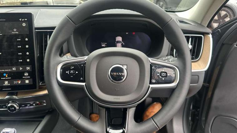 11.2" centre console touch screen, 12.3" Progressive Driver Display, 360 degree surround view parking camera with side proximity sensors, Adaptive cruise control, Adjustable steering wheel force, Android auto (Wired), Apple carplay (wired), Bluetooth handsfree system, Driver alert control with lane keeping aid, Emergency services call system, Front and rear park assist, Google Automotive Services, Intelligent speed assistance, Oncoming Lane Mitigation, PAS, Power operated tailgate with handsfree opening and closing, Service interval indicator, Speed limiter, Speed sensitive steering, Trip computer, Volvo cars services with app, Volvo on call with App, Wireless/Inductive Mobile Phone Charging, 8 speed automatic transmission with start/stop + manual change functions, DAB Digital radio, Premium Sound by Harman Kardon, dirac unison, dolby pro logic II surround sound, 13 speakers/600W output and fresh air subwoofer, Steering wheel remote infotainment controls, Adaptive brake lights with high level LED brake lights, Auto dimming interior + exterior mirrors, Automatic headlight levelling system, Automatic LED Headlights + Active high beam incorporating daytime running lights, Electric adjustable/heated/auto power folding door mirrors, Electric front+rear windows, Front aluminium tread plates, Heated front windscreen, High gloss black door mirrors and window surround, High gloss black front and rear bumper decoratives, High gloss black mesh front grille with high gloss black surround, Home safe and approach lighting, Integrated roof rails in high gloss black, Puddle lights, Rain sensor with automatic windscreen wiper activation, Rear side wing doors, Rear wiper, Roof antenna, Roof spoiler, Tinted windscreen, Visible VIN plate, 12V socket in front tunnel console and luggage compartment, 3 seat bench in 2nd row, 3 Spoke tailored steering wheel with chrome trim, 4 Zone electronic climate control, A-pillar parking ticket holder, Air purifier particulate matter (PM) 2.5 filter, B Pillar ventilation, Bright metal luggage scuff plate, Centre console cupholders and storage, Charcoal floor mats, Front and rear courtesy lights, Front and rear door pocket illumination, Front cupholder illumination, Front footwell illumination, Front reading lights, Front seat cushion extensions, Glovebox compartment with illumination, Head restraints for all seats, Heated front seats, Heated steering wheel, Height/reach adjustable steering column, Illuminated luggage compartment, Illuminated vanity mirrors + ticket holder, Inner door release handle illumination, ISOFIX attachment on outer rear seats, Load cover, Load protection net, Multi directional lumbar support, Power driver seat with memory + exterior mirrors memory, Power height adjustable passenger seat, Power passenger seat with memory, Quilted nordico leather upholstery, Rear armrest with cupholder, Rear footwell and front and rear side step illumination, Rear reading lights, Rear seat concealed storage, Single front passenger seat, Tailgate illumination and ambient door lighting, Underfloor stowage compartment, Versatile split folding rear seat - 60/40, Driver assist pack without Adaptive cruise control - XC60, 5 three point seatbelts, City safety with steering support with Pedestrian + cyclist + front collision warning with full auto brake and rear auto brake, Drivers knee airbag, Dual stage driver/passenger airbags, Electronic parking brake with auto hold, First aid kit, Front seats SIPS airbags, Hill descent control - Off-road drive mode, Hill start assist, IC (Inflatable Curtains) - Full Length, Passenger airbag cut-off device, Power child locks on rear doors, Road sign information display, Run off Road Mitigation, Run off Road Protection, Seatbelt reminder and pretensioners, SIPS (Side Impact Protection System), Slippery road and hazard light alert, Stability and Traction Control with Spin control, Engine Drag Control and Corner Traction Control, Tyre pressure monitoring system, Vehicle deceleration control with Anti-lock Brake System, Electronic Brake Distribution and Emergency Brake Assist, Warning triangle, WHIPS whiplash protection system - front, Anti-theft alarm including immobiliser/volume sensor + level sensor, Key integrated remote control central locking + fuel flap with deadlocking system and auto open/close power windows, Keyless Drive (includes Keyless Entry and Keyless Start), Locking wheel nuts, Private locking for tailgate, Summer tyres,
