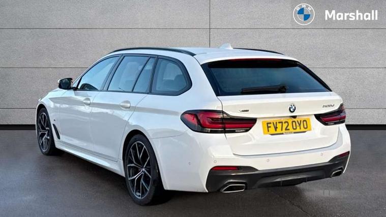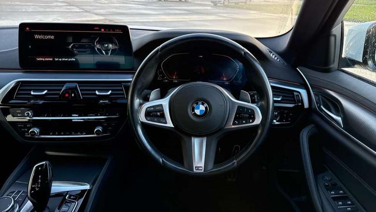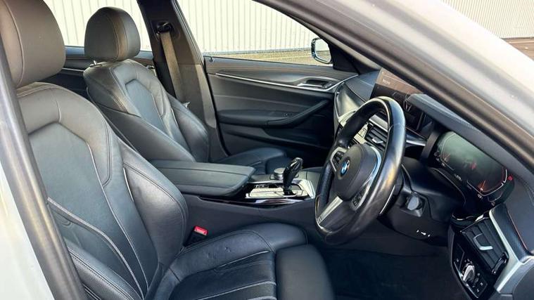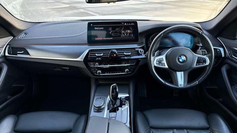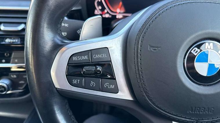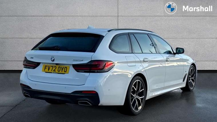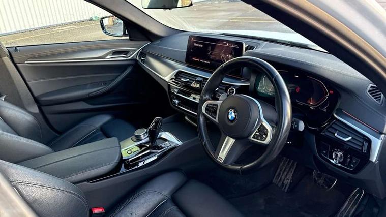 32GB hard disc drive (HDD) memory, Active Guard, Bluetooth connection, BMW ConnectedDrive online services, BMW Live Cockpit Professional sat nav system with 12.3" instrument display and high resolution control display, BMW Teleservices, Brake pad wear indicator, Cruise control with brake assist, Driving experience switch, eCall emergency call system, Electric boot lid - electrically opening/closing rear tailgate, Electric Power Steering (EPS) with Servotronic, iDrive controller with shortcut buttons, Intelligent emergency call, Multifunctional instrument panel, Oil sensor for level and grade, On board computer inc. average speed, fuel consumption, liquid crystal Info display, journey computer, outside temperature display, personal profile, On-board diagnosis - OBD, Powered by Operating System 7.0, Service interval indicator, Speed limiting function, Stop/start button, 48V Mild hybrid technology, Diesel particulate filter, Drive performance control with ECO PRO comfort + sport mode, Engine cover with twin turbo designation, M sport suspension, Steptronic sport transmission with gearshift paddle switches on steering wheel, DAB Digital radio, Favourite buttons, Acoustic glazing, All round anti-corrosion system, Automatic windscreen wipers and automatic headlight, Automatically dimming rear view mirror, BMW Individual high gloss shadow line includes exterior mirror frame, window frame surround, B pillar finish, air breather in high gloss black, Body colour door handles, Body coloured bumpers, Door handle illumination, Dynamic brake lights with LED technology, Electric front and rear windows with fingertip open/close + anti-trap facility and comfort closing function, Electrically adjustable and heated exterior mirrors includes integrated direction indicators and automatic parking function, Folding exterior side mirror with auto- dimming, Follow me home headlight function, Heated windscreen washer jets, High gloss black active air stream kidney grille, High gloss shadow line roof rails, Independent opening for tailgate window, LED daytime running lights, LED Headlights, LED third brake light, M designation on front side panels, left and right in chrome, M Sport exterior styling, Preparation for high beam assistant, Rear side wing doors, Rear wiper, Trapezoidal visible exhaust tailpipes, xDrive designation on tailgate, 12V power socket in front and rear, 3 seat bench in 2nd row, 40/20/40 split folding rear seats with additional mechanism in luggage compartment, Anthracite headlining, Armrest - front and rear integrated door trim, centre console includes storage compartment, rear centre includes 2 cupholders, Child seat ISOFIX attachment with rear outer seats includes top tether, Cup holders (2 front and 2 rear), Front and rear footwell lights, Front reading lights, Height and length adjustable steering column and activation via lateral lever on the steering column, Lockable glove compartment with light, M door sill finishers, M specific pedals, M specific velour floor mats, Multifunction controls for leather steering wheel, Rear headrests, Retractable luggage compartment dividing net, Single front passenger seat, Three spoke sport M leather steering wheel, Ambient lighting pack - 5 Series, Connected package professional - 5 Series, M Aerodynamic pack - 5 Series, Airbags - driver/front passenger, rear and side, first and second row seats head airbags, front passenger seat airbag deactivation, Anti-lock braking system (ABS), Automatic Stability Control (ASC), Brake assist function, Brake energy regeneration, Cornering brake control (CBC), Crash sensor activating central locking release, hazard warning lights, fuel cut off and interior lighting, Deformation zones - front and rear with door reinforcements and bumpers up to 2.5 mph, DSC - Dynamic Stability Control, Dynamic brake control, Dynamic Traction Control - DTC, Electromechanical parking brake with automatic drive away release and auto hold function, Electronic brake force distribution, Engine drag torque control, Front and rear brake discs with interior ventilation, Front head restraints with anti-whiplash, Hill start assist, Mechanical child proof lock on rear doors, Passive protection for pedestrians, Rear door child safety locks, Side impact protection, Three point seat belts for all four seats, Two tone horn, Tyre pressure indicator, Warning triangle and first aid kit, Alarm system (Thatcham 1) with remote control and electronic engine immobiliser, Locking wheel bolts,