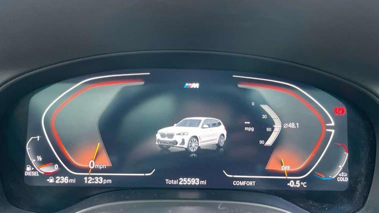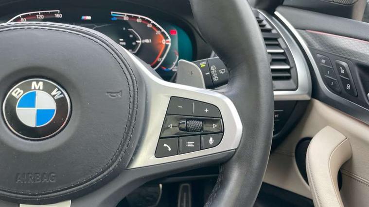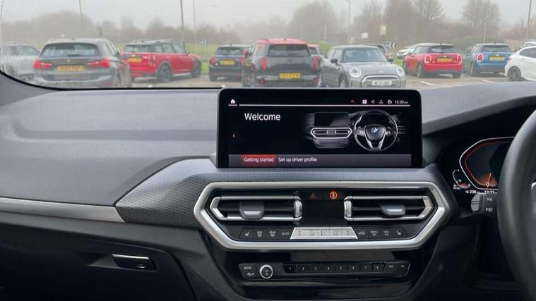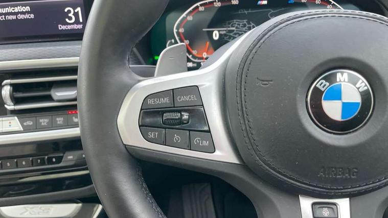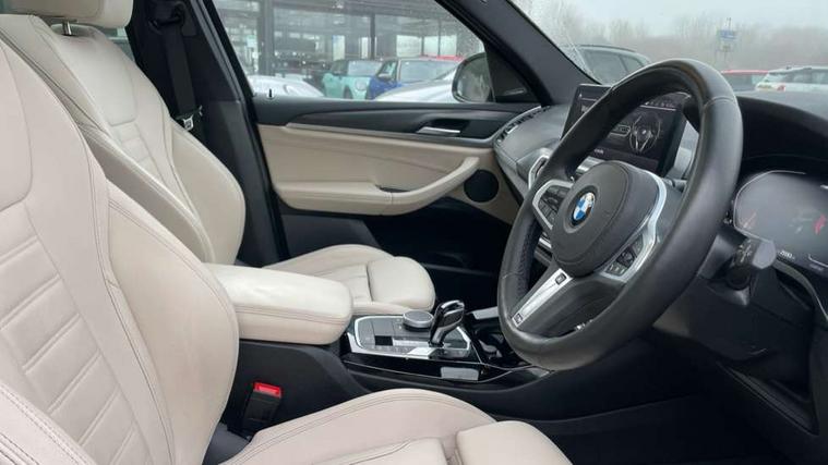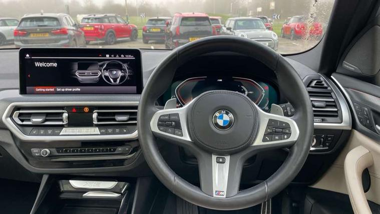 Active Guard, Attentiveness assist, BMW Live Cockpit Professional nav system including 12.3" instrument display + 12.3 high resolution control display, BMW Online services, BMW Teleservices, Brake pad wear indicator in front and rear, Check Control warning system for monitoring of lights and door/luggage compartment open warning, Condition based service - BMW service history, electronic service booklet, integrated owner's handbook, Connected drive services, Cruise control with brake function + speed limiter, Electric boot lid, Front/rear Parking distance control, iDrive touch controller with 8 favourite buttons, Instrument cluster with speedometer with mph readout, tachometer, fuel gauge and oil temperature gauge, Lights on warning by audio warning signal when ignition is switched off, Oil sensor for level and grade, warning by check control system, On board computer - average speed+fuel consumption, service interval, clock/date, odometer/trip meter, outside temperature display and ice warning, Optimum shift indicator, Personal Profile - automatic lock when driving away selectable, Run flat indicator, Stop/start system, Variable sports power steering with drive performance control Sport+ mode, Automatic transmission with gearshift paddles, Diesel particulate filter, Incorrect fuelling protection, Larger capacity fuel tank, M sport suspension, Multi-link rear suspension, Performance Control, BMW professional radio/CD/MP3, DAB tuner, Acoustic glazing, Automatic windscreen wipers and automatic headlight, Black finish on B pillars, Body colour door handles, Body colour electric adjust heated aspherical door mirrors, Body colour roof mouldings, Body coloured bumpers, Direction indicator, side repeaters, integrated in exterior mirrors, Dynamic brake lights, Exhaust tailpipes - dual, round, split left and right with chrome finisher, Fingertip control / anti-trap function on electric window, Folding wing mirrors with auto dimming, Follow me home headlights, Front and rear bumper system with replaceable deformation elements, Front and rear electric windows, Gloss chrome tailpipes finishers, Green tinted heat insulating glass, Heated windscreen washer jets, High beam assistant, High gloss black shadow line roof rails, High gloss shadowline exterior trim in decorative moulding side frame/recess cover/guide rail/B, C pillars/mirror frame and triangle with mirror base, High level 3rd brake light incorporating LED Technology, Interior rear view electrochromatic mirror with automatic anti dazzle function, LED tail lights, Lightweight engineering, M aerodynamic bodystyling, M Sport entry door sill strips, Model designation, Rain sensor, Rear side wing doors, Rear wing door, Rear wiper, Shark fin antenna, Side exterior M designation badges, Visible VIN plate, Welcome lighting, Windscreen wipers with adjustable interval, 12V power point in luggage area, 12V power socket in front centre console, 2 x USB Type C ports for charging and data transmission (front centre console) and 2 x USB Type C ports for charging (rear centre console), 3 rear headrests, 3 seat bench in 2nd row, 3 zone automatic air conditioning, 4 lashing points to secure luggage, 40:20:40 split folding rear seat with loading system, Ambient lighting, Anthracite headlining, Automatic interior light when door is opened/ignition switched off or via remote key, Floor mats in velour, Foldable storage floor with compartment, Four grab handles integrated in roof lining, Front and rear bottle holders integrated into door trim storage compartments, Front and rear side armrests integrated into door trim, Front centre armrest with storage compartment, Front footwell lights, Front head restraints, Front passenger seat, Front sports seats, Front/rear courtesy lights with soft on/off dimming, Front/rear reading lights, Heated front seats, Isofix rear child seat preparation, Leather gear knob, Lockable glove compartment, Luggage area underfloor compartment, Luggage compartment lighting, M sport leather steering wheel, Multifunction steering wheel, Parcel shelf removeable and storable under boot floor, Reach and rake adjustable steering column, Rear centre armrest with 2 cupholders, Removable / retractable luggage cover, Slope adjustable rear seats, Storage compartment in rear centre console and front/rear door trims, Sun visors with vanity mirrors and ticket pocket, Toolkit located in luggage compartment, Two front cupholders with removable oddments tray/lid, Connected pro pack - X3, Driving assistant pack - X3, ADB - Automatic Differential Brake, Anti-lock braking system (ABS) with brake assist, Automatic Stability Control (ASC), Battery safety cut-off, BMW emergency call, Brake drying, Brake energy regeneration, Braking pre-tensioning, Child locks on rear doors, Cornering brake control (CBC), Crash Sensor - activation of central locking release, hazard warning light and interior lighting, Deactivation of fuel pump in the event of a crash, Driver and front passenger front and side airbags with passenger deactivation and ITS front and rear head airbags, Driver and front passenger knee airbag, DSC+, Dynamic brake control, Dynamic Traction Control - DTC, Electromechanical parking brake, Hill descent control, Hill start assist, Seatbelt security check for front seats, Side impact protection, Three point seatbelts to all seats with front and outer rear pyrotechnic belt tensioners and seat belt force limiters, Two tone horn, Tyre pressure sensor, Ventilated front and rear disc brakes, Warning triangle and first aid kit, Central locking switch for all doors, fuel filler cap and luggage compartment, Electronic engine immobiliser, Locking wheel nuts, Remote control including two integrated key - one button for open/close all lockable content, windows and separate button for open luggage compartment, Remote control Thatcham category 1 alarm, Start/stop button with Comfort Go keyless engine start and auto Start/stop deactivation button, Low rolling resistance tyres,