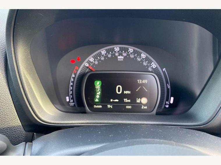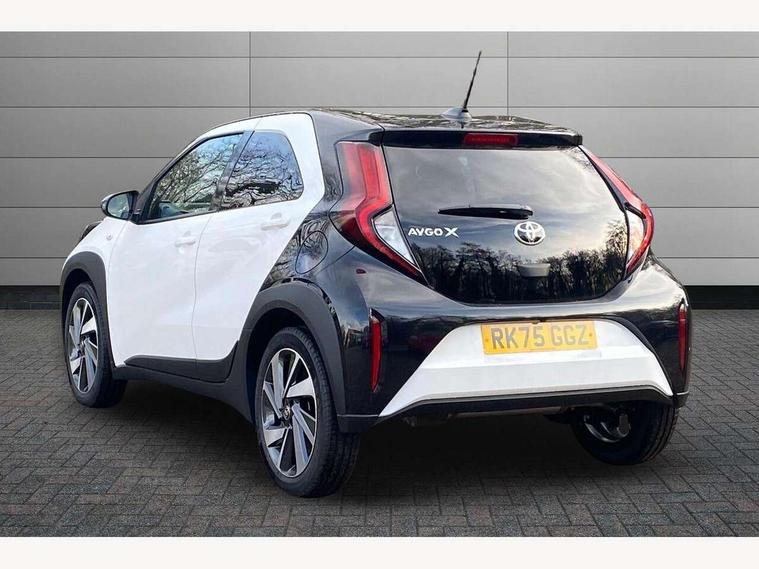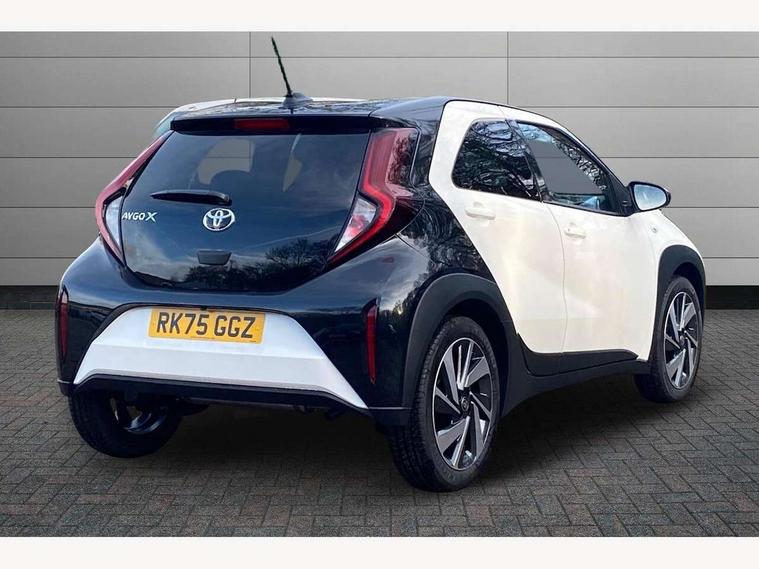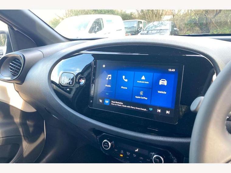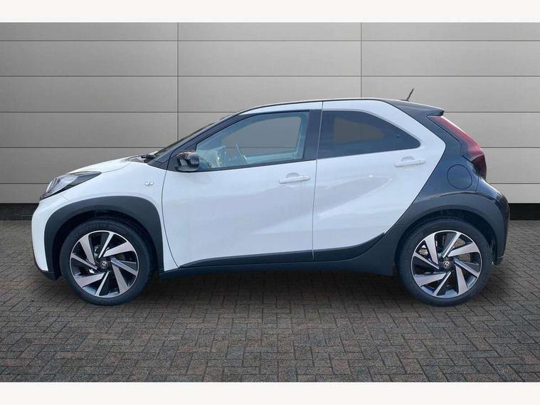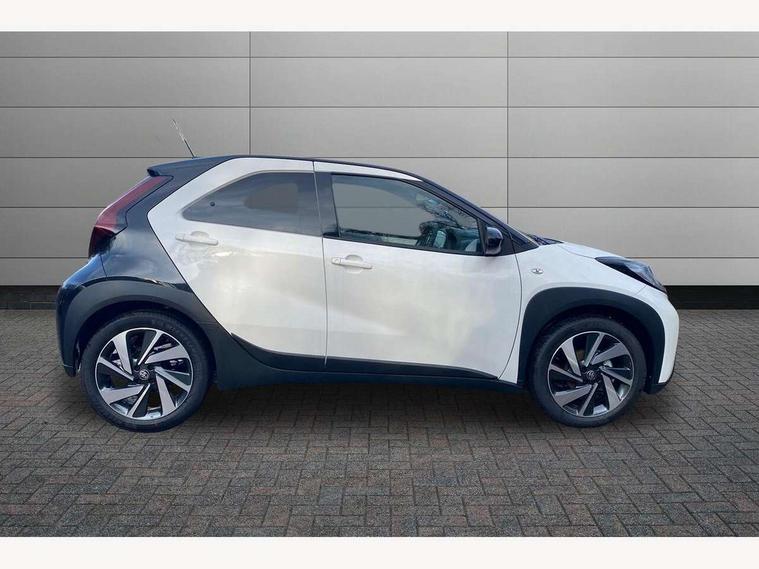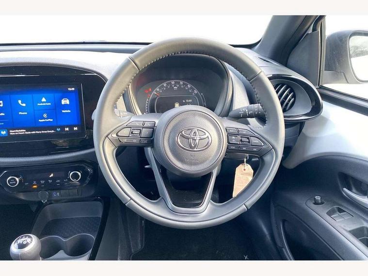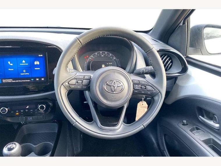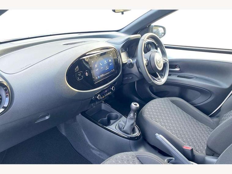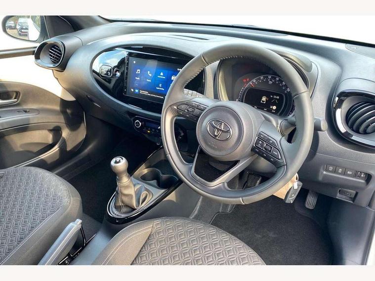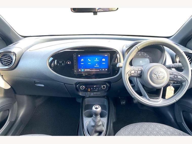4.2" TFT colour screen, Adjustable speed limiter, Analogue speedometer, Bluetooth connectivity, Digital tachograph, Driver attention alert system, eCall emergency call system, Electric power steering, Intersection turn assist, Key reminder warning, Noise reduction kit, Pre collision system with emergency steering assist, Reversing camera with static guide lines, Smart phone integration with Apple car play/Android Auto, Speed limit display, Start and stop, Vehicle Stability Control (VSC), 4 speakers, 9" HD multimedia display touch screen with Toyota smart connect, DAB digital audio broadcast, USB connector, Auto headlights, Auto wipers, Automatic headlights cut-off, Bicycle towing hook, Black contrast roof, Black side protection mouldings, Black wheel arch mouldings, Body colour door handles, Body coloured front bumper, Boot door scuff plate, Eclipse black rear bumper, Electric heated door mirrors, Follow me home headlights, Front fog lights, Front power windows, Gloss black door mirrors, Gloss black upper front grille, Headlight cut-off reminder, LED daytime running lights, LED front light guide, LED High mounted stop lamp, Manual day/night rear view mirror, Manual headlight levelling, Pagoda roof, Power adjustable door mirrors, Power back door, Privacy glass, Projector halogen headlights, Rain sensor, Rear combination lights LED bulb type, Rear side wing doors, Rear windscreen defogger, Rear windscreen wiper, Short antenna, Variable intermittent windscreen wipers, 12v power outlet - front, 2 seat bench in 2nd row, 3 spoke leather steering wheel, 50/50 split folding rear seat, Adhesive roof headlining, Adjustable speed limiter switch on steering wheel, Audio and telephone switches on steering wheel, Auto air conditioning, Black insert on steering wheel, Black roof lining, Boot light, Centre room light, Chrome interior door handles, Chrome surround on air conditioning buttons, Clean air filter, Console box storage in body color, Fabric upholstery, Floor mats, Front and rear cup holders, Front head rest deco art, Front head restraints, Height adjustable driver seat, Intelligent adaptive cruise control switch on steering wheel, ISOFIX child restraint system on rear seats, Lane departure alert switch on steering wheel, Leather gearshift knob, Manual tilt steering wheel, Manually reclining and sliding driver seat, Manually reclining and sliding front passenger seat, Multimedia switches on steering wheel, Pollen filter, Rear door pockets, Rear head restraints, Satin silver insert on gear shift knob, Single compartment glovebox with lights, Single front passenger seat, Soft tonneau cover, Sun visors with mirror on driver and passenger side, Voice recognition switch on steering wheel, Toyota safety sense pack - Aygo X, Anti lock braking system + Electronic brake force distribution, Child safety door lock, Emergency brake light signal (EBS), Hill start assist control (HAC), Passenger airbag on/off switch, Seat belt reminder for front and rear seats, Supplement restraints system (SRS) - 6 airbags, Traction control, Tyre pressure warning system, Immobiliser, Remote power door locks, Black wheel centre caps, Tyre repair kit,