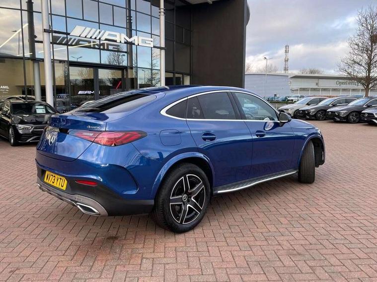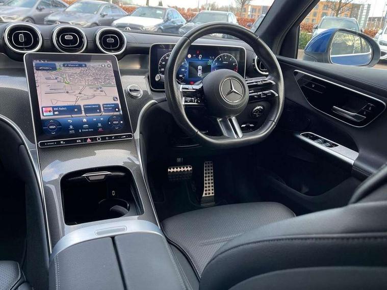 11.9" high resolution multimedia colour display, 12.3" Digital individually configurable instrument display, Acoustic presence indicator, Active lane keeping assist, Attention assist, Bluetooth interface for hands free telephone, Collision prevention assist plus, Cruise control with speedtronic variable speed limiter, Direct steer speed sensitive steering, DYNAMIC SELECT with a choice of driving modes (ECO, Comfort, Sport, Sport+ and Individual), Easy pack automatic powered tailgate, eCall emergency call system, ECO start/stop function, Fingerprint scanner, Fluorescent jacket for driver, Hard disk navigation, Instrument display in miles with English lettering, MBUX navigation premium, MBUX voice control activated by keywords "Hey Mercedes", Mercedes me connect, Multi function trip computer, Outside temperature display, Remote boot release, Remote services, Service indicator (ASSYST), Smartphone integration, Speed limit assist, Status display for rear seat belts in instrument cluster, Wireless charging, 48V Mild hybrid technology, 4MATIC permanent four wheel drive, 62 litre fuel tank, 9G TRONIC plus automatic transmission, Petrol Particulate Filter (PPF), Sport suspension, DAB digital radio tuner, Frontbass loudspeakers, MBUX extended functions, Mercedes benz sound system, Pre installation for Mercedes Benz Link, Adaptive brake lights, Adaptive high beam assist, Aluminium look running boards with rubber studs, AMG bodystyling front apron, rear apron and side skirts, AMG Line exterior, Auto headlights, Body colour bumpers, Body colour door mirrors, Electrically adjustable door mirrors, Front and rear electric windows, Front, side and rear exterior chrome trim, Headlight washers, Heat insulating dark tinted glass, Heated rear window, High level LED brake light, LED high performance headlamps with integrated LED daytime running lights, LED indicator lights, LED rear fog lights, LED tail lamp, Radiator grille with Mercedes Benz pattern and integreated Mercedes star and louvre in dark grey matt with chrome inlay and black frame, Rain sensor windscreen wipers, Range adjustable headlights, Rear side wing doors, Rear wiper, Roof spoiler, Two chrome plated tailpipe trim elements, Variable front intermittent wipers, Welcome and follow-me home light functionality, Wider wheel arch for AMG wheels, 3 seat bench in 2nd row, 40:20:40 split folding rear seats, Ambient lighting, AMG line interior, Artico man-made leather upholstery, Automatic child seat recognition sensor, Black fabric roof lining, Black floor mats with AMG lettering, Dividing net - rear, Double cup holder in centre console, Easy-pack removable load compartment cover, Front centre armrest with stowage compartment, Front head restraints, Galvanised steering wheel gearshift paddles, Heated front seats, Height/reach adjustable steering column, Illuminated glove compartment, Instrument panel and beltlines in ARTICO manmade leather in nappa look, Multifunction sports steering wheel in nappa leather, Rear centre headrest, Rear head restraints, Rear top tether child seat ISOFIX attachment, Single front passenger seat, Sports pedals with stainless steel surfaces and rubber studs, Sports seats, Steering wheel with audio and onboard settings control, Sun visors, THERMATIC 2 zone automatic climate control, Anti theft protection package - GLC, Boot comfort package - GLC, Exterior chrome package - GLC, Interior chrome package - GLC, Interior lighting pack - GLC, Mirror pack - GLC, Parking package with reversing camera - GLC, Seat comfort package - GLC, Stowage space package - GLC, USB Package - GLC, 3 rear 3 point seatbelts, Active braking assist, Anti-lock braking system (ABS), ASR traction control, Automatic front passenger airbag deactivation, Black seat belts, Brake calipers with Mercedes-Benz lettering + perforated brake discs, Braking system with larger brake discs on the front axle, Child proof door locks, Dual-stage airbags - driver and front passenger, driver knee bag and window bags for driver, front passenger and rear passengers, Electronic parking brake, Electronic stability programme (ESP) with curve dynamic assist and cross wind assist, Front and rear seatbelt reminder, Front passenger seat occupancy sensor, Front seatbelt pretensioners, Hill start assist, Tyre pressure monitoring system, Warning triangle and first aid kit, Alarm system/interior protection/immobiliser, Automatic door locking, Guard 360 degree vehicle protection plus, Keyless Go starting function, Remote central locking, Centre console in metal structure finish, Metal structure trim, 19" AMG 5 spoke aerodynamically optimised light alloy wheels in painted black with high sheen flange, Summer tyres, TIREFIT with tyre inflation compressor,