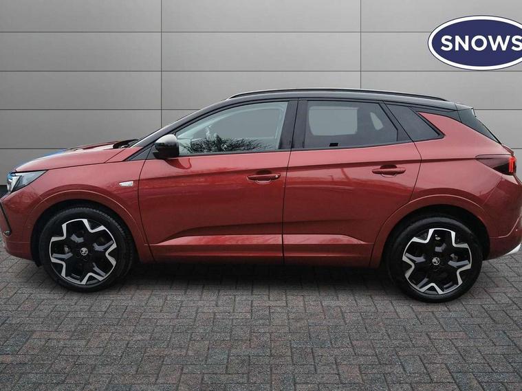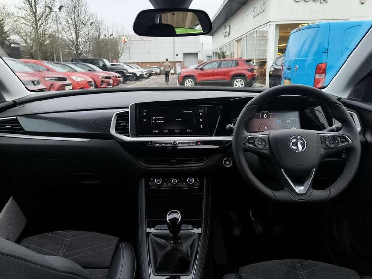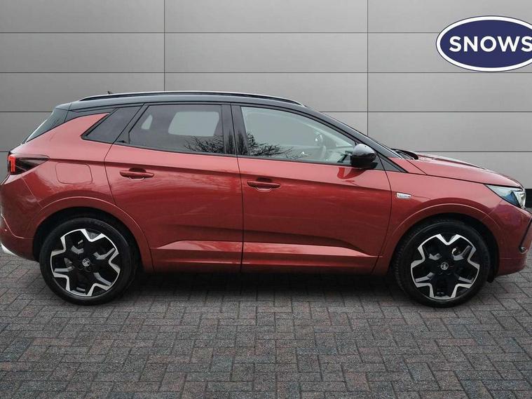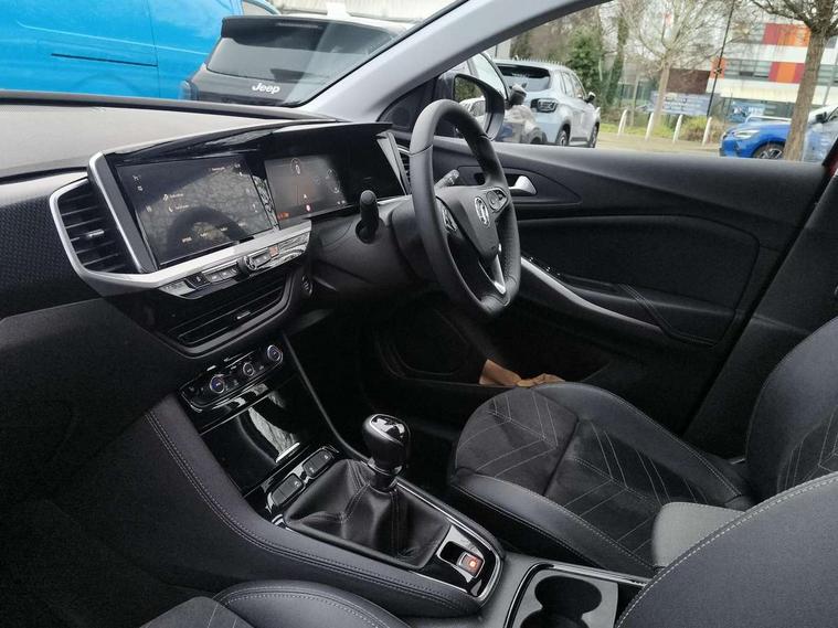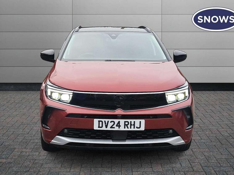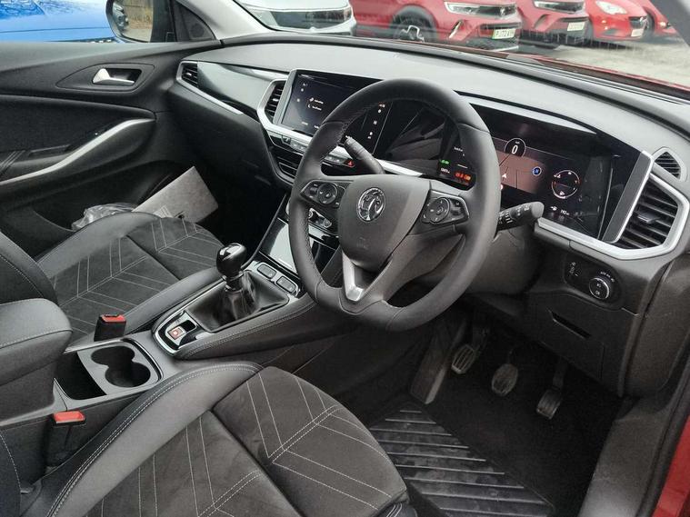 Bluetooth + USB, Central facia display with digital clock, outside air temperature and audio information, Cruise control with speed limiter, Digital fuel gauge with low fuel level warning light, Digital rev counter, Digital speedometer, Digital water temperature gauge with warning light, Driver drowsiness alert system, Driver information - Total mileage, service indicator, oil life, Front and rear parking distance sensors with 360 degree rear view camera and advanced park assist, Gearshift up/down indication light, Lane departure warning system, Lane keep assist, Lights on audible warning, Multi function trip computer - Trip odometer, vehicle range, average speed and fuel economy, instantaneous fuel economy and driving time, Multimedia Pure Panel Navigation System incl 10" colour touchscreen, 12" digital instrument cluster & satellite naviagtion, Power operated tailgate with foot sensor, RDS with traffic programme, Side blind spot alert, Speed sensitive electric power assisted steering, Speed sign recognition, Start/stop system, Vauxhall connect including Emergency call (SOS e-call) and Breakdown call (b-call), Wireless charger for mobile devices, Anti-roll bars, Compound crank rear suspension with coil springs and gas pressure dampers, Independent decoupled MacPherson strut front suspension with gas pressure dampers and coil springs, anti-roll bar, AM/FM and DAB radio, Six speaker - four front + two rear, Smartphone interface with apple carplay and android auto, Steering wheel mounted audio/phone/cruise controls, Automatic lighting control, Automatically dimming anti dazzle rear view mirror, Black door mirrors, Black side window trim, Body colour door handles, Body colour upper front bumper, Carbon black lower front and rear bumpers, protective wheel arches and lower door cladding, Collapsible windscreen wipers, Dark tinted rear windows, Door to door illumination, Electric adjustable/heated/folding door mirrors, Electrically operated front and rear windows with safety auto reverse and one touch up/down facility, Front wiper system spraying directly from wipers, Hazard warning lights, Heated rear screen with timed cut off, Heated windscreen, High beam assist, High gloss black cladding, High gloss black exterior detailing, High gloss black Griffin for Vizor and tailgate with high gloss black Grandland tailgate lettering, High gloss black protective front and rear skid plates and C-shape bumper inserts, High gloss black roof rails, High level centre rear brake light, IntelliLux adaptive LED pixel headlights and LED tail lights, Intermittent rear window wash/wipe, LED daytime running lights, LED front fog lights, Magic wash, Manual headlight beam levelling, Rain sensor windscreen wipers, Rear side wing doors, Rear spoiler, Reversing light, Shark fin aerial, Soundproof insulated windscreen, Two speed windscreen wipers with variable intermittent wipe, Upper and lower bumper design, Vizor front grille, Welcome lighting, 12V electrical accessory socket in front, 3 bench rear seats in 2nd row, 3 spoke heated flat bottom leather effect steering wheel with satin chrome effect bezel, 6 way adjustable Ergonomic active heated sports style front seats AGR approved with seat cushion extension and lumbar adjustment, 60/40 split folding rear seat with centre rear seat armrest and load though facility, Advanced predictive logic control system using a sun sensor, Alcantara cloth upholstery, Ambient centre console downlighter, Automatic air direction and fan speed with manual override, Black premium leather effect side bolsters, Charcoal filter, Chrome effect interior door handles, Covered storage compartment in centre console and in driver armrest, Driver's centre armrest, Driver/passenger sunvisors with illuminated vanity mirrors, Dual zone electronic climate control, Front door pockets with 2.6 litre capacity, Front seat back storage pockets, Fully carpeted luggage area, Height adjustable headrests, Illuminated luggage area, ISOFIX on front passenger and rear outer seats, Luggage compartment cover, Reach + rake adjustable steering column, Rear centre seat head restraint, Rear door pockets with 1.8 litre capacity, Rear passenger compartment heating ducts, Rear reading lights, Two drinks holders in centre console, Anti-lock braking system (ABS), Automatic emergency braking with pedestrian detection, Child proof locks on rear doors, CSC - Cornering stability control, Deactivation switch for front passenger front and side impact airbags, Deflation detection system, Driver airbag, Dual seatbelt pretensioners on front seats, EBD - Electronic brakeforce distribution, Electronic parking brake, Electronic stability program (ESP) including traction control, Front brake ventilated disc 304mm diameter, Front passenger airbag, Front seat side impact airbags, Full-size curtain airbags for driver and front passenger, Hill start assist, Hydraulic Brake Assist (HBA), Inertia reel lap and diagonal seatbelts for all seats, Load limiters on outer rear seatbelt retractors, Pretensioners on outer rear seatbelt retractors, Rear brake ventilated disc 268mm diameter, Smart seatbelt reminder for front and rear seats, Tyre pressure monitoring system, Central locking, Deadlocking system, Electronically protected audio equipment, Engine deadlock immobiliser, Keyless entry and start, Locking wheel nuts, Remote security alarm system, Black door panels with black premium leather effect inserts, Dax decor facia panel with palladium medium finish, 19" diamond cut bi-colour alloy wheel,
