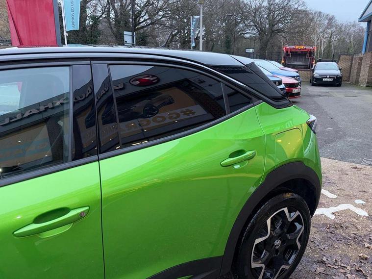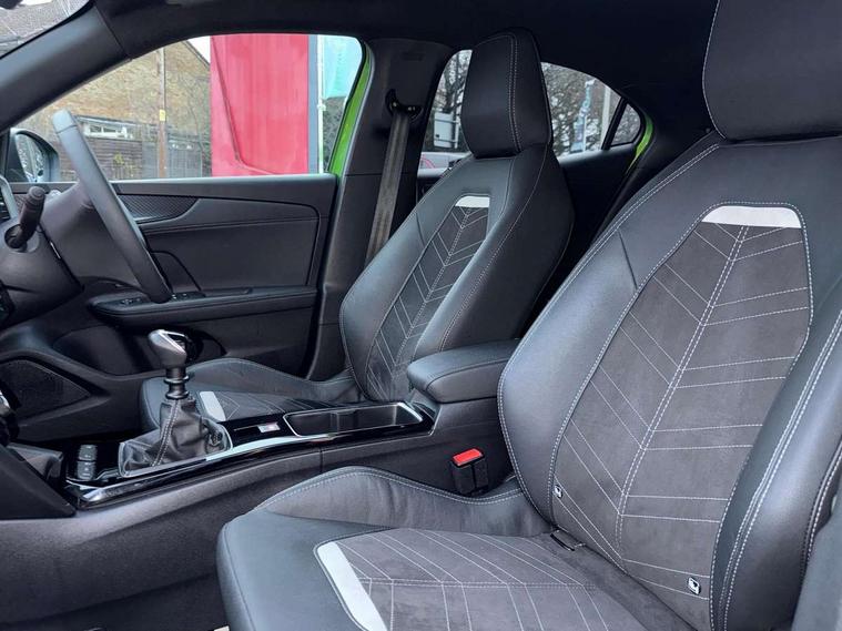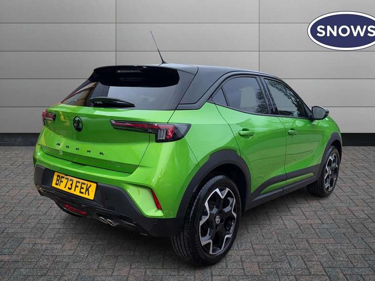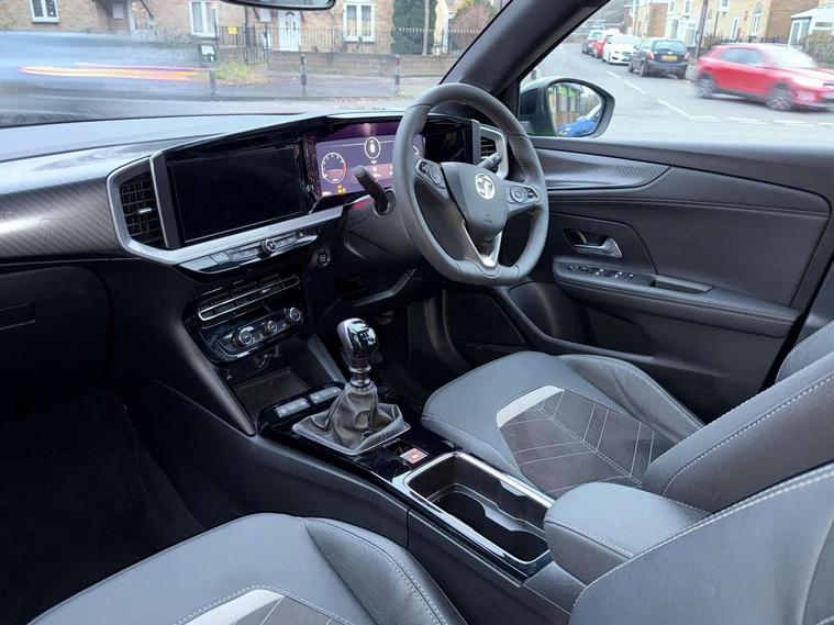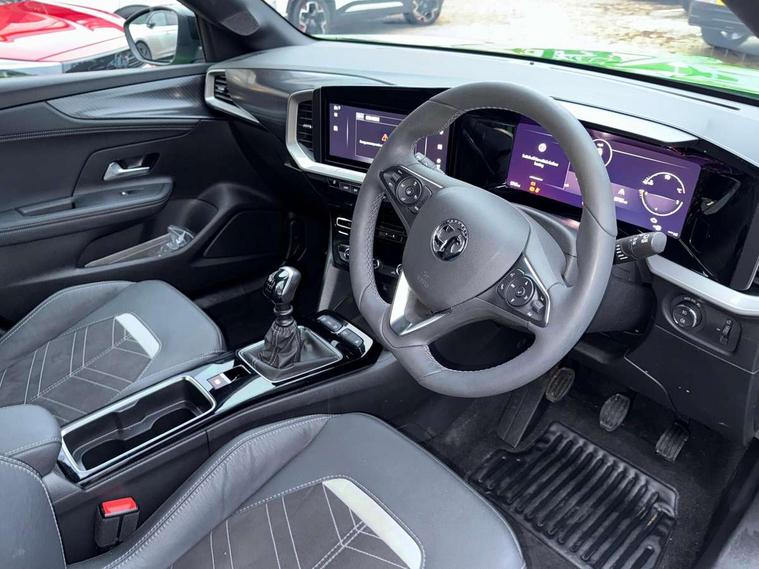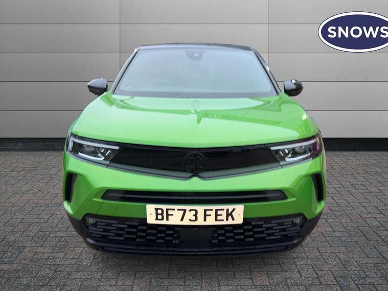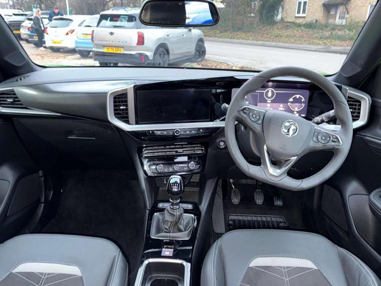 12" digital instrument cluster, Adaptive cruise control with speed limiter, Digital instrumentation with digital speedometer, rev counter, fuel and water temperature gauge, Driver drowsiness alert system, Driver information display with multi function trip computer, audio info, digital clock and outside air temperature with ice warning function, Engine start/stop button, EV information display, Extended traffic sign recognition, Front and rear parking distance sensors, Front camera and radar system, Gearshift up/down indication light, Lane keep assist system (LAS) with Lane departure warning system (LDWS), Lights on audible warning, Panoramic rear view camera, Power assisted speed sensitive steering, RDS with traffic programme, Side blind spot alert and flank guard, Smartphone integration compatible with Apple CarPlay and Android Auto, Sports switch with engine sound enhancement, Start/stop system, Vauxhall connect with e-Call, 6 speed manual transmission, 6 speakers, AM/FM stereo radio with 36 station presets, DAB Digital radio, Flexible Roof Mounted Radio Aerial, Front USB connection, Mobile phone portal - bluetooth connect, vehicle microphone, handsfree calls, SMS read out and reply, phone book access, Multimedia Navi Pro with 10" colour touchscreen, Steering wheel mounted controls, Two rear USB sockets, Adaptive brake lights, Auto high beam assist, Automatic headlamp levelling, Automatic lighting control with tunnel detection, Automatically dimming anti dazzle rear view mirror, Black door mirror housings, Black front and rear bumper inserts, Black Griffin logo and vizor frame, Black upper window moulding, Body colour door handles, Body colour front and rear bumpers, Dark tinted rear side windows + tailgate window, Electric adjustable/heated/folding door mirrors + puddle lights, Electrically operated front and rear windows with safety auto reverse and one touch up/down facility, Hazard warning lights, Heated rear window+rear wash/wipe, Integrated black tailgate spoiler, IntelliLux Matrix LED headlights with adaptive forward lighting with anti glare beam, LED 3rd brake light, LED daytime running lights, LED front fog lamps, LED side repeat indicators, LED tail lights, Rear foglight, Rear side wing doors, Reversing light, Solar heat absorbing windscreen and windows, Two speed rain-sensitive windscreen wipers with variable intermittent wipe, Windscreen and side window demist vents, 12V Accessory socket, 3 seat bench in 2nd row, 3 spoke flat bottomed leather effect steering wheel with satin chrome effect bezel, 4 speed fan with illuminated controls, 4 Way driver seat with lumbar and massage function, 6 way manual adjustable driver fore/aft, up/down with reclining seatback, 6 way manual adjustable front passenger fore/aft, up/down with reclining seatback, 60/40 split folding rear seat, Air recirculation system, Alcantara/leather upholstery, Black headliner, Cabin particulate filter - removes dust, airborne particles and pollen, Centre console with two cup holders at front and one in rear, Chrome effect interior door handles, Door pockets with two litre capacity, Driver and passenger sun visors with vanity mirror, Electronic climate control (ECC), Four adjustable facia vents, Four load restraint lashing eyes, Front centre armrest with storage, Front head restraints, Front map reading lights, Front seat back storage pockets, Fully carpeted load area, Heated front seats, Heated steering wheel, Interior courtesy light, Interior tailgate handle, Luggage compartment cover, Luggage compartment lighting, Movable boot floor, Reach + rake adjustable steering column, Single front passenger seat, Three height adjustable rear seat head restraints, Twin gas assisted tailgate struts, Black Pack with badge - Mokka, 2x Isofix child seat fitting on outer rear seats, 3x3 point rear seat belts, Anti-lock braking system (ABS), Child proof locks on rear doors, Cornering brake control, Deactivation switch for front passenger front and side impact airbags, Drag torque control, Driver and front passenger airbags, front seat side impact airbags, full size curtain airbags, Electronic brake force distribution, Electronic Stability Programme (ESP), Emergency brake assist, Enhanced automatic emergency braking with pedestrian detection, Forward collision alert at all speed, Hill start assist, Inertia reel lap and diagonal seatbelts for all seats, Seatbelt unfastened audible warning and warning light, Straight line stability control, Traction control, Tyre pressure monitoring system, Electronically protected audio equipment, Engine deadlock immobiliser, Freewheeling door locks, Key left in ignition audible warning, Keyless entry and start, Locking wheel nuts, Remote control central locking, Remote control ultrasonic security alarm system, Visible vehicle identification number, Black facia with silver trim insert, Instrument panel bar in polar silver, Light grey trim inserts on front doors, 18" bi colour alloy wheels,