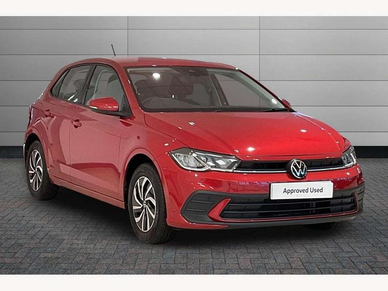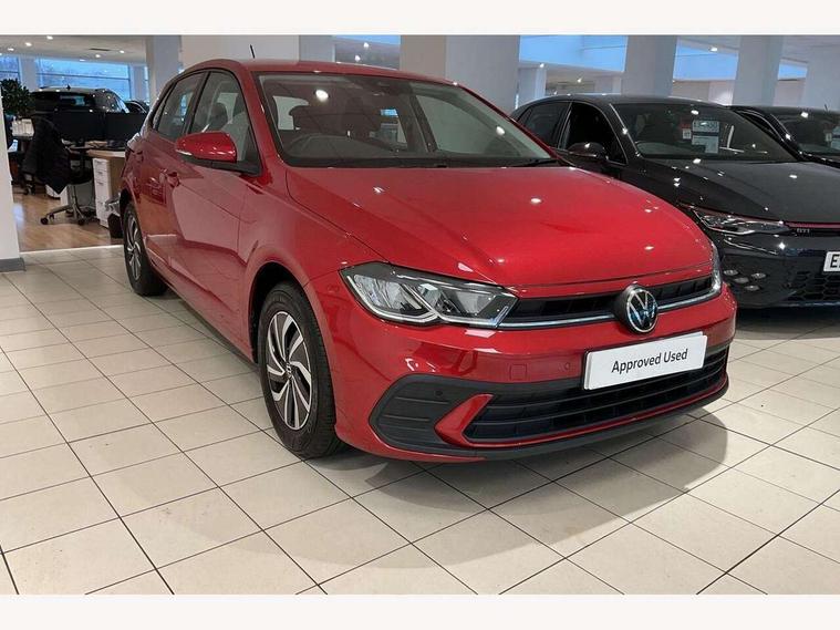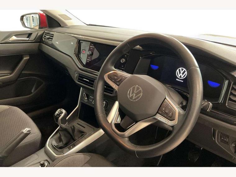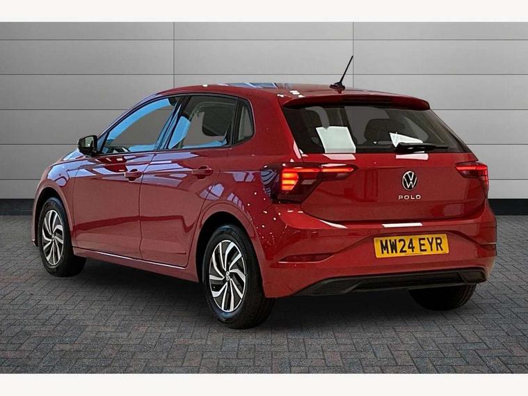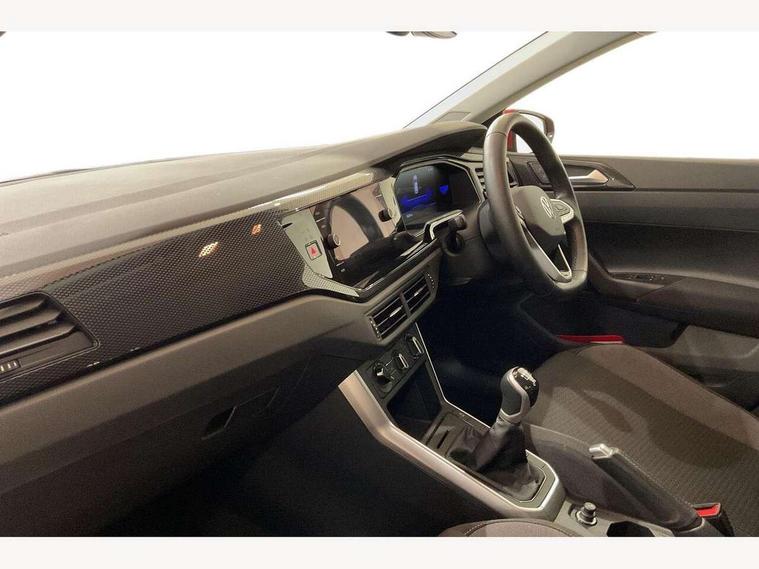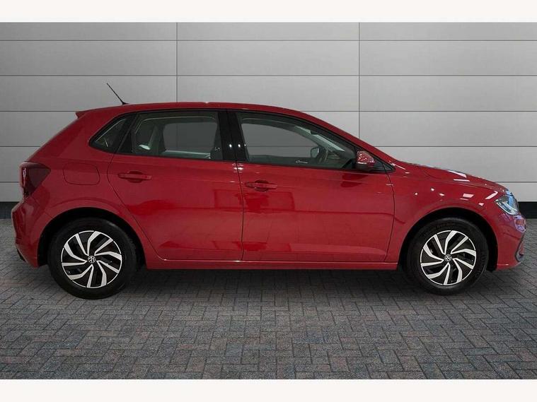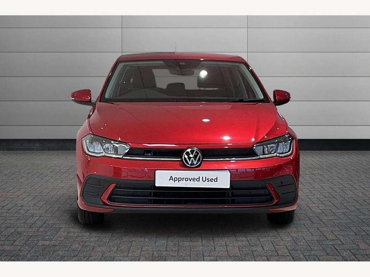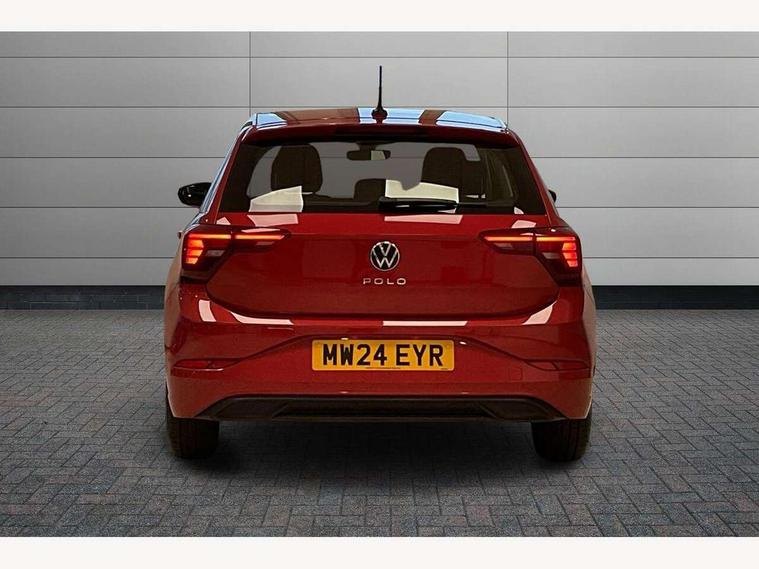 Adaptive cruise control without follow-to-stop and speed limiter, Advanced driver attention and drowsiness monitor, Bluetooth mobile phone interface, Dynamic road sign display, Emergency call service, Power assisted speed sensitive steering, Preparation for navigation system with media and internet package, Preparation for We connect and We connect plus, Speedo and rev counter, electronic odometer, trip, service interval display and exterior temperature gauge, Standard rear axle, Travel Assist - Lane keeping system and traffic jam assist, Travel assist including emergency assist, Trip computer, Warning signal and warning light for front and rear seatbelts not fastened, Washer fluid level indicator, Wireless app connect, Front wheel drive, Rear shock absorpion, Start-stop system with battery regeneration (recuperation - energy recovery during braking), DAB Digital radio, Diversity antenna for FM reception, Front and rear 6 speakers, Automatic dimming interior rear view mirror, Automatic headlight control with LED separate daytime running lights with coming/leaving home function, Body colour bumpers with chrome inserts, Body colour door handles, Body colour door mirrors, Electric front windows, Engine badge deletion, Headlight range adjustment, Heat insulating and laminated safety glass windshield, Heat insulating darkened glass in side and rear windows, Heat insulating glass windscreen, LED Headlights, LED rear combination lamps, Power folding adjustable/heated exterior mirrors and front passenger exterior mirror lowering function, Rain sensor, Rear electric windows, Rear fog light, Rear side wing doors, Rear windscreen washer and wiper with interval delay, Third brake light, 12V power socket in centre console, 2 front and 2 rear reading lights with switch off delay and dimmer, 2 USB-C ports in the front, 2 USB-C charging sockets on the center console in the rear, 3 rear head restraints, 60/40 split folding rear seat and rear seat bench not split, Ceramique roof lining, Chrome plated radiator grille inserts, air vent surrounds and light switch surrounds, Door and side trim panel, Driver and front passenger seat height adjustment, Driver/passenger sunvisors with illuminated vanity mirrors, Front centre armrest, Front seat backrest storage pockets, Front standard seats, Handbrake lever handle in leather, Hartley/Thomas cloth upholstery, Headliner in recycled material, Isofix child seat preparation easy-fit (for two outer rear seats, and front passenger seat) compatible with I-size, Leather trimmed gear knob, Luggage compartment cover, Luggage compartment lighting, Removable luggage compartment floor, Single front passenger seat, Standard climatic zones, Standard pedal cluster, Three spoke leather wrapped multifunction steering wheel, Light and vision pack - Polo, 3 point height adj front seatbelts + pretensioners, 3x3 point rear seatbelts, ABS, Driver and front passenger airbag with front passenger airbag deactivation, Drivers and front passengers safety optimised head restraints, ESC (Electronic stability control) + EDL (Electronic Differntial lock) and ASR (Traction control), Extended and predictive pedestrian/ cyclist protection, Front assist with autonomous emergency braking (for Adaptive Cruise Control ACC up to 130 mph), Front curtain and side airbags with center airbag, Front disc brakes, Hill hold control, Manual child lock in rear doors, Rear drum brakes, Single tone horn, Tyre pressure loss indicator, Alarm with interior protection, Anti-theft alarm system with interior monitoring, backup horn, and towing protection, Anti-theft wheel bolts, Electronic engine immobiliser, Lava stone black gloss/matt decorative inserts in dash and front door panels, Low rolling resistance tyres,