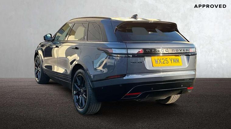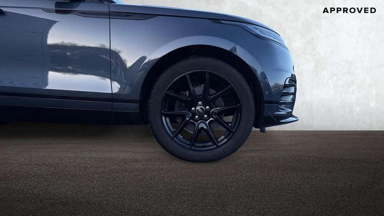 3D surround camera includes forward traffic detection and vehicle guidance, Android Auto, Apple CarPlay, Blind spot assist, Bluetooth connectivity, Brake pad wear indicator warning light, Driver condition monitor, eCall emergency call system, Front and rear parking aid, InControl remote, Land Rover InControl apps, Lane keep assist, Pivi pro with connected navigation, Rear traffic monitor, Service indicator, Speed proportional electronic power assisted steering (EPAS), Traffic sign recognition with adaptive speed limiter, Trip computer, Voice control system, Wade Sensing, Wireless device charging, 8 speed automatic transmission, All terrain progress control, Coil suspension system, Open differential with torque vectoring by braking, Single speed transfer box, DAB radio, Steering wheel mounted controls, 3rd brake light, Acoustic laminated windscreen, Auto dimming interior rear view mirror, Auto high beam assist, Automatic headlamp levelling, Automatic headlights, Body coloured bumpers, Boot protection plate, Electric windows with one touch open/close and anti trap, Flush deployable exterior door handles, Follow me home headlights, Heated rear window with timer, Heated washer jets, Heated windscreen, LED headlights with signature DRL, Metal front tread plates, Metal load space scuff plates, Power fold, auto-dimming, heated door mirrors with memory and approach lights, Rain sensor windscreen wipers, Rear animated directional indicators, Rear fog lights, Rear side wing doors, Rear wash/wipe, Tailgate/boot lid spoiler, Trailer stability assist, Velar badge, 14 way electrically adjustable front seats with driver's memory function, 3 seat bench in 2nd row, Ambient lighting, Bright metal pedals, Carpet mats, Driver/passenger sunvisors with illuminated vanity mirrors, Ebony morzine headlining, Electrically adjustable steering column, Heated steering wheel, Isofix system on outer rear seats, Loadspace cover, Overhead lighting console, Overhead stowage for sunglasses, Passive front headrests, Rear air vents, Rear centre headrest, Single front passenger seat, Twin front cupholders, Twin sliding front centre armrest, Online pack with data plan - Velar, Power socket pack 2 - Velar, 355mm Front and 325mm Rear brakes, 3x3 point rear seatbelts, Anti-lock braking system (ABS), Cornering brake control, Curtain airbags, Customer configurable autolock, Door side intrusion beams, Driver airbag, DSC - Dynamic Stability Control, Electronic brake force distribution, Electronic parking brake, Electronic traction control, Emergency braking, Front and rear seatbelt reminder, Hill descent control, Hill launch assist, Low traction launch, Passenger airbag, Power operated child locks, Rear airbags, Roll stability control, Side airbags, Tyre pressure monitoring system (TPMS), Global lock and unlock switch on driver door, Immobiliser, Intrusion sensor, Keyless entry, Lock only switch on front passenger door, Locking wheel nuts, Perimetric alarm, Remote central locking, All season tyres,