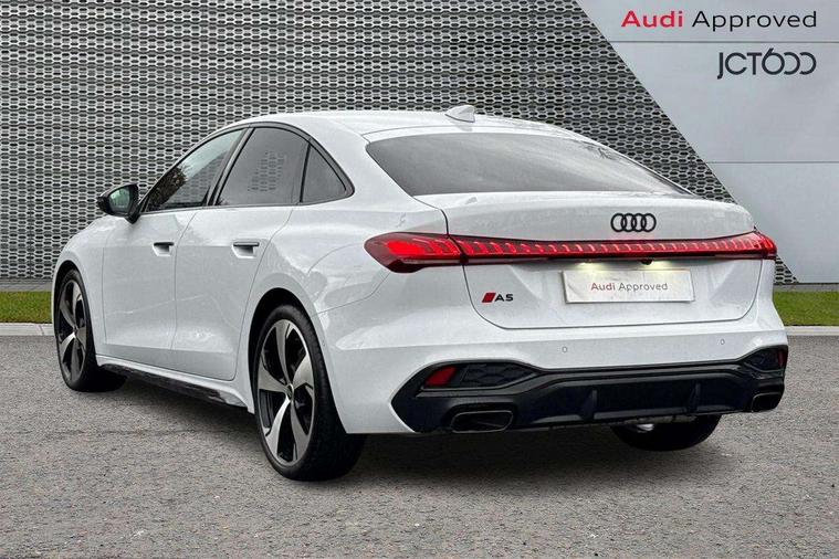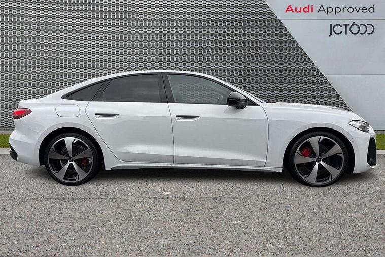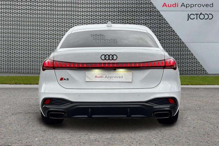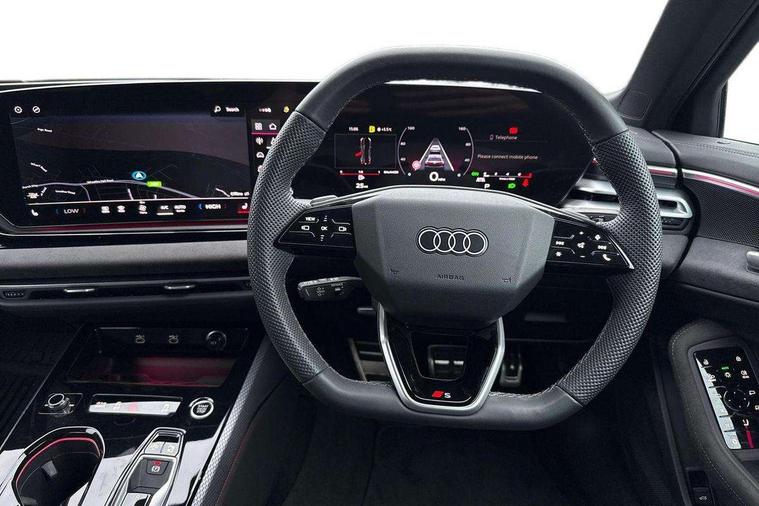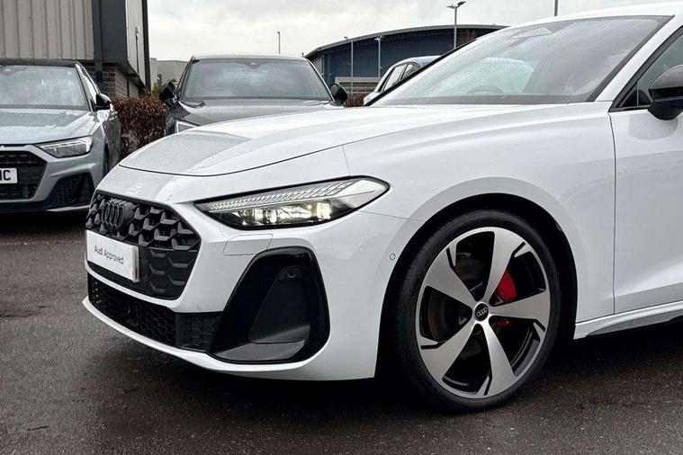 Adaptive cruise control, Advanced driver attention and fatigue montior, Audi application store, Audi assistant, Audi connect emergency call and service, Audi digital key, Audi drive select, Audi smartphone interface, Audi virtual cockpit plus with 11.9" OLED colour display, Automatic start/stop system with coasting functionality, Camera based traffic sign recognition, Intersection assist, Lane change assistant with exit warning system, rear cross traffic alert and rear turn assist, Lane departure warning with emergency assist, MMI 10.9" front passenger touch display, MMI navigation plus with high resolution 14.5" OLED touchscreen colour display, Park assist plus, Parking system plus with 360 display, Progressive steering with servotronic, Swerve assist and turn assist, Top view camera, Traffic sign based speed limiter, Sports suspension lowered by 20mm, 2 USB-C ports in both the front and rear, Audi sound system impressive sound with 10 loudspeakers including centre speaker and subwoofer, 6-channel amplifier with a total output of 180 watts, DAB digital radio reception, Smartphone compartment with wireless charging, Aluminium window trims, Auto dimming rear view mirror, Black door handles, Dark chrome-plated tailpipe trims, Door mirrors - electrically adjustable, heated, folding and auto dimming on both sides, Front and rear electric windows, Front door sill trims with aluminium inlays, illuminated with 'S' logo, Headlight cleaning system, High beam assist, LED daytime running lights, LED rear lights pro incl. dynamic rear indicators and illuminated light strip with animated coming and leaving home function, LED third brake light, Matrix LED headlights with eight light signatures selectable via the MMI or the myAudi app, Privacy glass, Rear and side windows with heat insulating glass, Rear boot, Rear side wing doors, Red S line rhombus badging on rear, S line bumpers, radiator grille and diffuser in phantom black and diffuser insert in matt anthracite, White rhombus logo projection light in exterior mirrors, Windscreen with acoustic glazing, 3 rear headrests, 3 seat rear bench, 3 spoke leather steering wheel with multi-function buttons with touch control, flattened on top and bottom, with S badging and contrast stitching, 3-zone automatic climate control, 40:20:40 split folding rear seat bench with centre armrest and cup holders, Comfort front centre armrest, Electrically adjustable front seats, Front and rear floor mats, Front sport seats with integrated headrest and S embossed logo, Headlining in black cloth, Heated front seats, i-Size child seat mounting on the front passenger side and outer rear seats, i-Size and top tether on the outer rear seats, Luggage compartment lid, electrically opening and closing, Manual steering column height and depth adjustment, Memory function for driver seat, Single front passenger seat, Stainless steel pedals and footrest, Steering wheel grips in perforated leather and shift paddles, Ambient lighting package plus - A5, Black styling package plus - A5, 3x3 point rear seat belts, Acoustic vehicle alerting system, Convenience key with safelock, Driver airbag, Electric child safety locks, First aid kit with warning triangle and vests, Front emergency brake assist, Front passenger airbag, Front passenger airbag deactivation, Hill hold assist, Occupant detection in rear seat area, Proactive passenger protection system for front, sides and rear, Red brake calipers, Seat belt monitoring with rear seat occupant reminder, Side airbags in front and rear with head airbag system and front interaction airbag, Tyre pressure loss indicator, Anti theft alarm, Anti-theft wheel bolts, Keyless Go, Accent surfaces and control buttons in gloss black, Black dashboard with contrast stitching, Softwrap in Dinamica with contrast stitching, Upper and lower interior elements in dinamica microfiber, 20" 5 arm fold design Audi sport alloy wheels in silk matt grey and gloss turned finish, Tyre repair kit,