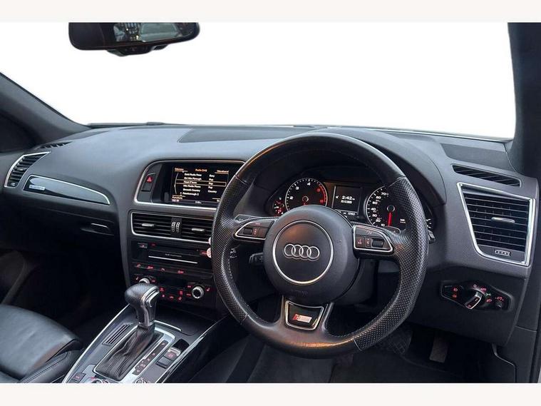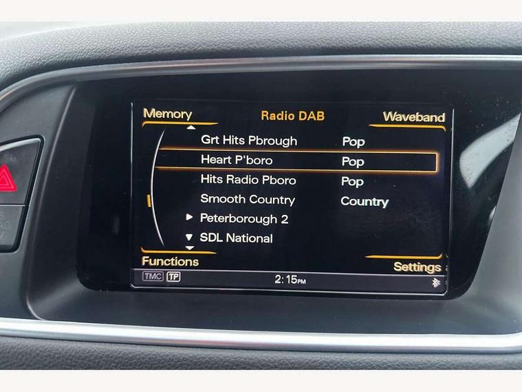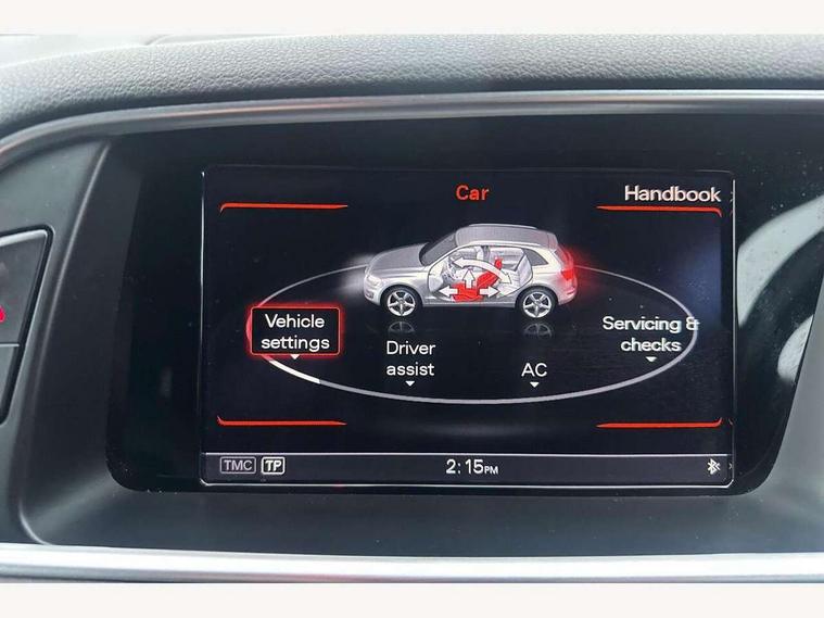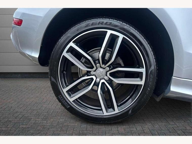 Driver information centre with colour display in instrument panel, HDD sat nav system with DVD player, MMI 3G high and SD card slots, Remote electric boot opening/closing, Service interval indicator, Servotronic speed related PAS, Diesel particulate filter, Dynamic suspension, Audi music interface, DAB Digital radio, Acoustic windscreen, Aluminium sill plates, Auto dimming rear view mirror, Body colour bumpers, Chrome door handles and boot strip, Chrome exhaust tailpipe, Electrically adjustable and heated door mirrors, Front and rear electric windows, Front fog lights, Headlight range control, Headlight washers, LED rear lights, Light and rain sensor for auto activation of lights and windscreen wipers, Platinum grey rear diffuser, Privacy glass, Rear spoiler, Rear wiper, S Line body styling, Towbar preparation, Xenon headlights with LED running lights, 3 rear headrests, 3 zone climate control, Black cloth headlining, Front centre armrest with 12v socket, Front sports seats including electric lumbar support, Front/rear floor mats, Height adjustable driver's seat, Height adjustable front head restraints, Isofix front passenger and rear seat preparation, Reach + rake adjustable steering column, Split fold rear seat, 3 point seatbelts on all seats, ABS, Driver and passenger airbags, Driver and passenger side airbags, Electromechanical parking brake, ESP, First aid kit, Front passenger airbag deactivation, Hill descent control, Seat belt force limiter, Traction control, Tyre pressure monitor, Warning triangle, Locking wheel bolts, Remote central locking, Thatcham category 1 alarm + immobiliser, Tyre repair kit,