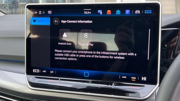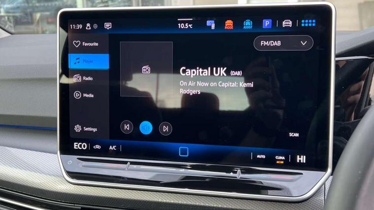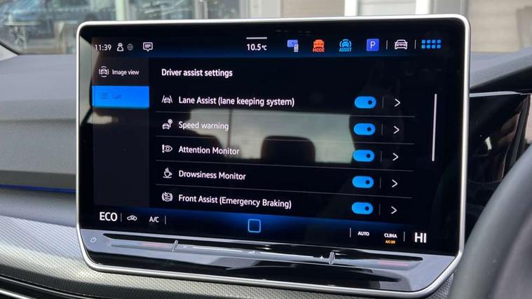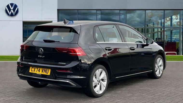 Activated carbon canister, Adaptive cruise control (ACC) with speed limiter and front assist (reacting to vehicles pedestrians and cyclists), Advanced driver attention and drowsiness monitor, Car2X intelligent vehicle networking, Discover media navigation system, Driver alert system, Dynamic road sign display, E-Sim card for online connectivity, eCall emergency call system, Emergency assist, Front and rear parking sensors, Infotainment system with scalable module options Version 2, Lane assist, traffic jam assist and emergency assist, Multi-color Digital cockpit pro, selection of different info profile possible, Multifunction camera for distance control, Oncoming vehicle braking when turning including swerve support, Power assisted speed sensitive steering, Side assist blind spot lane change system, rear traffic alert and exit warning system, Speedo, rev counter, electronic odometer, trip, service interval display, exterior temperature and fuel gauge, Traffic jam assist, Voice assistant and voice enhancer with chat GPT, Warning signal and warning light for front and rear seatbelts not fastened, We connect plus preparation, We connect preparation, Wireless app connect, Charging cable Mode 2 Type 2 (10A), Charging cable mode 3, type 2 32 A, Hybrid propulsion system, Start-stop system with battery regeneration (recuperation - energy recovery during braking), XDS electronic differential lock for improved traction and handling, 12.9" infotainment display, 2 USB C ports in front, 2 USB charging sockets on the centre console in the rear charging capacity upto 45W, 6 Speakers - 4 in front and 2 in rear with central speaker, Comfort telephony + wireless charging, without wireless aerial connection, DAB radio, Diversity antenna for FM reception, Gaming platform via car app, 4 speed front wiper/interval delay, Auto headlights, Automatic headlamp activation with Coming home and Leaving home feature, Body colour bumpers, Body colour door handles, Body colour door mirrors, Body colour rear roof spoiler, Chrome plated radiator grille inserts and light switch surrounds, Chrome trimmed front air intake surrounds, Chrome trims on the side window bottom, Electrically heated and adjustable door mirrors with memory feature, Exterior mirrors convex on the left and aspherical on the right, Front and rear electric windows, Front windscreen washers, Heat insulating windshield made of laminated glass, High level 3rd brake light, Illuminated front grille, Illuminated molding between headlights and illuminated door handle recesses, LED daytime running lights, LED License plate illumination, Rear exhaust tailpipe, Rear fog light on one side and reversing lights on both sides, Rear side wing doors, Rear windscreen washer and wiper with interval delay, Remote electrically foldable door mirrors, puddle lights and reverse activated passenger's door mirror, Welcome light with surround lighting, 12V socket in front centre console, 12V socket in luggage compartment, 3 rear head restraints, 3 seat bench in 2nd row, Air care climatronic 3 Zone automatic climate control with rear air conditioning control panel, Ambient lighting with 30 colour including LED light unit in front footwell with selectable light colour, Carpet mats, front and rear, Door insert, side trim panel and arm support in leatherette, Front centre armrest with storage compartment, Front cupholders x 2, Glovebox, Height and reach adjustable steering wheel, Isofix child seat preparation for 2 rear child seats and front passenger seat, Luggage compartment lighting, Plastic gear knob, Rear cupholder and loadthough, Removable luggage compartment cover, Single front passenger seat, Split folding backrest with centre armrest and unsplit rear seat bench, Standard pedal cluster, Storm black instrument panel, Storm grey roof lining, Sun visors with illuminated vanity mirrors, Driver assistance pack - Golf DSG Estate/Hatchback, Light and vision pack - Golf Estate/Hatchback, 3 point height adj front seatbelts + pretensioners, 3 rear three point seatbelts, ABS, Autonomous emergency braking front assist with pedestrian and cyclist monitoring, Child locks on rear doors, Driver and front passenger airbag with front passenger airbag deactivation, Drivers and front passengers safety optimised head restraints, Electronic parking brake with auto hold, ESC (Electronic Stability Control), Front centre airbag, Front side airbags with curtain airbags, Hill start assist, Rear disc brakes, Two tone horn, Tyre pressure monitoring system, Volkswagen roadside assistance, Alarm with interior protection, Anti theft wheel bolts, Electronic engine immobiliser, Keyless start with SAFE lock, New brushed dark metal decorative inserts for dashboard and front door panels, Tool kit for tyre mobility set, Tyre mobility kit Includes 12V compressor and tyre sealant,