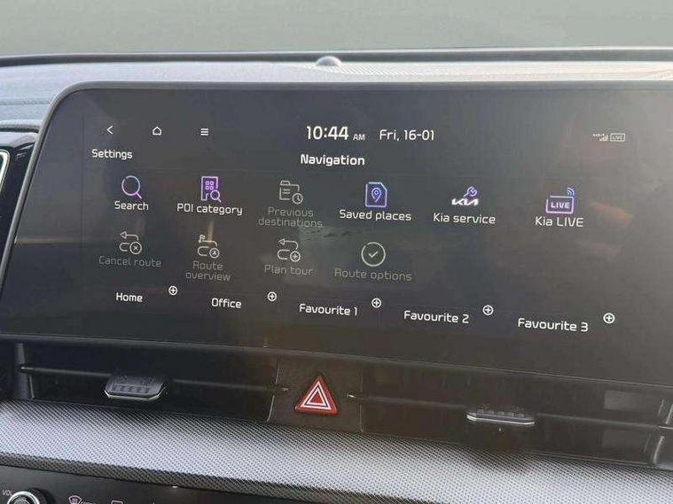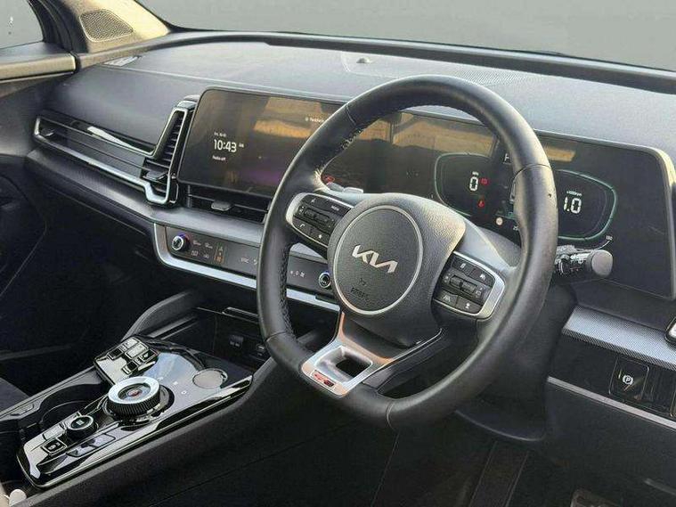 12.3" Display with navigation, 4.2" supervision colour cluster display, Apple car play/Android Auto with voice control, Drive mode selector, E-call, Forward collision avoidance assist (FCA) - city/pedestrian/cyclist/junction covering, Front and rear parking sensors, Highway Driving Assist (HDA), Intelligent speed limit assist, Kia Connect (UVO), Lane Following Assist (LFA), Lane keep assist, Low washer fluid warning, Rear view monitor, Reversing camera system integrated into centre fascia screen, Smart cruise control with stop and go functionality, Speed sensitive power steering, Trip computer, Windscreen washer level indicator, Intelligent Stop and Go, 6 speaker audio system, Bluetooth audio streaming, DAB Radio with MP3, Rear USB port, Steering wheel mounted audio controls, USB C type charging ports on centre console, USB C type charging ports on side of front seats, USB port for connection of a media device, All round electric windows with drivers and front passenger auto up/down function, Automatic headlight control system, Automatic window defogger, Backlite glass heated with timer, Black bumpers, Body colour exterior door handles, Body colour radiator upper garnish and door garnish, Electrically adjustable/heated/folding door mirrors with LED indicators, Front and rear chrome skid plates, Gloss black door mirrors, Gloss black radiator grille, Gloss black side sill and wheel arch body mouldings, Glossy black roof rack, High beam assist, Interior electrochromic mirror, LED daytime running lights, LED front fog lamps, LED headlamps (low and high beam - MFR type), LED High mounted stop light, LED rear combination lamp, Rain sensing wipers with aero blades, Rear fog lamp, Rear privacy glass, Rear side wing doors, Rear spoiler, Rear wiper, Satin finished beltline, Silver coloured inserts to bumpers, Tinted rear glass, Trailer stability assist, 12V power socket in front centre fascia and luggage compartment, 2nd row personal lamps, 3 seat bench in 2nd row, 3 x passenger assist grips, 40/20/40 split folding rear seat, All-round height adjustable headrests, Black headlining, Centre console storage box, Cupholders in rear armrest, D-Shaped sports leather steering wheel and perforated inserts with GT-Line logo, Door courtesy lamps, Drink holder at centre armrest, Driver and front passenger side sunvisors with illuminated vanity mirrors, Driver's seat manual height adjust, Drivers seat power lumbar support, Front and rear door storage, Front seat and rear pockets, Front/rear centre armrests, Gear shift indicator, Glovebox illumination, Heated front seats, Heated steering wheel, Interior door lock/unlock function, ISOFIX Child seat top tethers and anchor fixings outer rear seats, Luggage area light, Luggage area load cover, Luggage net with hooks, Metal paint interior door handles, Overhead console lamp, Paddle shift controls, Rear cabin light, Rear coat hooks, Single front passenger seat, Sports pedals, Suede leather upholstery, Three zone climate control, Tilt/telescopic adjustable steering wheel, Ventilation ducts to rear compartment, Active front headrests, All round 3-point seatbelts, Anti-lock braking system (ABS), Dual front side airbags, Dual horn, Electronic parking brake, Electronic stability control with downhill brake control, Front passenger airbag cut-off switch, Front seatbelt pretensioners + load limiters, Height adjustable front seatbelts, Hill start assist control (HAC), Impact sensing auto door unlocking, Multi collision brake assist, Rear door child safety locks, Rear seat alert system, Traction control, Twin curtain airbags, Twin front airbags, Tyre pressure monitoring system, Advanced anti-theft system including immobiliser and alarm, Door deadlocks, Engine Start/Stop Button with Smart Entry System, Locking wheel nuts, Speed sensitive auto door locking, Visible vehicle identification number, Aluminium pattern finish centre fascia and door garnish, 19" GT-Line alloy wheels, Tyre mobility kit,