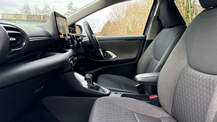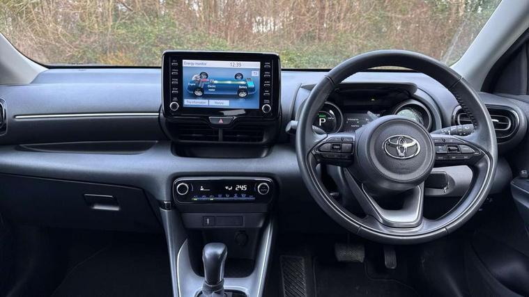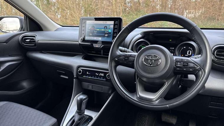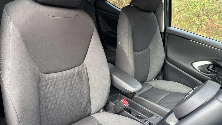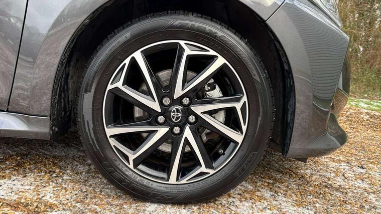 Adaptive cruise control, Adjustable speed limit with speed warning, Bluetooth connectivity, Colour binocular inspired displays with digital speedometer, E-call, Electric power steering, Hybrid energy display, Multi information display switches on steering wheel, Reversing camera, Smartphone integration with Apple CarPlay and Android auto, Tailgate, Voice recognition, Vehicle Stability Control (VSC), 4 speakers, 8" Multimedia display touch screen, USB connection, Acoustic windscreen glass, Auto windscreen wipers, Automatic headlights, Body coloured door mirrors, Electric adjustable heated door mirrors, Follow me home headlights, Front auto power windows with anti jam protection, Full LED rear lights, LED daytime running lights, LED front fog lights, LED front light guide, LED Headlights, LED High mounted stop lamp, LED Indicators, LED rear light guide, Manual headlight levelling, Painted chequered front grille, Rain sensor, Rear auto power windows with anti jam protection, Rear privacy glass, Rear side wing doors, Rear spoiler, Rear wiper, Shark fin antenna, Turning signal integrated indicators in door mirrors, Variable front intermittent wipers, 3 adjustable rear headrests, 3 spoke leather steering wheel, 60/40 split folding rear seat, Active headrests, Adjustable boot height, Auto air conditioning, Coat hooks in rear grab handles, Cup holders (2 front & door), Data Communication Module (DCM) connected services, Fabric upholstery, Front armrest, Glovebox, Grey roof lining, Height adjustable driver's seat, Isofix seat fixing, Leather gearshift, Pollen filter, Shopping bag hooks, Single front passenger seat, Tilt/telescopic steering column, 3 point seatbelts on all rear seats, ABS+EBD+Brake assist, Electronic parking brake, Emergency brake light system (EBS), Front passenger airbag on/off switch, Front seatbelt reminder, Hill start assist control (HAC), Rear child proof door locks, Rear seat belt reminder, Supplemental Restraint System (SRS) 8 airbags: Driver & passenger's airbags, dual side curtain airbags, side impact airbags, front centre airbag, Toyota Safety Sense 2, Precollison + Night time Pedestrian & Cyclist Detection, Lane Trace Assist, Auto High Beam, Intelligent ACC & Road Sign Assist, Tyre pressure warning system, 2x Master key, Alarm/immobiliser, Remote powered central double locking doors, Soft touch instrument panel, Space saver spare wheel,