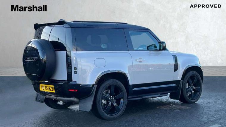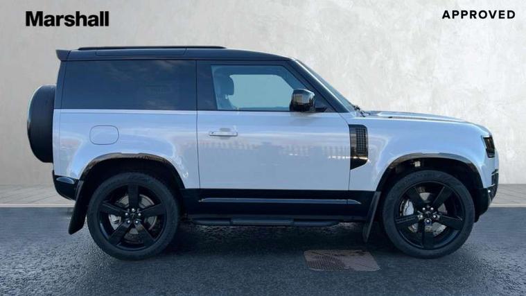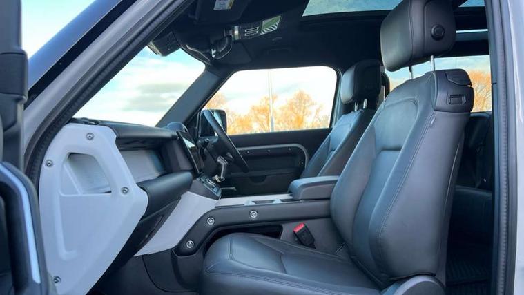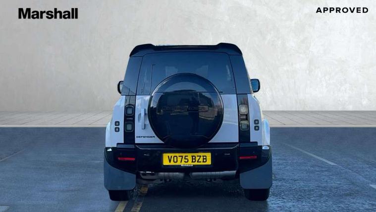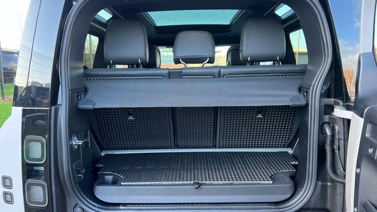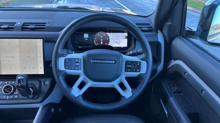 1 x USB-C (power only) & 1 x USB-C (power & data) in Row 1, 2 x USB-C in Row 2, 11.4" touchscreen, 360 degree parking aid, 3D Surround Camera with 360 View, 180 Rear View, Front Traffic Detection, Forward Vehicle Guidance, Tow Hitch Assist and clear sight Ground View, Adaptive cruise control, Android Auto, Apple CarPlay, Blind spot assist, Bluetooth system, Brake pad wear indicator, Clear exit monitor, Connected navigation pro, Driver attention monitoring system, Electric power assisted steering (EPAS), Interactive driver display, Lane keep assist, Push button start, Rear collision monitor, Rear traffic monitor, Traffic sign recognition with adaptive speed limiter, Trip computer, Wireless device charging, 8 speed automatic transmission, All wheel drive system, Twin speed transfer box, DAB Radio (Digital Audio Broadcasting), Meridian 700w surround sound audio system with 15 speakers, Pivi pro connected, Automatic headlight levelling, Automatic headlights, Black exposed rear recovery eyes, Body coloured bonnet, Darkened LED tail lights, Electric heated/power fold door mirrors with approach lights and auto dimming driver side, Electric windows with one touch open/close and anti-trap, Follow me home lighting, Front fog lights, Heated rear window with timer, Heated windscreen, LED 3rd brake light, LED tail lights, Matrix LED headlights with signature DRL, Panoramic rear side glass, Privacy glass, Puddle lights, Rain sensing windscreen wipers, Rear fog lights, Rear wiper, Side hinged tailgate, Sliding panoramic roof, Standard tail door, Trailer stability assist, X-Dynamic badge, 12V power socket in loadspace, 3 seat bench in 2nd row, Alpine lights, Configurable cabin lighting, Durable rubber cabin flooring, Durable rubber loadspace flooring, Ebony carpet mats, Electric reach + rake adjustable steering column, Electrically adjustable steering column, Extended leather upgrade, Flat load space floor tray, Footwell lights, Front head restraints, Heated steering wheel, Loadspace cover, Loadspace Hook, Multifunction steering wheel, Overhead stowage for sunglasses, Rear headrests, Rear ISOFIX, Rear reading lights, Single front passenger seat, Soft close tail door, Standard seat configuration, Storage glovebox, Sunvisors with illuminated vanity mirrors, Twin front cupholders, Non-smoker package, Online pack with data plan - Defender, 5 x 3 point seatbelts, ABS, Brake hold function, Cornering brake control (CBC), Customer configurable autolock, Driver and passenger airbags, DSC - Dynamic Stability Control, EBD - Electronic brakeforce distribution, Electric parking brake (EPB), Emergency brake assist, Emergency braking, ESP + traction control, Front airbags with passenger seat occupant detector, HDC - Hill descent control, Hill launch assist, Low traction launch, Remote for (e-Call, Optimised assistance call, InControl app, Climate, beep and flash and door), RSC - Roll stability control, Seat belt reminder, TPMS (Tyre pressure monitoring system), Alarm, Immobiliser, Intrusion sensor, Keyless entry, Locking wheel nuts, Secure tracker pro,