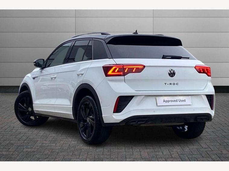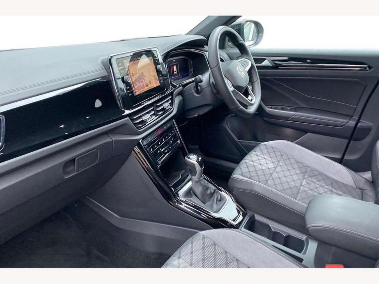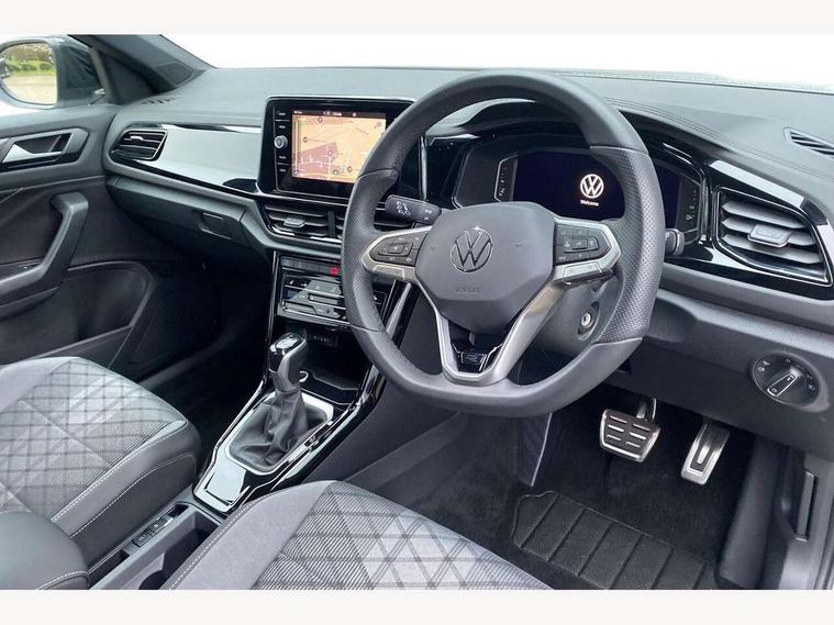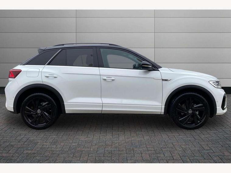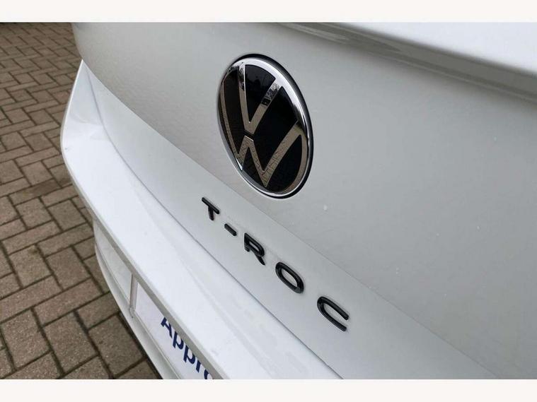 10.25" Digital cockpit pro, Advanced driver attention and drowsiness monitor, Emergency call service, Lane keeping system Lane Assist, Mobile phone interface, Modified key software - reduce switch off time for key status change to Long no motion, Online services, Park assist including front and rear parking sensors, Power assisted speed sensitive steering, Service interval indicator, Tailgate/trunk lid release from outside, Think blue trainer driver tips and journey analysis, Warning sound and light for front seatbelts unfastened, Wireless app connect, Battery regeneration during braking, Rear shock absorption chassis with increased ride height, Start/stop function with battery regeneration, DAB Digital radio, Diversity antenna for FM reception, Front and rear 6 speakers, Music playback - MP3, WMA and AAC files, Premium USB cable in choice of either Apple or Android smartphone compatibility, SD card slot, Simultaneous pairing of 2 compatible mobile devices, Title and cover art display, We Connect and We Connect Plus functionality, Auto dimming interior rear view mirror, Automatic hazard lights activation under emergency braking, Automatic headlight control with LED separate daytime running lights with coming/leaving home function, Dynamic cornering light, Electrically adjustable and heated door mirrors, Extended roof spoiler, Exterior mirrors aspherical on driver side, convex on front passenger side, External USB type C socket and charging sockets, Front windscreen wiper with intermittent wipe and 4 position delay, Heated rear window, Illuminated front grille, IQ LED matrix headlights, LED 3rd brake light, LED rear number plate lights, LED rear tail lights with dynamic turn signal, Light mode for poor weather, rain, fog or snow, Power windows with comfort operation and circuit breaker, R-Line design body coloured bumpers, Rain sensor, Rear exhaust tailpipe, Rear fog light on one side and reversing lights on both sides, Rear side wing doors, Rear wash/wipe with intermittent wipe setting, Remote electrically foldable door mirrors, puddle lights and reverse activated passenger's door mirror, 12V power socket in centre console, 3 rear head restraints, 3 seat bench in 2nd row, 4 load lashing points in luggage compartment, Air care climatronic air conditoning system with active combination filter and 2-zone temperature control, Artvelours cloth upholstery, Black roof lining, Chrome plated radiator grille inserts, air vent surrounds and light switch surrounds, Door and side trim panel with leatherette insert, Drawer under drivers seat, Driver seat height adjust, Driver's seat lumbar support, Front + rear carpet mats, Front centre armrest, Front comfort sports seats, Front cupholders x 2, Front footwell illumination, Front reading light, Front scuff plates with R Line logo, Front seat back storage pockets, Glove compartment door with light, Instrument lighting, white adjustable panel illumination, Interior ambient lighting and surround lighting, Interior light delay, Isofix child seat preparation, Leather gearshift handle, Leather wrapped multifunction steering wheel with paddle shift, Load-through provision with cup holder when folded down ('Unsplit rear seat bench, split folding backrest, with centre armrest), Luggage compartment lighting, Non-folding front passenger seat backrest, Passenger seat height adjuster, Passenger seat lumbar support, Single front passenger seat, Stainless steel pedals, Storage compartment in left and right luggage area, Storage compartment in rear doors, Storage compartments in driver and front passenger doors, Sunvisors with illuminated vanity mirrors, Variable boot floor, height adjustable and removable, Winter pack without heated windscreen washer jets - T-Roc, 3 point height adj front seatbelts + pretensioners, 3 point seatbelts in outer rear with ECE label, ABS, Child locks on rear doors, City emergency braking and pedestrian monitoring, Driver and front passenger airbag with front passenger airbag deactivation, Driver and front passenger safety-optimised head restraints, Drivers seatbelt reminder, Electronic parking brake, Electronic Stability Control (ESC) inc EDL (Electronic Differential Lock) and ASR (Traction Control), Front and rear passengers curtain airbag system including front side airbags, Front disc brakes, Hill start assist, Predictive pedestrian protection, Rear disc brakes, Two tone horn, Tyre pressure loss indicator, Volkswagen roadside assistance, Tool kit, Trims for alloy wheels, Tyre mobility kit including compressor and sealing foam,