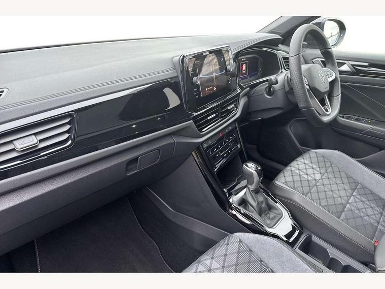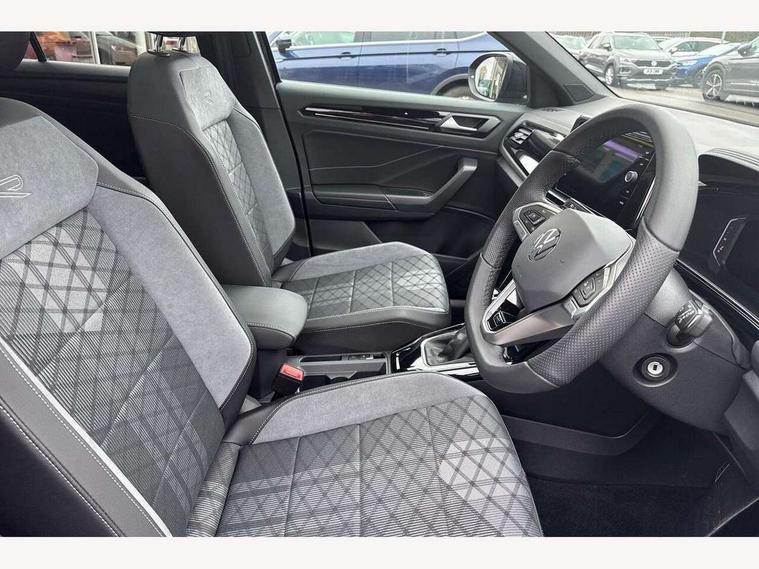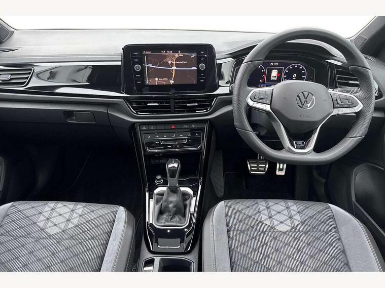 10.25" Digital cockpit pro, Advanced driver attention and drowsiness monitor, Emergency call service, Lane keeping system Lane Assist, Mobile phone interface, Modified key software - reduce switch off time for key status change to Long no motion, Online services, Park assist including front and rear parking sensors, Power assisted speed sensitive steering, Service interval indicator, Tailgate/trunk lid release from outside, Think blue trainer driver tips and journey analysis, Warning sound and light for front seatbelts unfastened, Wireless app connect, Battery regeneration during braking, Rear shock absorption chassis with increased ride height, Start/stop function with battery regeneration, DAB Digital radio, Diversity antenna for FM reception, Front and rear 6 speakers, Music playback - MP3, WMA and AAC files, Premium USB cable in choice of either Apple or Android smartphone compatibility, SD card slot, Simultaneous pairing of 2 compatible mobile devices, Title and cover art display, We Connect and We Connect Plus functionality, Auto dimming interior rear view mirror, Automatic hazard lights activation under emergency braking, Automatic headlight control with LED separate daytime running lights with coming/leaving home function, Dynamic cornering light, Electrically adjustable and heated door mirrors, Extended roof spoiler, Exterior mirrors aspherical on driver side, convex on front passenger side, External USB type C socket and charging sockets, Front windscreen wiper with intermittent wipe and 4 position delay, Heated rear window, Illuminated front grille, IQ LED matrix headlights, LED 3rd brake light, LED rear number plate lights, LED rear tail lights with dynamic turn signal, Light mode for poor weather, rain, fog or snow, Power windows with comfort operation and circuit breaker, R-Line design body coloured bumpers, Rain sensor, Rear exhaust tailpipe, Rear fog light on one side and reversing lights on both sides, Rear side wing doors, Rear wash/wipe with intermittent wipe setting, Remote electrically foldable door mirrors, puddle lights and reverse activated passenger's door mirror, 12V power socket in centre console, 3 rear head restraints, 3 seat bench in 2nd row, 4 load lashing points in luggage compartment, Air care climatronic air conditoning system with active combination filter and 2-zone temperature control, Artvelours cloth upholstery, Black roof lining, Chrome plated radiator grille inserts, air vent surrounds and light switch surrounds, Door and side trim panel with leatherette insert, Drawer under drivers seat, Driver seat height adjust, Driver's seat lumbar support, Front + rear carpet mats, Front centre armrest, Front comfort sports seats, Front cupholders x 2, Front footwell illumination, Front reading light, Front scuff plates with R Line logo, Front seat back storage pockets, Glove compartment door with light, Instrument lighting, white adjustable panel illumination, Interior ambient lighting and surround lighting, Interior light delay, Isofix child seat preparation, Leather gearshift handle, Leather wrapped multifunction steering wheel with paddle shift, Load-through provision with cup holder when folded down ('Unsplit rear seat bench, split folding backrest, with centre armrest), Luggage compartment lighting, Non-folding front passenger seat backrest, Passenger seat height adjuster, Passenger seat lumbar support, Single front passenger seat, Stainless steel pedals, Storage compartment in left and right luggage area, Storage compartment in rear doors, Storage compartments in driver and front passenger doors, Sunvisors with illuminated vanity mirrors, Variable boot floor, height adjustable and removable, Winter pack without heated windscreen washer jets - T-Roc, 3 point height adj front seatbelts + pretensioners, 3 point seatbelts in outer rear with ECE label, ABS, Child locks on rear doors, City emergency braking and pedestrian monitoring, Driver and front passenger airbag with front passenger airbag deactivation, Driver and front passenger safety-optimised head restraints, Drivers seatbelt reminder, Electronic parking brake, Electronic Stability Control (ESC) inc EDL (Electronic Differential Lock) and ASR (Traction Control), Front and rear passengers curtain airbag system including front side airbags, Front disc brakes, Hill start assist, Predictive pedestrian protection, Rear disc brakes, Two tone horn, Tyre pressure loss indicator, Volkswagen roadside assistance, Tool kit, Trims for alloy wheels, Tyre mobility kit including compressor and sealing foam,